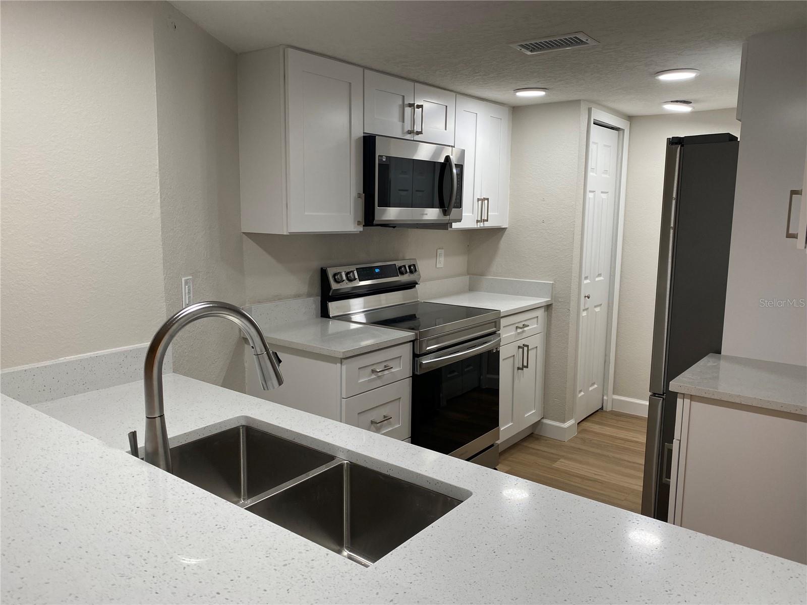Welcome to this meticulously renovated home, where no detail was left unfinished As you enter the condo from the screened front porch you are greeted by beautiful luxury vinyl plank flooring that flows throughout the home providing a perfect compliment to the fresh paint and new trim molding, The kitchen boast a modern kitchen with sleek quartz countertops, new stainless steel appliances, and stylish shaker cabinetry, this home is a chef's dream. Both bathrooms have been transformed with elegant tile work, new vanities, and contemporary fixtures. Just of the screened patio is additional storage closet that also houses the washer and dryer. As if that wasn't enough the cherry on top is the newly installed HVAC system installed in March of 2024. North Oaks offers a serene escape with mature oak tree lined roads and lush landscaping, a sparkling pool, racquetball and tennis courts. Plus, enjoy the convenience of nearby USF, shopping, dining, and major attractions like Bush Gardens and the Museum of Science and Industry. Low-maintenance living includes water, sewer, trash, landscaping, and master insurance in the HOA fee. Don't miss this opportunity to own a stunning, move-in ready condo. Schedule your showing today!
