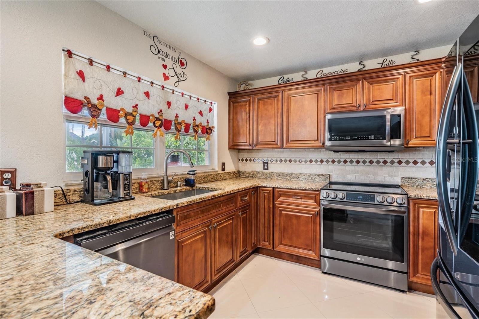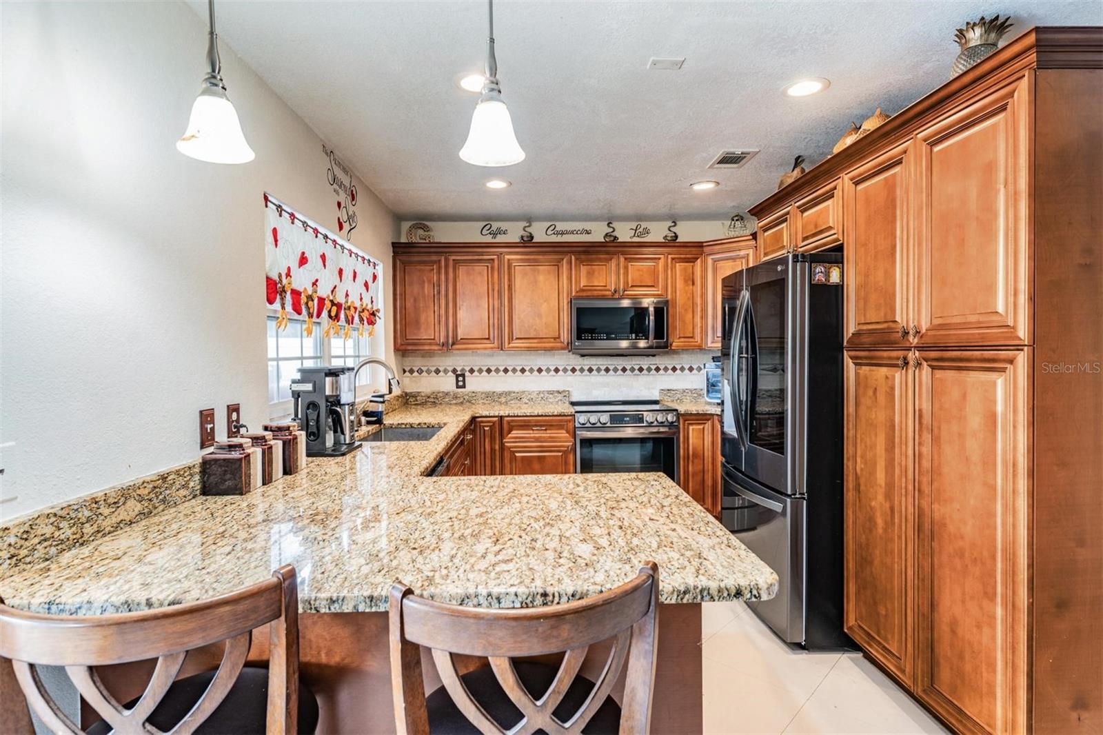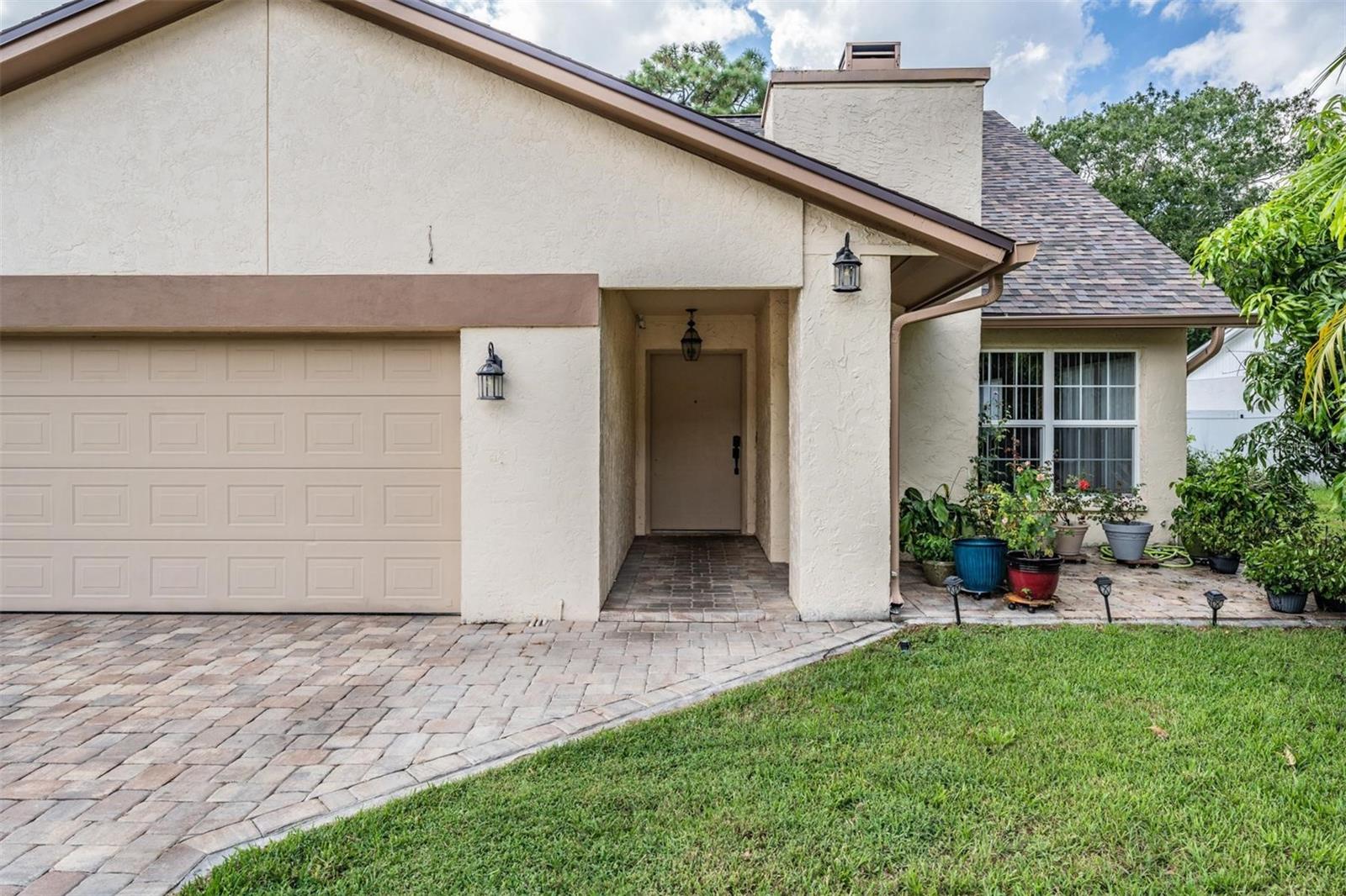 Welcome to this beautifully maintained 3 bed, 2.5 bath saltwater pool home in the sought-after Cherry Creek community. Featuring a newly installed paver driveway (2022), vinyl fencing, and a roof replaced in 2021. Both the interior and exterior, including the stucco, were freshly painted in 2022. The home boasts a remodeled kitchen (2016) and durable vinyl plank flooring throughout (2016). Key upgrades include a new HVAC system and saltwater cell, ensuring energy efficiency and comfort. Enjoy your private backyard oasis with 7 fully mature, fruit-producing citrus trees. Security cameras convey with the home for added peace of mind. Don't miss this move-in-ready gem! Elite Roof with Lighting. Great for nighttime entertaining with open pool and patio.
