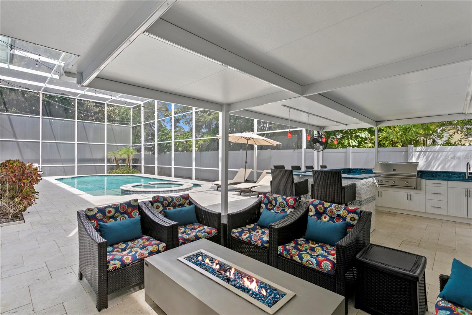 Just updated! Welcome to 45 Adalia Avenue, where timelessness charm meets traditional elegance. This breathtaking estate, situated on a double lot (100X125) on one of the most sought-after streets on Davis Islands, features four bedrooms with primary suite on first level and two and half bathrooms, plus a separate pool house with two additional bedrooms and bathroom upstairs. As you step through the front door, you’ll be greeted by soaring 20-foot ceilings, a stunning chandelier, and abundant natural light beaming through the large windows. The checkered marble flooring seamlessly flows through to the grand ballroom and dining room, creating a striking first impression. The ballroom overlooks the heated Pentair-controlled pool and spa, which is enclosed within a two-story screen. Outside, you’ll find a summer kitchen complete with a LYNX Barbeque grill, beverage fridge, sink , encased with Werever Cabinets, made from UV-stabilized high-density polyethylene with a lifetime warranty. This estate has been thoughtfully updated, with extensive renovations completed in 2025. The chef’s kitchen is equipped with top-of-the-line appliances, including BRAND new Sub-Zero refrigerator and six-burner gas Wolf Range with Wolf hood plus a Wolf in-cabinet microwave. The kitchen also features a large walk-in pantry that leads to the laundry room and two-car garage. The primary suite is located on the first floor, offering a luxurious glass-enclosed double rainfall SteamSpa with digital controls and dual benches, an oversized jetted bathtub, and a massive walk-in closet. The suite opens directly with sliding glass doors to the pool. Upstairs, you’ll find three additional and a shared bathroom. The home includes smart features including Philips Hue color lighting, Lutron lighting controls with scenes schedules and event triggered actions. Lights can be controlled using wall switches, voice control, and smart phones. Home also includes new Ring Security System with 6 Cameras, and remote control for the Pentair pool system. The property is equipped with two newer 5-ton HVAC units and a new mini split system for the pool house. Interior finishes include BRAND NEW luxury vinyl, brand new interior and exterior paint, marble flooring, custom, and travertine flooring, intricate dental crown molding throughout, floor-to- ceiling windows, and a sweeping staircase with wrought iron railings. The location is the best and truly in the heart of Davis Islands. This premier home offers easy access to tennis courts, many parks, shops, restaurants, Duckweed Urban Grocery, and the Davis Islands Yacht Club. Just minutes from Downtown Tampa, Tampa General Hospital, The Tampa Riverwalk, and Bayshore Boulevard Sidewalk trail, and a 20-minute drive to Tampa International Airport, and 30 minutes to some of the best beaches in Tampa. Located in highly esteemed schools Plant High School, Wilson Middle School and Gorrie Elementary. Call today to schedule your private showing.
