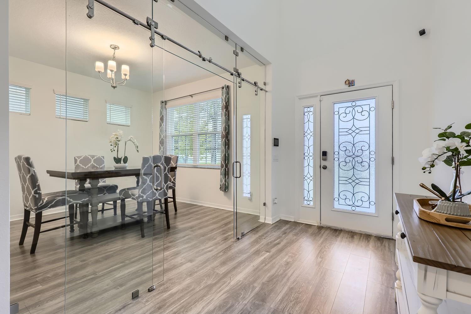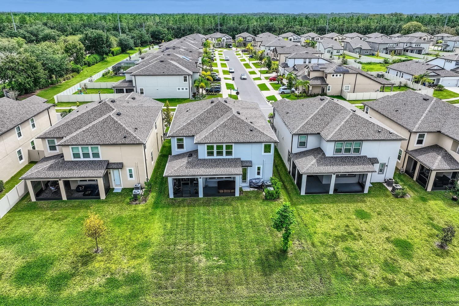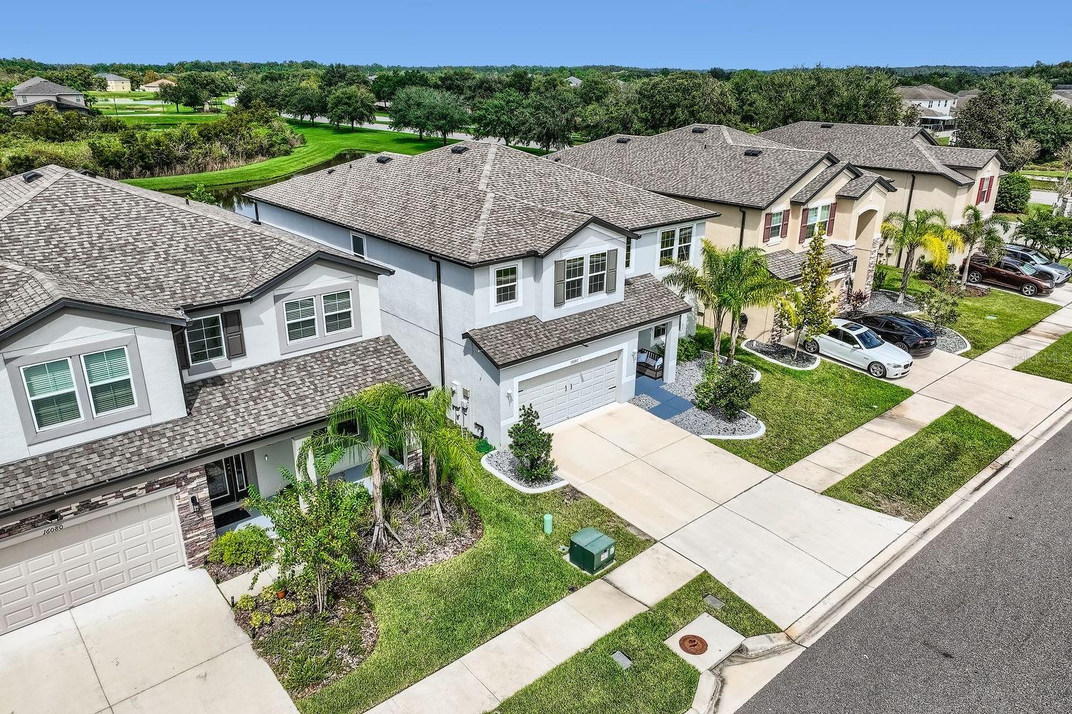 WELCOME HOME.... You can breathe a sigh of relief because you have finally found the one! Better than new construction, stunning 5 BEDS / 3 FULL BATHS with a water view in Morris Bridge Manors of New Tampa. This gorgeous home features two levels and over 3,500 square feet of living space with 2 family rooms and a 3-car garage (2 side by side and one tandem). Upon entering this home you are greeted with a grand 2-story foyer and an inviting wide open floorplan. Main level has a formal dining room, gorgeous kitchen with huge island offering LOTS of seating, granite countertops, tile backsplash, 42inch white shaker cabinets, walk-in pantry, butler pantry, a TON of storage and sliding doors leading out to the large wrap-around Lanai with SPA/Jacuzzi The living/family room on the main level is massive with beautiful water views. A full bath and large bedroom finish off the main level. On the upper level you'll find a SECOND family room with FULL wet bar and the huge primary bedroom with gorgeous en-suite featuring a large soaking tub, stand up shower, extra long double vanity, large walk-in closet and beautiful water views. There are 3 more bedrooms and another full bath to round off the upper level. Built by highly sought after M/I Homes, this home boasts just one owner with an abundance of after-build upgrades. All major mechanicals and appliances are just 2 years old, this home features energy efficient upgrades including tinted windows throughout and a fully insulated attic w/ premium spray-foam for optimal climate throughout the home and extra comfort. This home also features a whole home water softening system as well as a reverse-osmosis kitchen water filtration system and a pest control system. Every inch of this home has been meticulously well thought out for the utmost functionality and flow. The home is surrounded by lush greenery and nature, no neighbors to the rear! Situated next to multiple parks, preserves and golf course offering hiking, fishing, canoeing, splash pad and sports, Grocery stores, Restaurants and more! Centrally located within minutes to l-75, l-275, l-4, SR-56, Bruce B Downs (CR-581) for super easy access to Tampa Int'l Airport, Downtown, Tampa Riverwalk and Gulf Beaches. New Tampa is a top-rated neighborhood in Tampa Florida offering suburban style living with all the conveniences of the city and so much to do! Just minutes from the beautiful Wiregrass Mall, Tampa Premium Outlets, The Krate Micro Shops at the Grove of Wesley Chapel and so much more. LOW HOA, NO CDD. This is the perfect home in the perfect location. Don't miss this rare opportunity to have it all, schedule your private tour today!