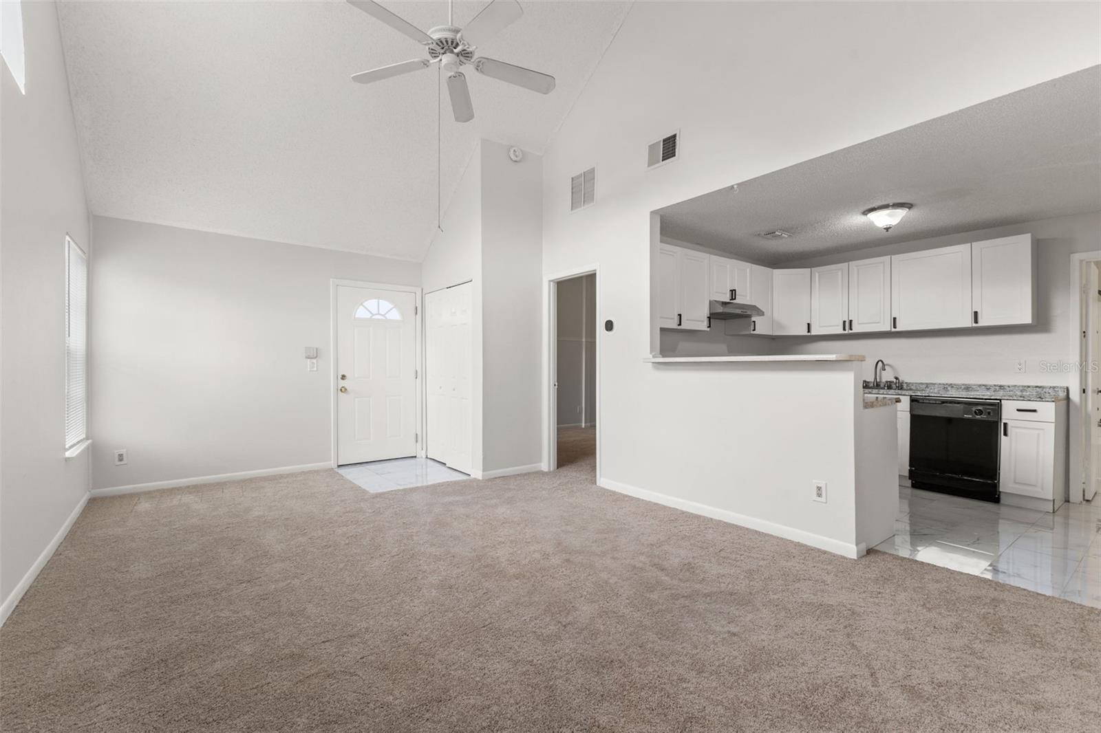 Welcome to this second-story condo located in Carrollwood Gables. This condo has vaulted ceilings throughout that are 12 feet+. The high ceilings make the space feel open and airy. Upon entering the condo, you will notice the brand new carpeting (minus the wet spaces), and the entire interior was just painted a few weeks ago. The kitchen and baths were both remodeled recently. The kitchen includes new floor tile, new cabinets/hardware, countertops, a range/vent hood, and a sink. The laundry closet is inside the kitchen and includes a washer/dryer that comes with the unit. The bathrooms have new tile flooring/vanities/faucets/fixtures, and both tubs/tile have just been re-glazed. The A/C system was just replaced this year and there is a smart thermostat (Ecobee) included as well. The bedrooms are completely separate from each other and the guest bedroom has a jack-and-jill style bathroom so guests can easily enter. There is a community pool, clubhouse, and gym located right in the center of the community. The monthly HOA dues cover basic cable, water, sewer, trash, exterior paint, roof replacement, lawn maintenance, and building insurance. This condo is conveniently located near major roads, businesses, USF, restaurants, parks, etc.