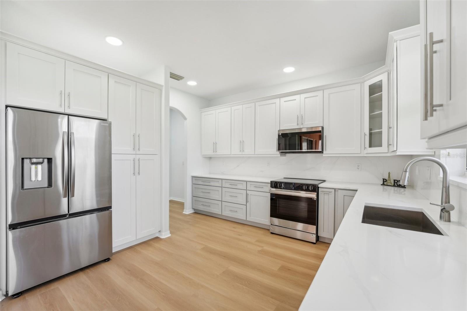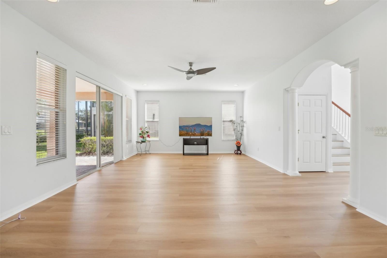 Over $140,000 in recent UPGRADES! Upon entering, you are welcomed into the formal living area, featuring breathtaking two-story ceilings, elegant decorative columns, and brand-new flooring throughout. The gourmet kitchen, perfect for both cooking and entertaining, boasts stone countertops, 42-inch soft-close cabinets, and brand-new stainless steel appliances. Additionally, you'll find a walk-in pantry, a formal dining room, and a casual dining area with double sliders that open to the covered lanai. The owner's suite, accessed through grand double doors, is graced with stunning tray ceilings, evoking a sense of luxury. The newly renovated en-suite bathroom rivals any spa, offering stone countertops, dual vanity sinks, a garden tub, and a separate walk-in shower. The three additional upstairs bedrooms and two bathrooms seamlessly blend with the home's refined aesthetic. Located on canal leading to the ski lake and ready for a pool and dock to be built. Cory Lake Isles is a tropical oasis, offering palm-lined streets and lush landscaping throughout. This resort-style community boasts a 165-acre ski lake with a boat dock and ramp, a large community pool with a slide, a beachside clubhouse, playgrounds, a fitness center, tennis and basketball courts, and even an ice hockey rink. Conveniently located with easy access to I-75, USF, Moffitt Center, VA hospital, Wiregrass Mall, Tampa Premium Outlets, and scenic nature trails. The CDD fee is included in the property taxes.