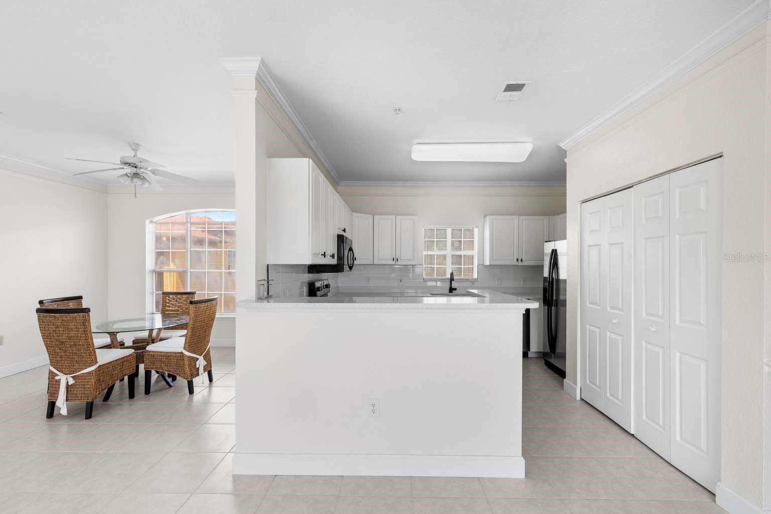 Updated carriage home with a PRIVATE GARAGE. No Hurricane damage or flooding! No walls shared with any neighbors. All new paint and flooring throughout. Plumbing and electrical has been updated. The condo features tall ceilings, plenty of natural lighting, ceiling fans, laundry closet, a chef-style kitchen with white Quartz countertops and stainless steel appliances. The French doors in the living room lead to the screened balcony where you can enjoy sunset views or a morning cup of coffee. Beachwalk has recently installed all new roofs, all new exterior paint, all roads have been repaved, parking spaces repainted, new security gates, security cameras, new paddle board/kayak, new game room in the club house and much more. The HOA fee pays for flood insurance, building insurance, roof, all exterior maintenance, valet trash removal, access to the resort style community pool, 24/7 access to the fitness center, game room, billiards room, office/printer room, movie room, car wash station, 1 mile long boardwalk through the natural preserve and FULLY FUNDED RESERVES!