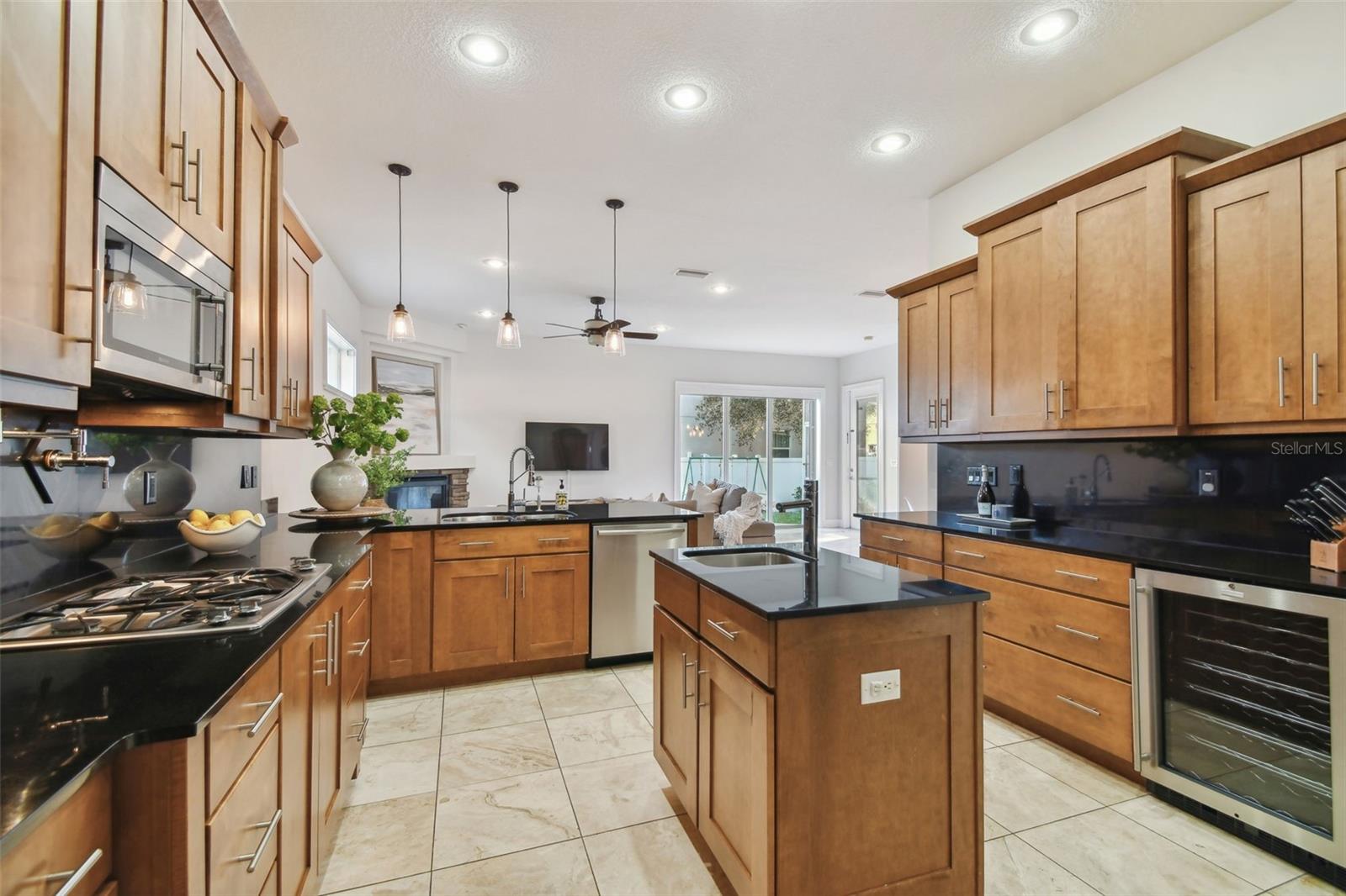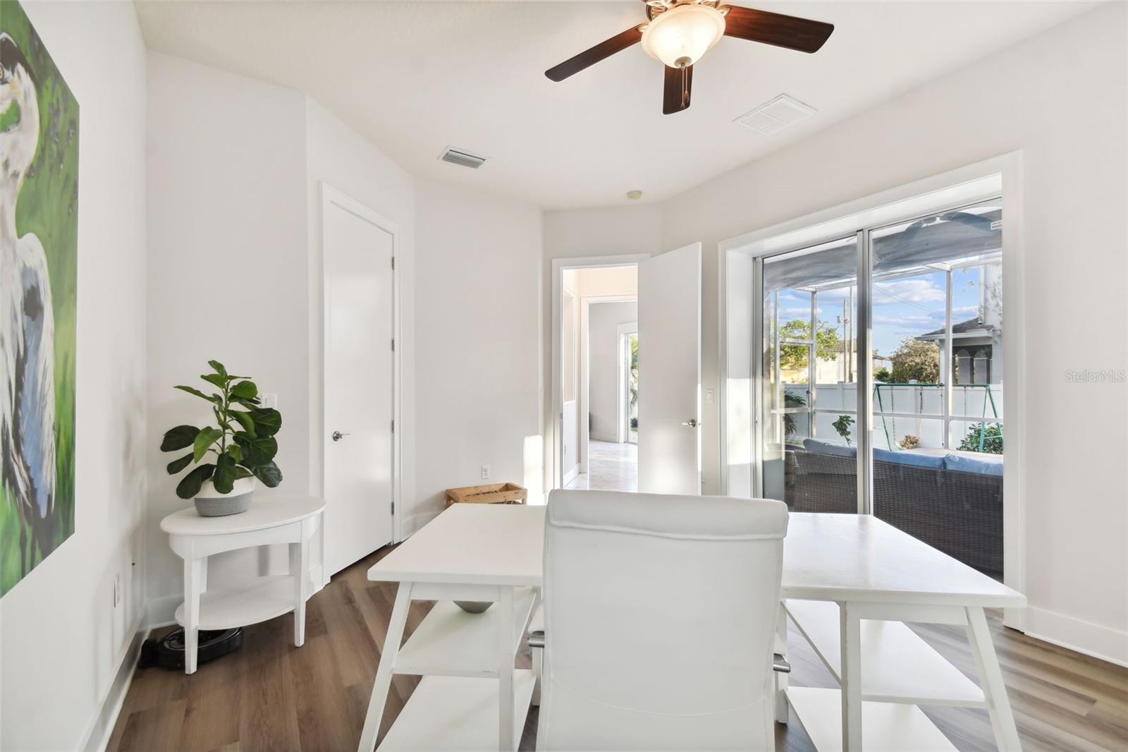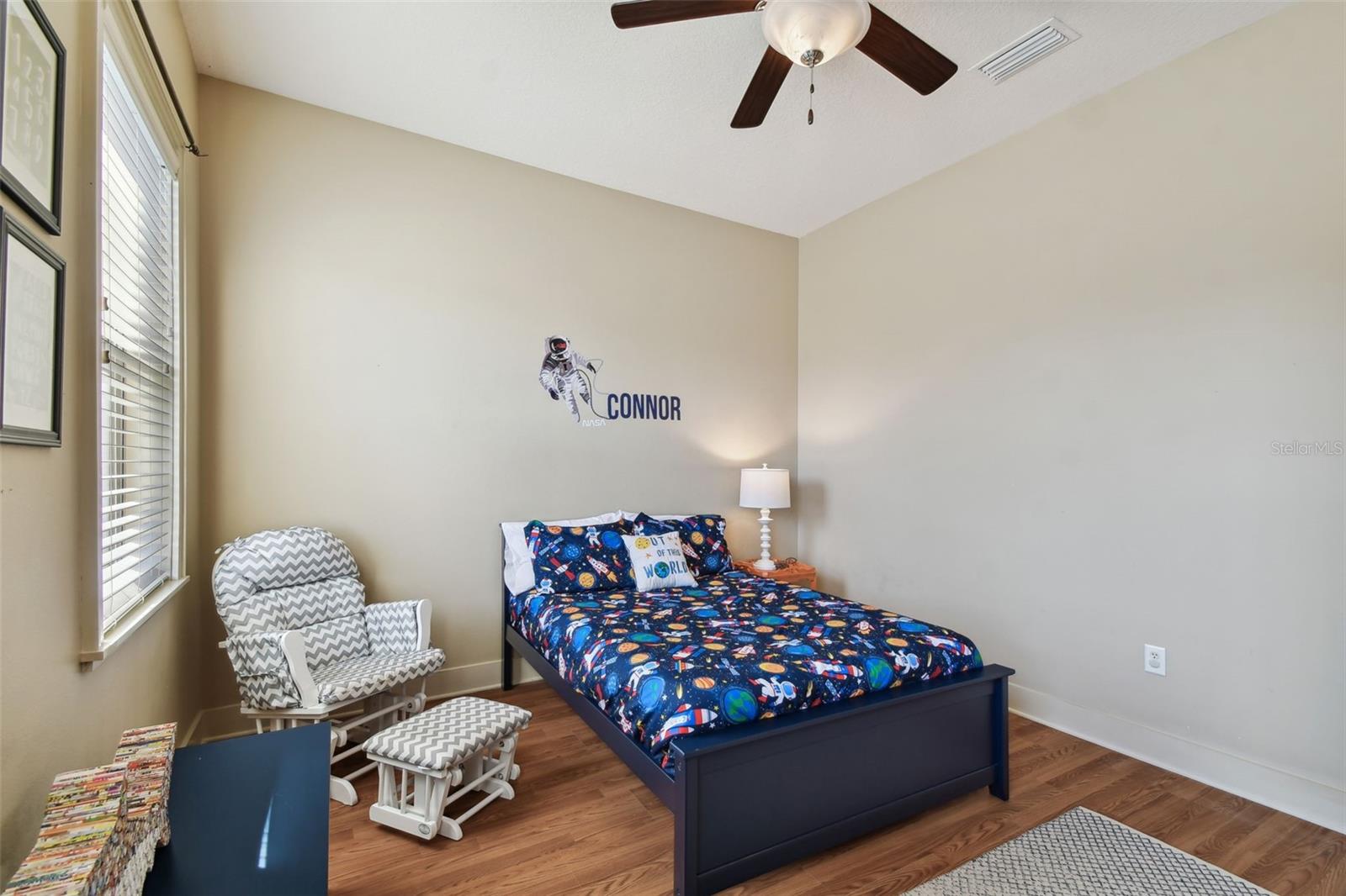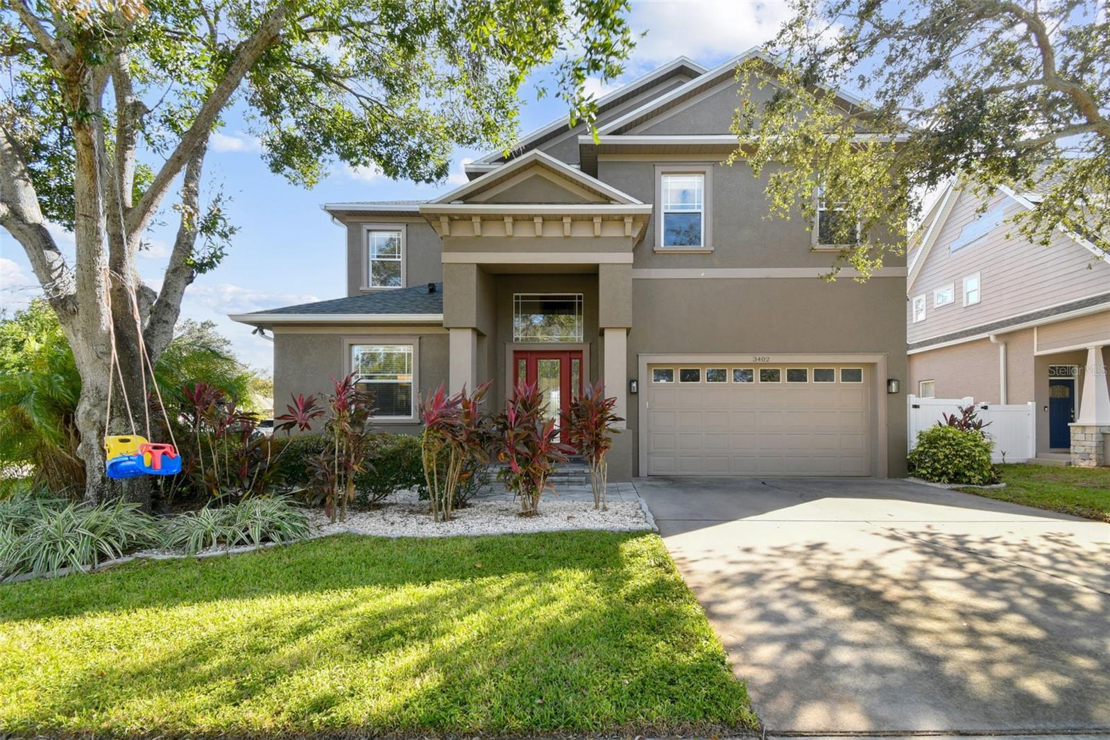 Situated on a corner lot, this beautiful custom-built home features all-block construction, ten-foot ceilings, and an amazing floorplan. The first floor includes a two-story foyer, formal dining room, spacious living room, casual dining space, powder bath, and downstairs bedroom (could also be office or play room). The kitchen boasts JennAire stainless steel appliances, wine fridge, double ovens, gas cooktop, island, Grohe faucets, granite countertops, and walk-in pantry. Upstairs, you'll find four additional bedrooms, three bathrooms, the laundry room, and a loft space. The owner's suite has two walk-in closets and an impressive en suite bathroom with jacuzzi tub and walk-in shower. Two bedrooms share a Jack-and-Jill bathroom. The loft area includes a built-in desk area for a home office or homework station. Time to head outdoors to appreciate the fully fenced backyard and screened in porch. Relax with your morning coffee or evening cocktail and enjoy the Florida lifestyle! The home is located in Flood Zone X (the home never lost power or flooded during recent storms.) Recent improvements include roof, gutters, AC, new flooring in all the bedrooms (no carpet anywhere), exterior fencing, landscaping, and interior paint.