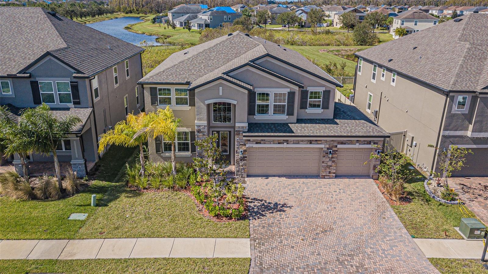 2023 built stunning 5 bedroom, 5 bathroom . 3 Car Garage MI Home in the highly sought-after 65 lot village of Eagle Creek in K-Bar Ranch. This elegant property with Popular Sonoma II "C" Floorplan offers a spacious 3,786 square feet of living space over two stories, perfect for a growing family or those who love to entertain. As you enter the home, you're greeted by a sense of luxury and modern design. The open-concept floorplan seamlessly integrates the living, dining, and kitchen areas, creating a welcoming and inclusive atmosphere for residents and guests alike. Your kitchen boasts top-of-the-line appliances and ample counter space. Each of the 5 bedrooms is generously sized and offers plenty of natural light, providing a comfortable retreat for everyone in the household. The outdoor area presents opportunities for relaxation and entertaining, with a well-maintained yard facing conservation and lake view for watching sunsets. The community amenities include a community pool, cabanas, clubhouse, playground, tennis courts, and a community gym. It's just minutes away from shopping, restaurants, hospitals, recreation areas, USF, VA, and Moffitt, Bruce B. Downs, and I-75.