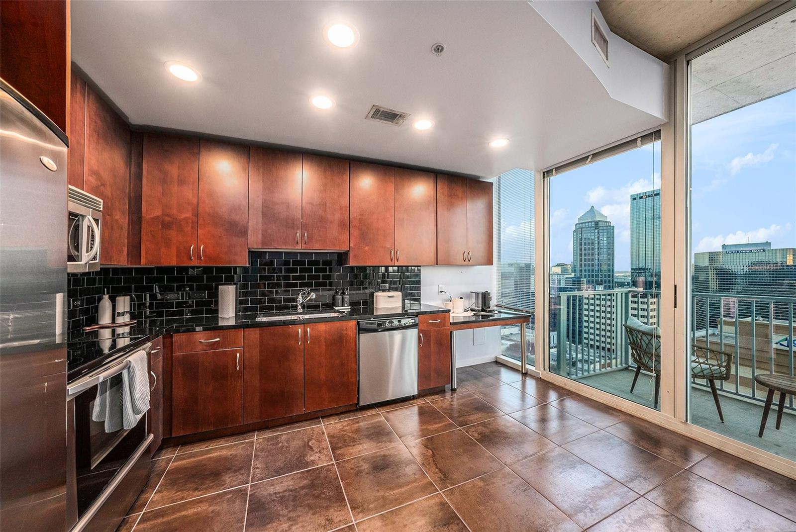 Discover the pinnacle of urban luxury in this stunning 18th-floor SkyPoint condo, offering 772 sqft of stylish, modern space with floor-to-ceiling windows that frame breathtaking views of Tampa’s skyline, Hillsborough River, and Tampa Bay. This one-bedroom, one-bathroom residence boasts updated flooring, a sleek kitchen with granite countertops and stainless steel appliances, a spacious walk-in closet, and a beautifully upgraded bathroom featuring a walk-in shower. SkyPoint’s premier amenities cater to every lifestyle need, including two fully equipped exercise and weight rooms, a community center with a movie theater, full kitchen, bar, dining areas, and pool table—perfect for hosting gatherings. Step outside to enjoy multiple outdoor kitchens, a large pool, hot tub, and a "walking park," all with seating areas that provide panoramic views of Tampa. The access-only parking garage provides security and includes assigned parking spots for each unit. Located in the vibrant heart of downtown Tampa, you’re just steps from the Amalie Arena—home of the Tampa Bay Lightning and host to major concerts and events—as well as the University of Tampa, Riverwalk, Curtis Hixon Park, and an endless array of dining and entertainment options. Don’t miss the opportunity to call this exceptional SkyPoint condo your home. Schedule your private showing today!