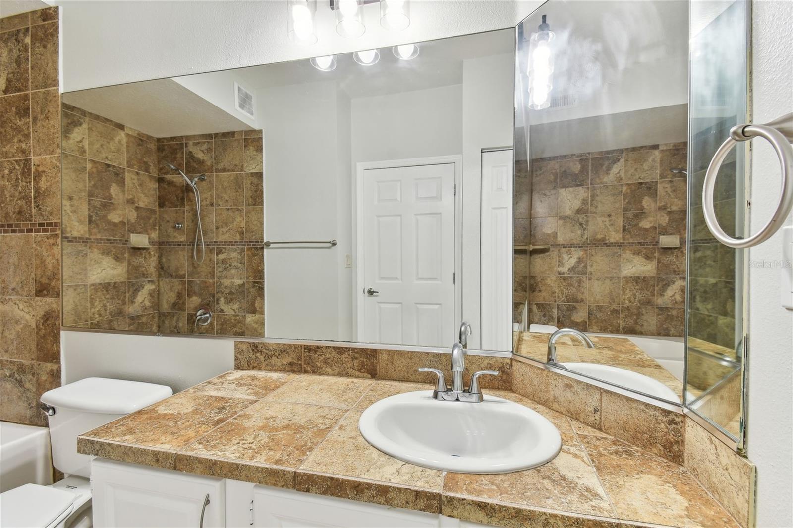 NEW YEAR + NEW PRICE = YOUR NEW HOME SWEET HOME! This condo is located in desirable Pinnacle at Carrollwood complex. Don't miss your opportunity to be the proud new owner of this beautiful condo boasting of 2 large bedrooms, each with walk-in closets and two full baths. The kitchen features all black appliances including refrigerator, dishwasher, range and microwave giving a sleek, modern feel. A separate dining area with chandelier provides space for family and friends to dine comfortably. The nicely sized living room provides plenty of space for both entertaining or just relaxing. A sliding glass door leads to your own private balcony when you can sit back, relax and enjoy the views An outside closet on the balcony provides extra storage for outdoor cushions and/or items to be kept from the weather. The laundry area is right off the kitchen making doing the laundry a breeze. Stone countertops in the kitchen and both bathrooms not only look stunning but makes cleanups a breeze. Ceiling fans adorn both bedrooms as well as the living room helping to keep everyone cool and comfortable. Beautifully maintained complex with mature, manicured landscaping and beautiful ponds with fountain. Complex amenities include a beautiful community pool, a recreation building and an exercise/fitness center. Don't let this one pass you by...schedule your showing today!