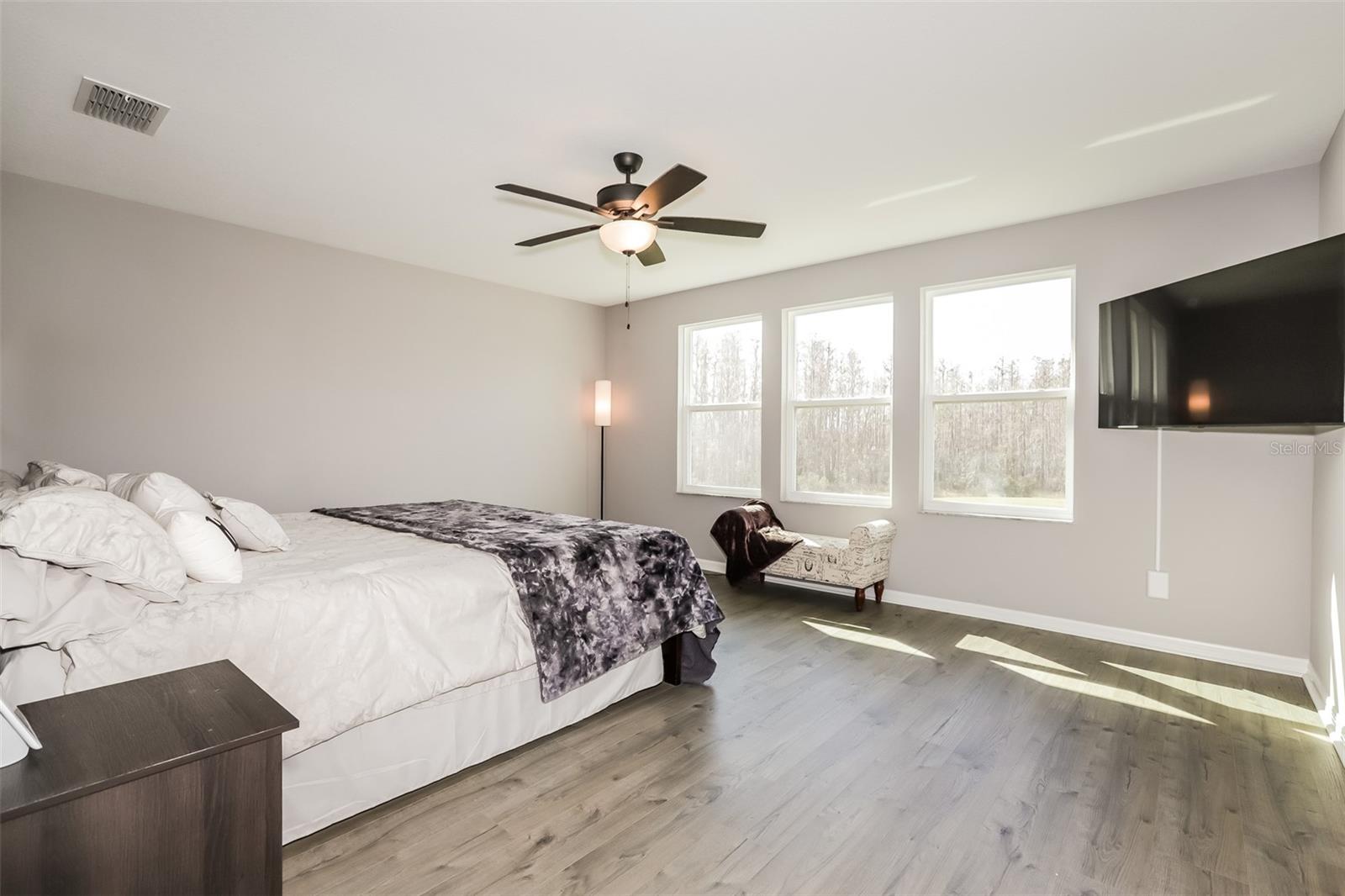 Welcome to 19238 Old Spanish Road, a stunning 4-bedroom, 2.5-bathroom two-story home located in the desirable K-Bar Ranch subdivision. This open-concept home features a spacious kitchen with stainless steel appliances, a kitchen island with a breakfast bar, and seamlessly flows into the family living area. Upstairs, you'll find the large primary bedroom with luxury vinyl flooring, an en-suite bath, and a walk-in closet. Sliding doors from the living area lead to a finished, screened porch with peaceful pond views. The community offers well-maintained common areas, a community center, and a pool, all just a short distance away.