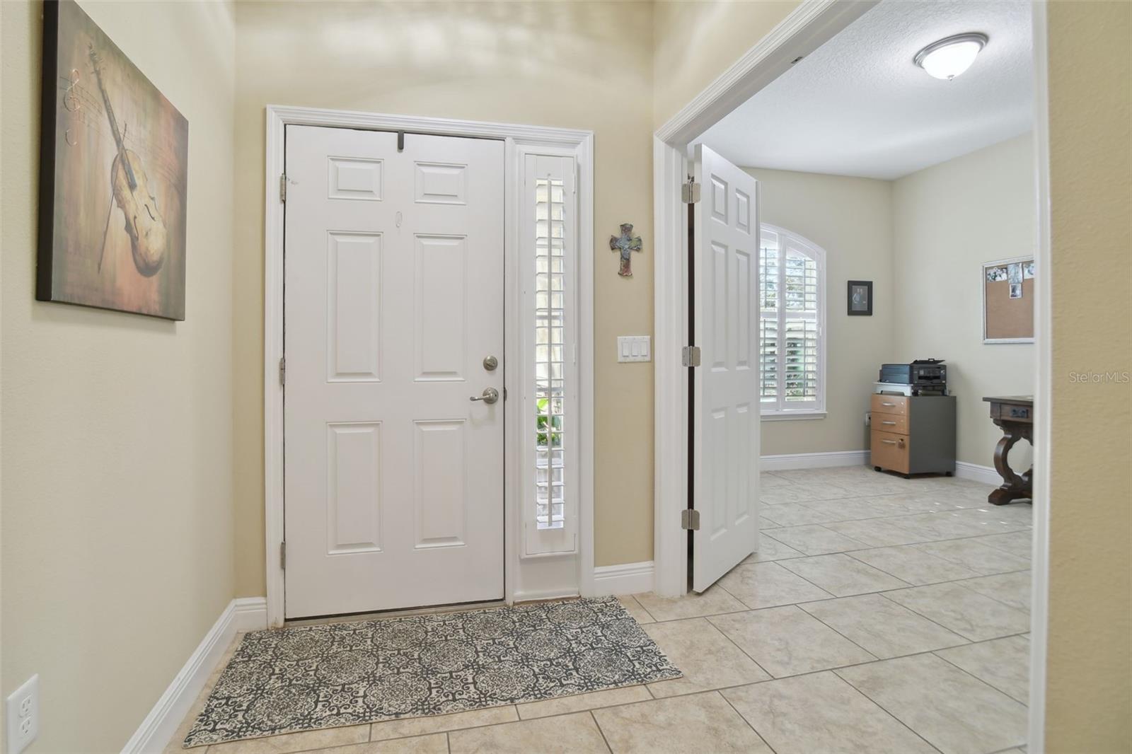Situated on a corner homesite in the award-winning and well-located Hillandale Reserve, this gorgeous 4 bedroom, 3 bathroom, plus office, triple split plan home is stunning in every detail. This is an extremely rare opportunity to own a residence in this wonderful neighborhood. Drive through the gated, tree-lined community to this beautiful three-car garage home with a wide pavered driveway situated on an end lot next to a pond. Walk through the front entry door to be greeted by the stately foyer. Just to the left of the foyer is the spacious double doored office with tile flooring and a view of the front yard through plantation shutters. Beyond the foyer and to the left are the spacious formal living and dining rooms both with ample space to host any event! To the right, you’ll find a large pantry and butler’s pantry that passes through to the large kitchen with stainless steel appliances, 42” upper cabinets and granite countertops. The kitchen also boasts a tile floor and backsplash and opens to the enormous family room and eating area with built-in surround sound speakers, high ceilings and views of the beautiful pool through French doors and gorgeous plantation shutters. Enjoy outdoor living and the pool/spa in privacy provided by a 6’ vinyl fence and lush plantings around the yard. Built-in stereo speakers and ceiling fans on the lanai add the final touch. Back inside the home and off the family room is the very comfortable oversized primary suite! The primary bedroom is so large it can accommodate any size furniture and double doors lead you into the gigantic primary bath that offers the tranquility of a spa with a separate tub, walk-in shower, double vanities, and an enormous walk-in closet! On the opposite side of the home off the hallway with two side by side closets, you’ll find two more very large guest bedrooms w/walk-in closets, and the home’s second bathroom that also accesses the pool area. At the front of the home, you will find the fourth, extremely large bedroom also with a sizeable walk-in closet and adjacent guest bathroom. With mature trees and landscape, 3-car garage with shelving, front load LG washer & dryer, full set of steel hurricane shutters, new pool screening, and insulated covered lanai, spray foam insulation, and a giant attic storage area, this home has everything you need to make it yours. Located in the quiet Lake Magdalene area and close to Carrollwood the community allows fishing in the neighborhood pond that has park bench for relaxing across from the community lake that allows you to put in a small row boat. Close to I275, shopping, and restaurants, this is a fantastic opportunity to live in such an amazing community. Schedule your showing today! (Propane tank for pool heat is leased.)