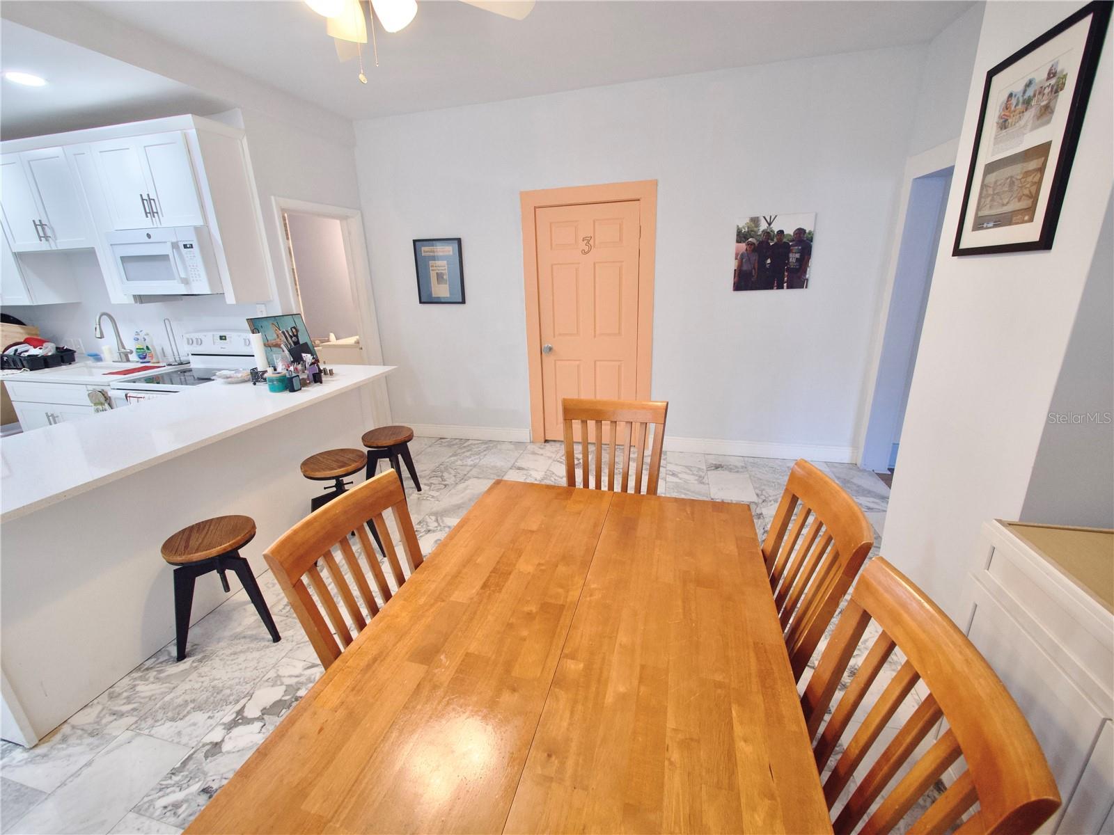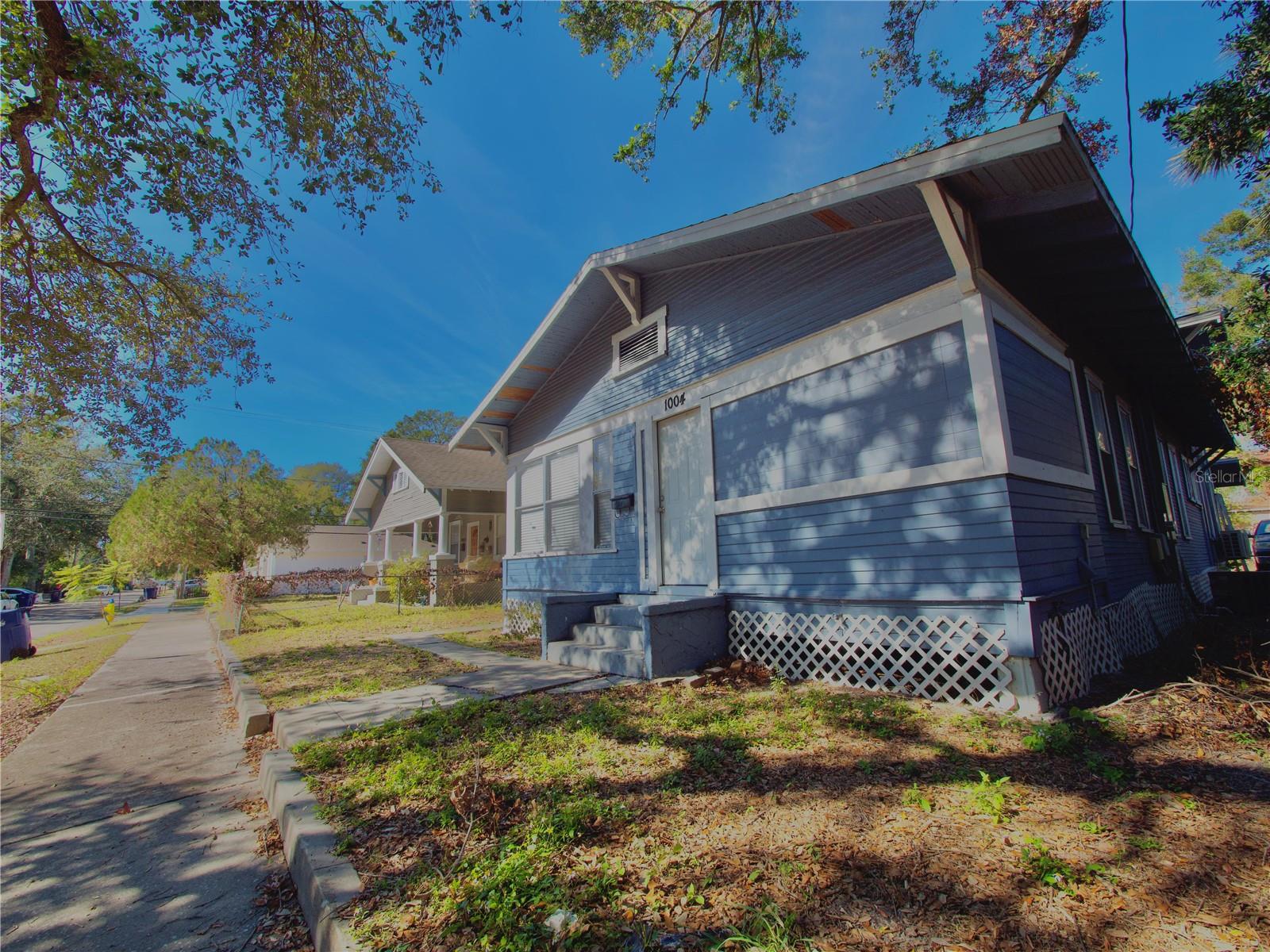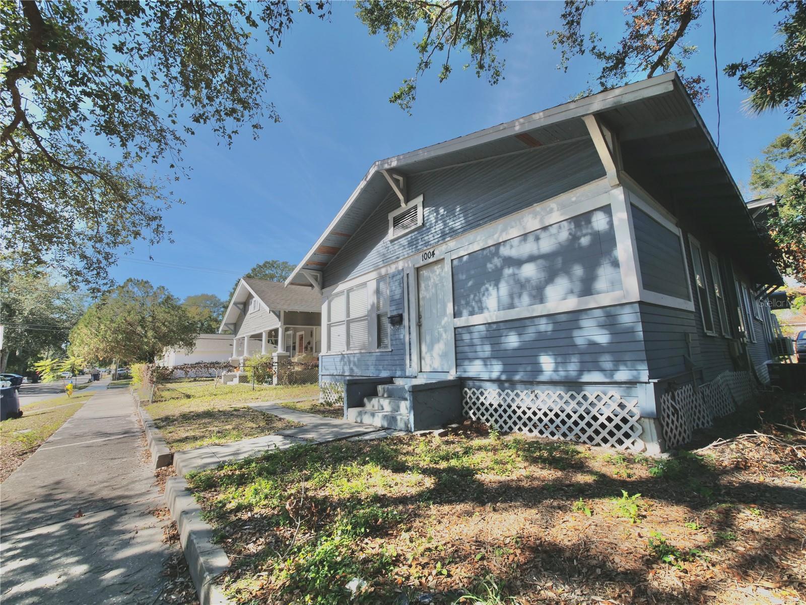 This quaint Florida bungalow was built in 1925 and is very close to Ybor City, Channelside, and downtown Tampa. The home features 2 separate living spaces offering a total of 4 bedrooms, 2 bathrooms, 2 kitchens, 2 family rooms, and eating space in the main kitchen. The living spaces are connected by an interior door that could be locked for privacy, etc. The front primary living space offers a full kitchen which was previously fully renovated and offers updated appliances, marble tile floor, built in microwave oven, beautiful solid surface counter tops, sink, and updated cabinets. The bathroom was also fully renovated with custom tile shower, glass shower door, and elegant vanity. There is a large indoor laundry room with washer and dryer. The secondary living space also offers a fully renovated kitchen with solid surface counter tops, sink, and updated cabinets. The flooring throughout is laminate wood flooring which is in great condition. The bedroom is upstairs — features a space for home office/den or could be unused as an additional bedroom. This unit is easy to keep comfortable with 2 mini split HVAC units one for up and one for downstairs. Parking is in the rear of the home accessible via an alley. The side and rear entry each feature covered porches — perfect for sitting out and enjoying a refreshing lemonade! Schedule your private showing before it’s gone! MAKE SURE TO CHECK OUT THE ONLINE VIDEO TOUR!