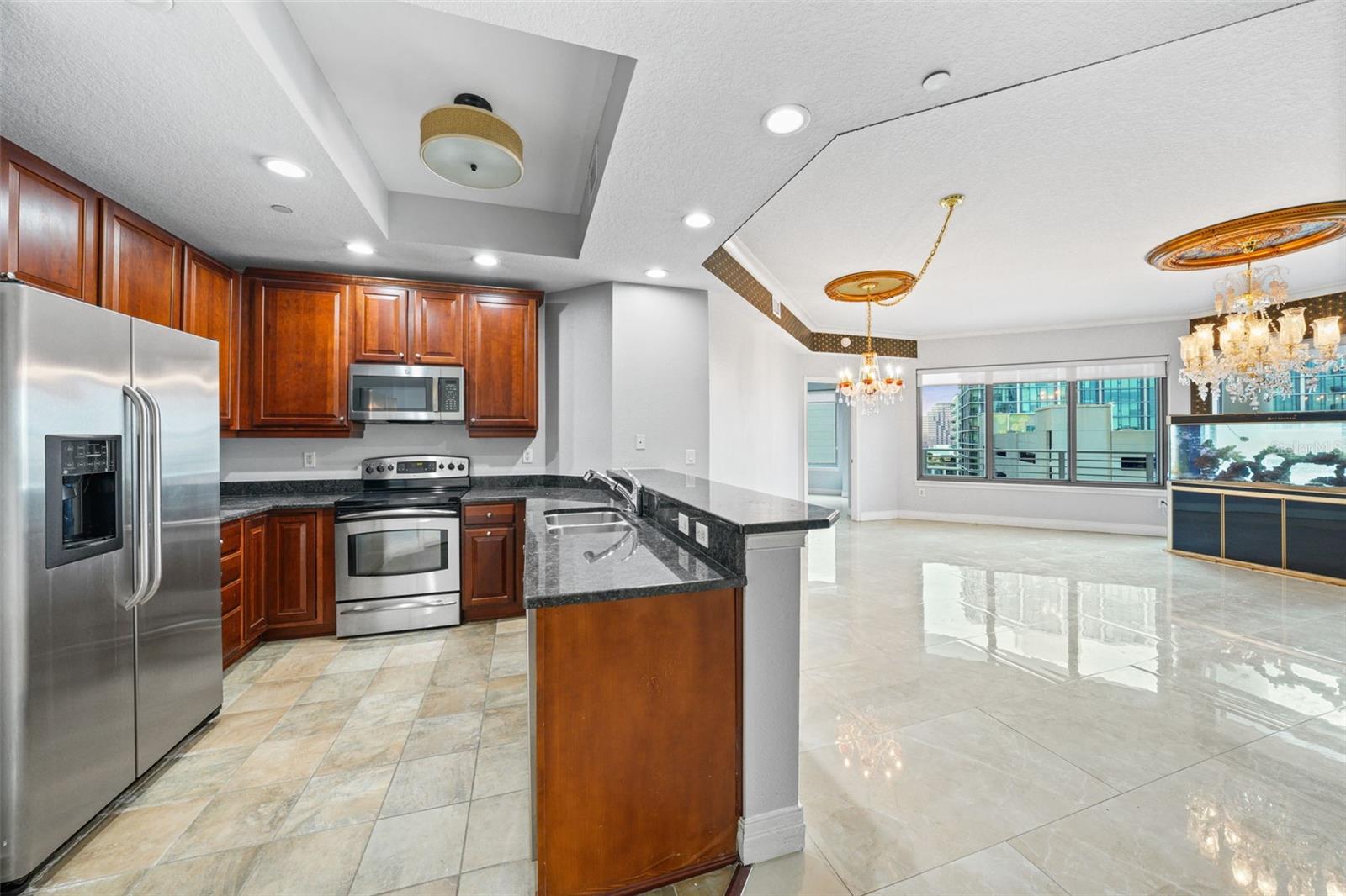 Experience unparalleled comfort and style in this stunning 11th-floor luxury condo, where breathtaking panoramic views of the water, Water Street, cruise ships, and Harbour Island greet you each sunrise and sunset. This is a rare opportunity to own one of the select units offering city skyline views of Water Street. Unlike typical two-bedroom units, this unique Two-Bedroom Master floor plan is the largest of its kind in both towers, with expansive living spaces that surpass even larger three-bedroom units, one of which recently sold for $1.1MM! The condo includes two secured parking spaces in the garage with additional room for a motorcycle or extra storage, as well as a large storage unit for added convenience. Both master suites feature ensuite bathrooms, massive walk-in closets, and direct access to the spacious 278 sq. ft. wrap-around terrace. A separate powder room is available for guests. The interior is exquisitely designed with tile flooring in the kitchen and bathrooms, rich hardwood floors in the main living area, elegant crown molding, tray ceilings, and a modern kitchen with granite countertops and premium finishes. This home is truly move-in ready! Enjoy the privacy of a floor with few units while becoming part of one of Tampa Bay’s most luxurious high-rise communities. Don’t miss your chance to turn the key to your dream home in a highly desirable neighborhood with unrivaled city skyline views.