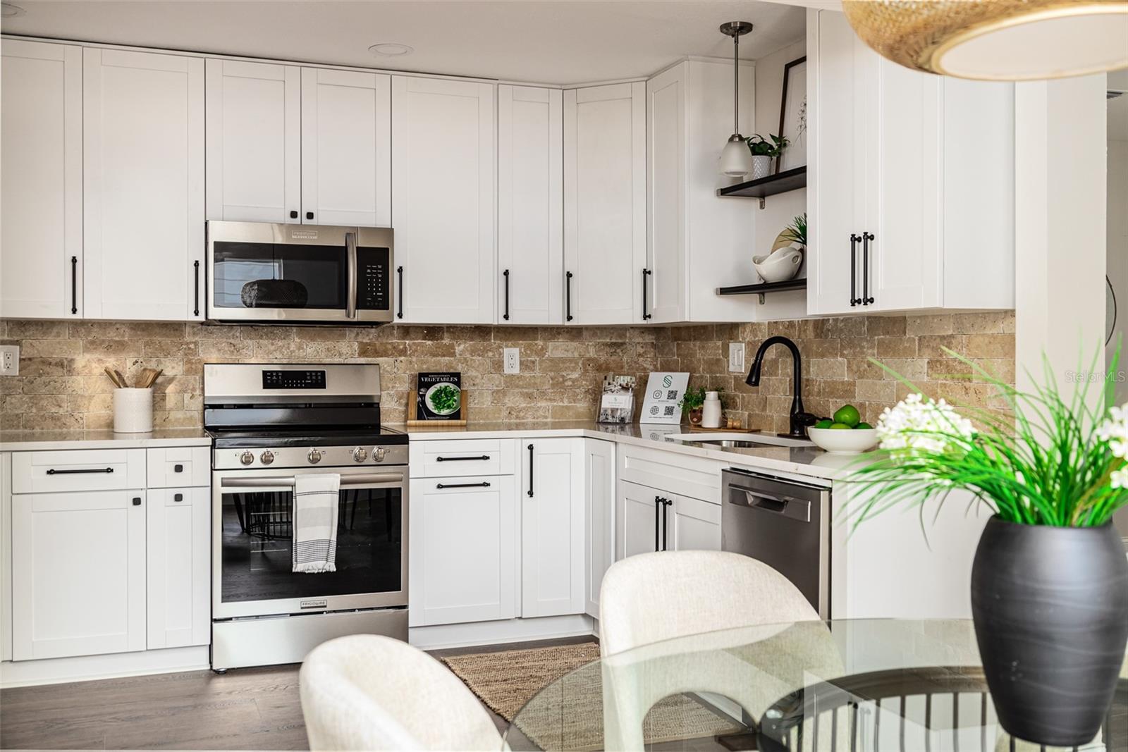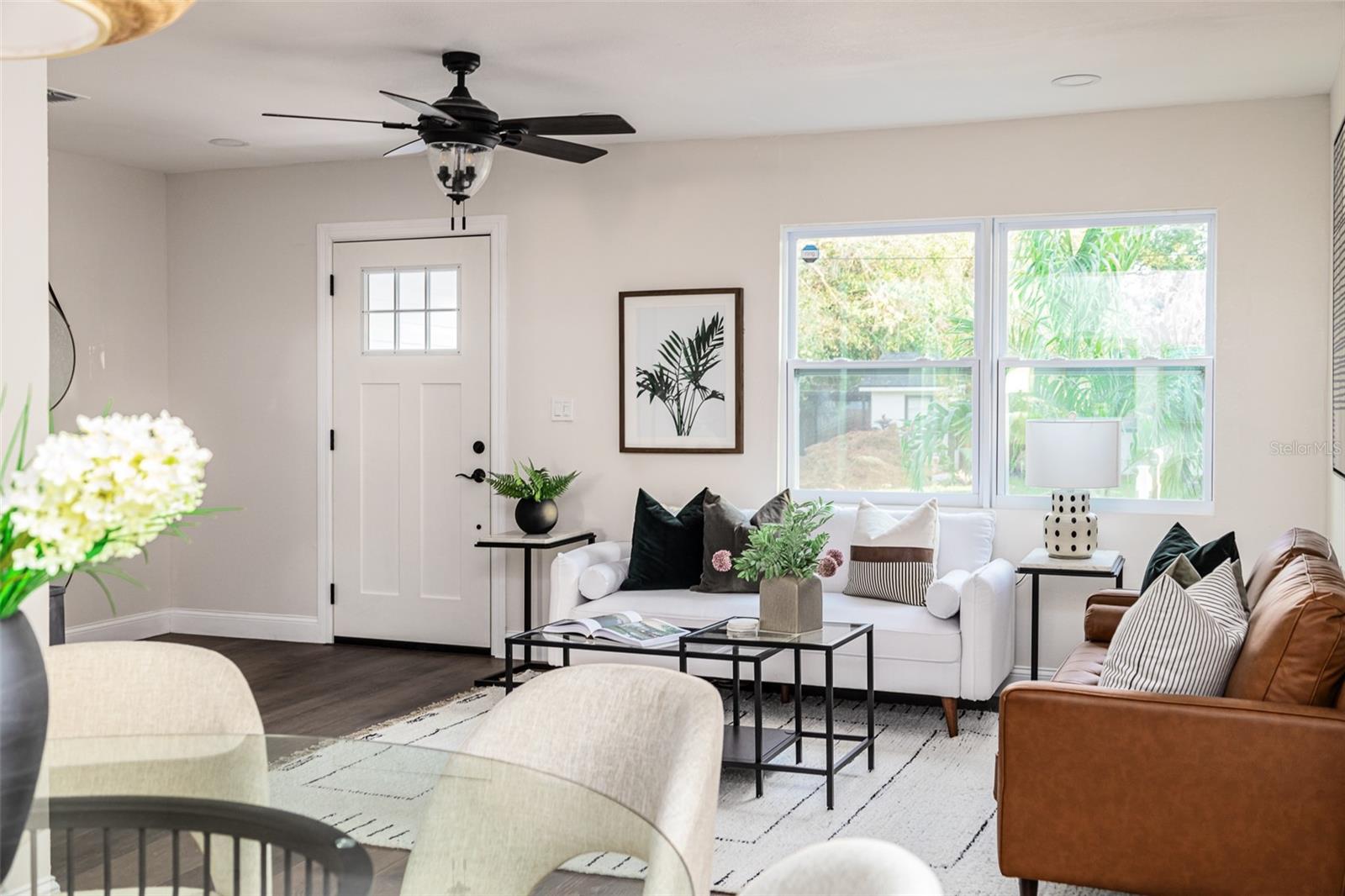 Welcome to this beautifully reimagined home in the heart of Seminole Heights! Fully remodeled from top to bottom, this stunning 3-bedroom, two full bathroom split plan residence boasts a metal roof, brand-NEW HVAC, top of the line appliances, fixtures, cabinets, NEW electrical, and NEW plumbing, offering the feel of new construction with the charm of this thriving neighborhood. As you step inside, you’ll be greeted by an open, airy floor plan with high-end luxury vinyl flooring throughout. The spacious living areas are filled with natural light, and NEW windows with hurricane protection fabric to provide safety, energy efficiency, and peace of mind. The gourmet kitchen features sleek quartz countertops, natural stone back splash, brand-new high-end appliances, and ample storage space, including a bright, built-in pantry that’s both functional and stylish. Each of the three bedrooms offers a serene retreat with generous closet space, while the two fully updated bathrooms provide a spa-like experience with modern fixtures and finishes. Additional features include an indoor laundry closet for convenience, a thoughtfully lit bonus room which can serve as an office and a termite warranty. Situated near the City of Tampa’s sand volleyball courts and just moments from scenic parks along the Hillsborough River, this home is perfect for those who love the outdoors. Inside, the thoughtfully designed layout provides a bright and airy ambiance, ideal for both relaxing and entertaining. Step outside to discover a spacious fenced backyard with endless possibilities—ample room to add a pool, store RVs, trailers, and trucks, or create your own private oasis. The covered patio is an entertainer’s dream, complete with outlets for TV components, making it the perfect spot to host gatherings year-round. Nestled in a rapidly growing community with trendy restaurants, breweries, and local shops just minutes away, this home is a rare find. Don’t miss your chance to own a fully updated gem in one of Tampa’s most sought-after neighborhoods!
