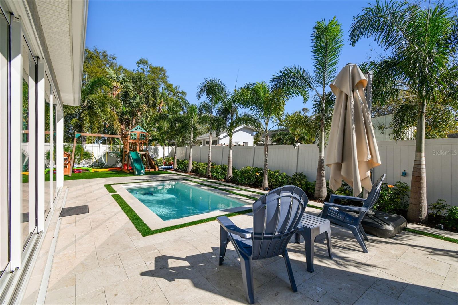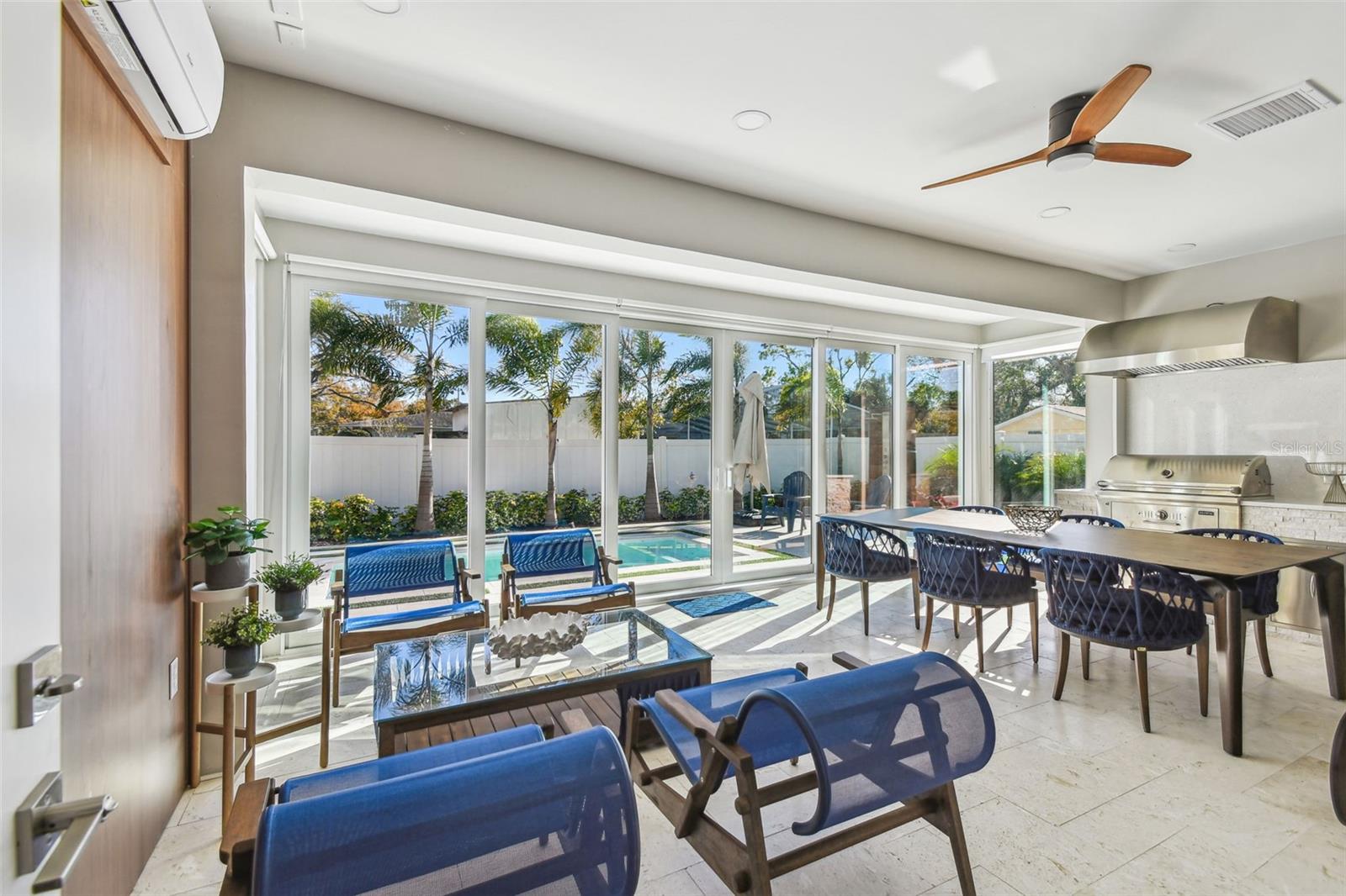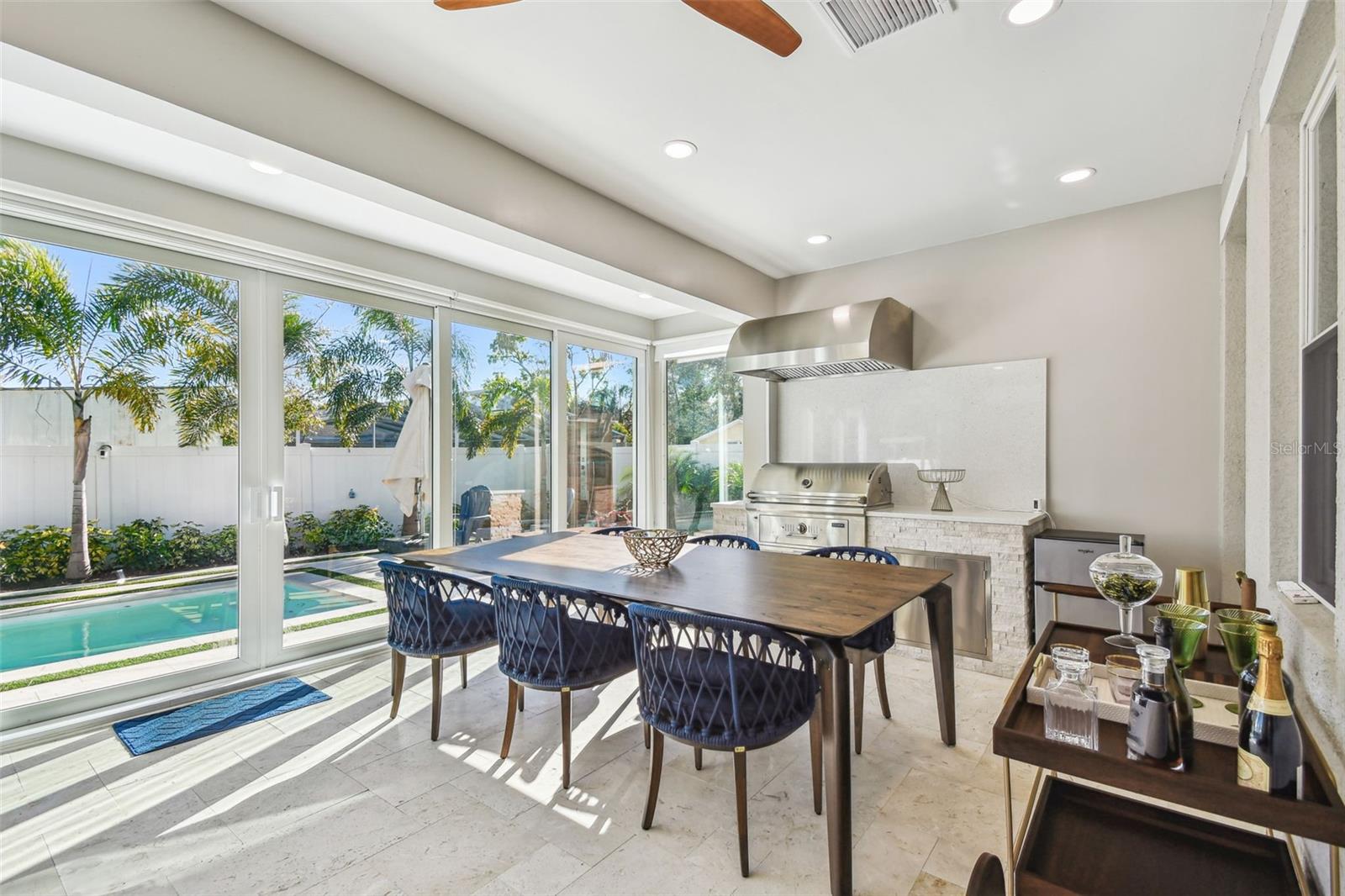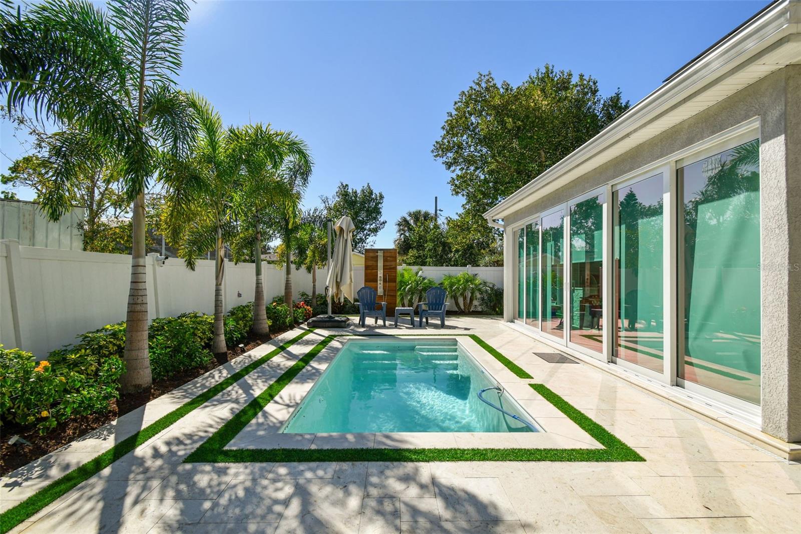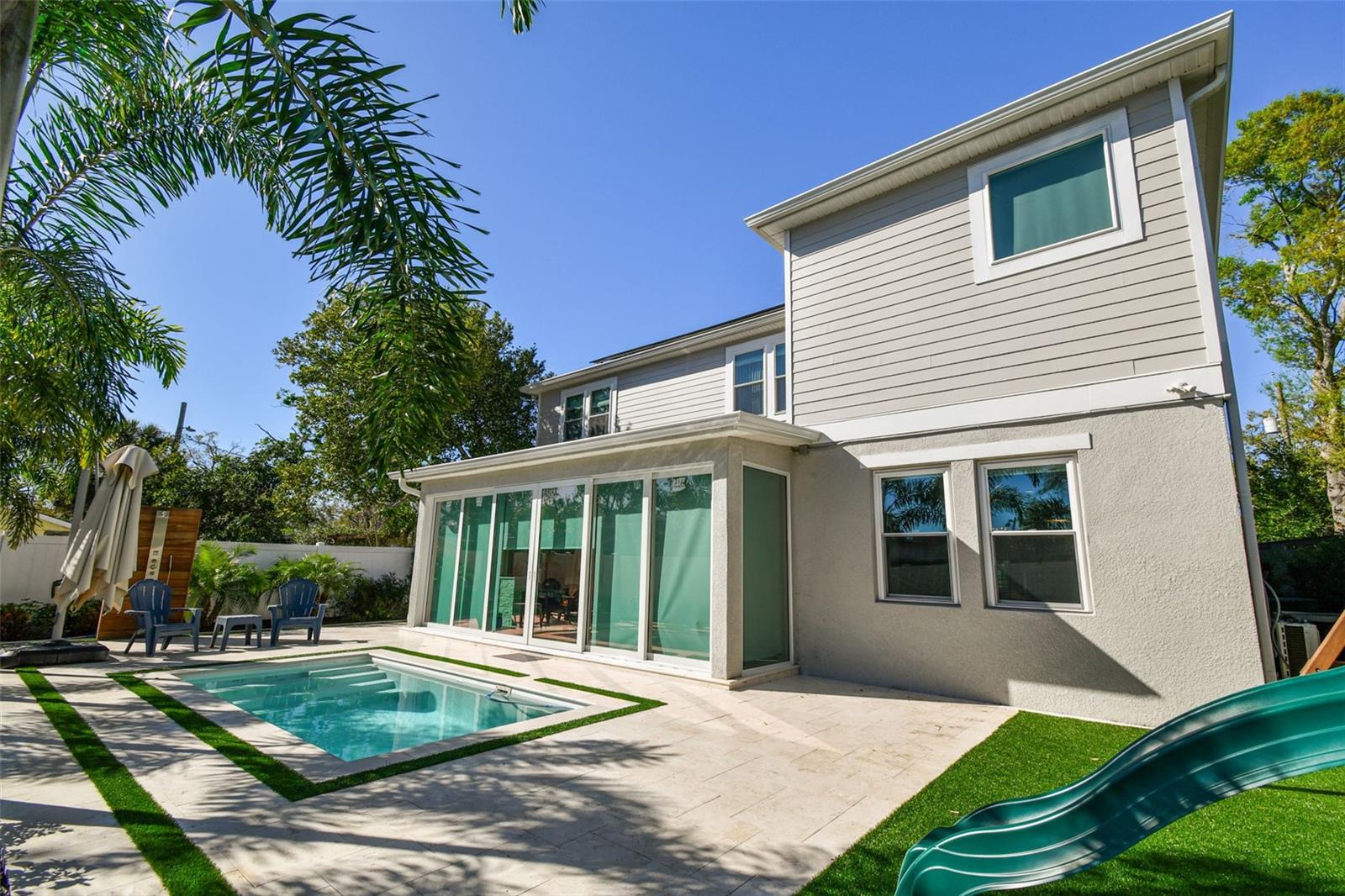 Location, Location, Location. This 5-bedroom, 5-bathroom home offers a perfect blend of luxury, functionality, and custom upgrades. Check out virtual tours: furnished and unfurnished! Situated on an oversized 65x120 lot, this M. Ryan-designed residence includes a study/den, spacious bonus room, and a 2-car garage, all in a prime South Tampa location. Rated A school district and minutes from major grocery shops including Trade Joes. Inside, a two-story foyer welcomes you into an open floor plan with hardwood floors, impact windows, and 8’ doors. The formal dining room and private study with French doors provide elegant and functional spaces. The chef’s kitchen features a large quartz island, GE appliances, farmhouse sink, and a walk-in pantry, overlooking the casual dining area and expansive family room. The first floor also includes a guest suite with a full pool bath, perfect for visitors or multi-generational living. Upstairs, the primary suite offers a spa-like bath with dual vanities, soaking tub, large shower. Three additional bedrooms, each with en-suite baths, and a 14x14 bonus room complete the second floor. Outdoor living is exceptional, featuring a newly installed pool with a travertine deck, a pool shower, and a covered lanai that has been enclosed, creating a Florida room with travertine flooring. The backyard includes turf for easy maintenance, a custom-built charcoal grill with an exhaust fan and stone finish, and a storage shed. Additional upgrades include custom-designed carpentry by Marel (Miami) in all four second-floor closets, built-in shelving in the den, wood slat accent wall in the living room, modern Italian-look cabinets in the laundry room, mirrored bathroom cabinets. The home is equipped with solar panels for energy efficiency and is not in a flood zone. Conveniently located near Plant High School - Rated A school district and exceptional private schools, Tampa International Airport, and Downtown Tampa, this property offers the best of South Tampa living.