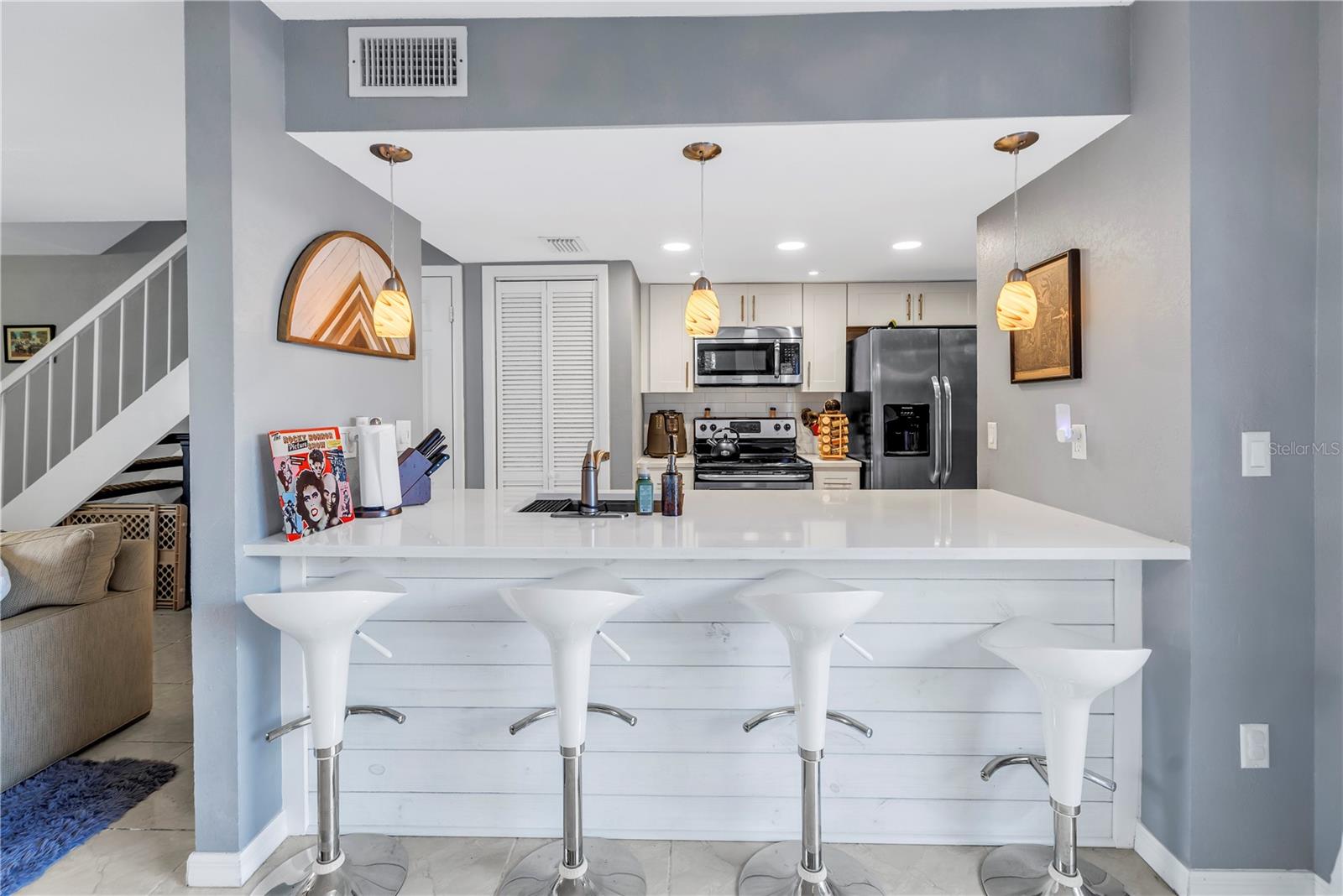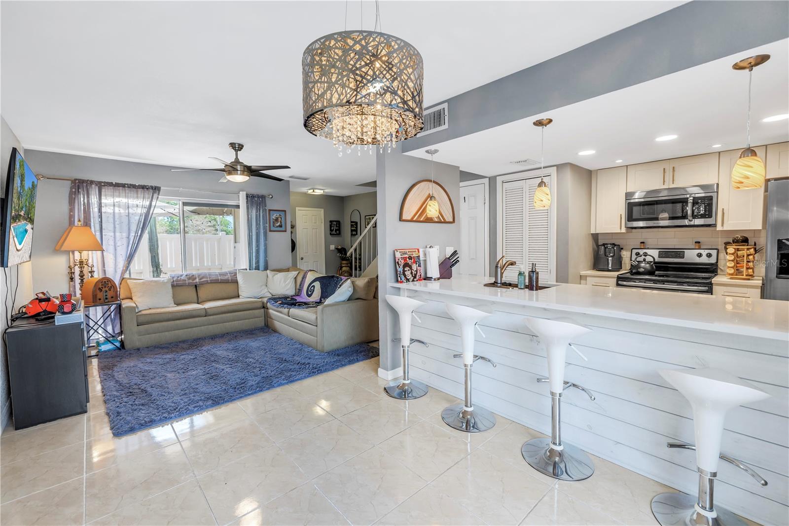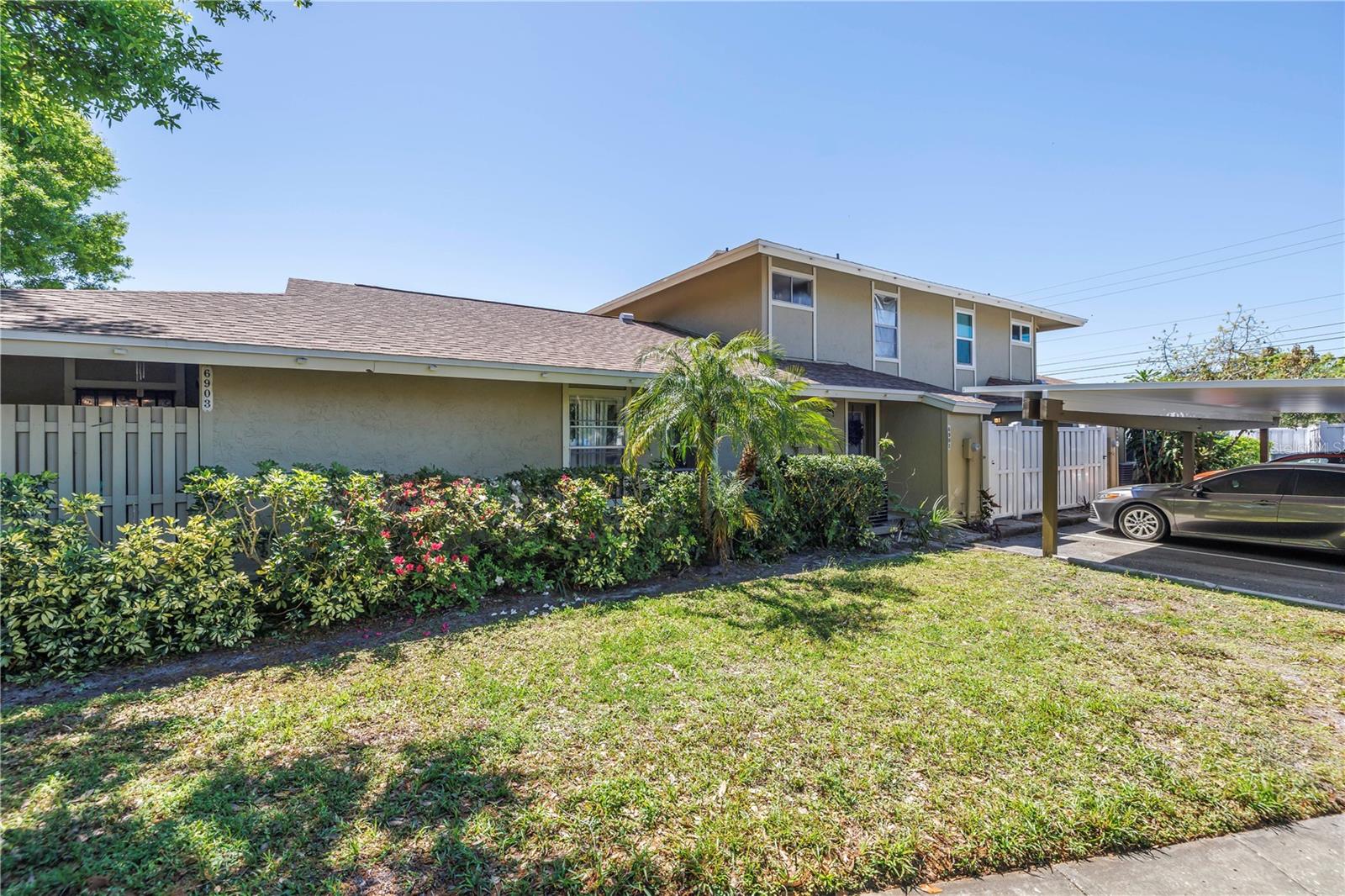Short Sale. Full of thoughtful updates, this beautifully upgraded townhome in Town ‘N’ Country is move-in ready! The first floor features sleek tile throughout, while the updated kitchen has quartz countertops, stainless steel appliances, soft-close cabinets, a subway tile backsplash, and an oversized sink. A charming shiplap-lined breakfast bar adds character, and the open-concept layout flows seamlessly into the dining and living areas. Enjoy indoor-outdoor living with sliding glass doors that lead to private patios in the front and back of the unit, with privacy fencing around both. The back patio opens up directly onto the Town ‘N’ Country Greenway hiking trail, perfect for walking, biking, rollerblading, and enjoying the beautiful Florida sunshine. Upstairs, the bedrooms are quite sizable and feature brand-new wood plank flooring. The roof was recently replaced by the HOA, and the community’s lush tropical landscaping leads to the nearby pool for relaxation. This home comes with two assigned parking spots (one covered) and is located on a quiet cul-de-sac with no through traffic. With a reasonable HOA fee and a prime location just minutes from Veterans Expressway, shopping, dining, and all that vibrant South Tampa has to offer, plus easy access to Tampa International Airport, this townhome is a must-see!