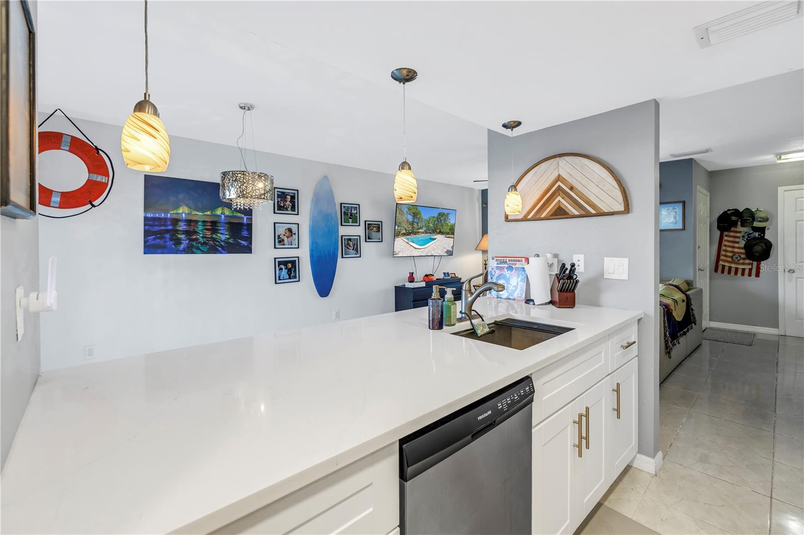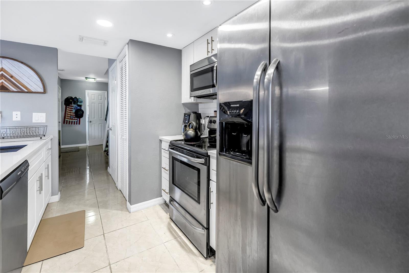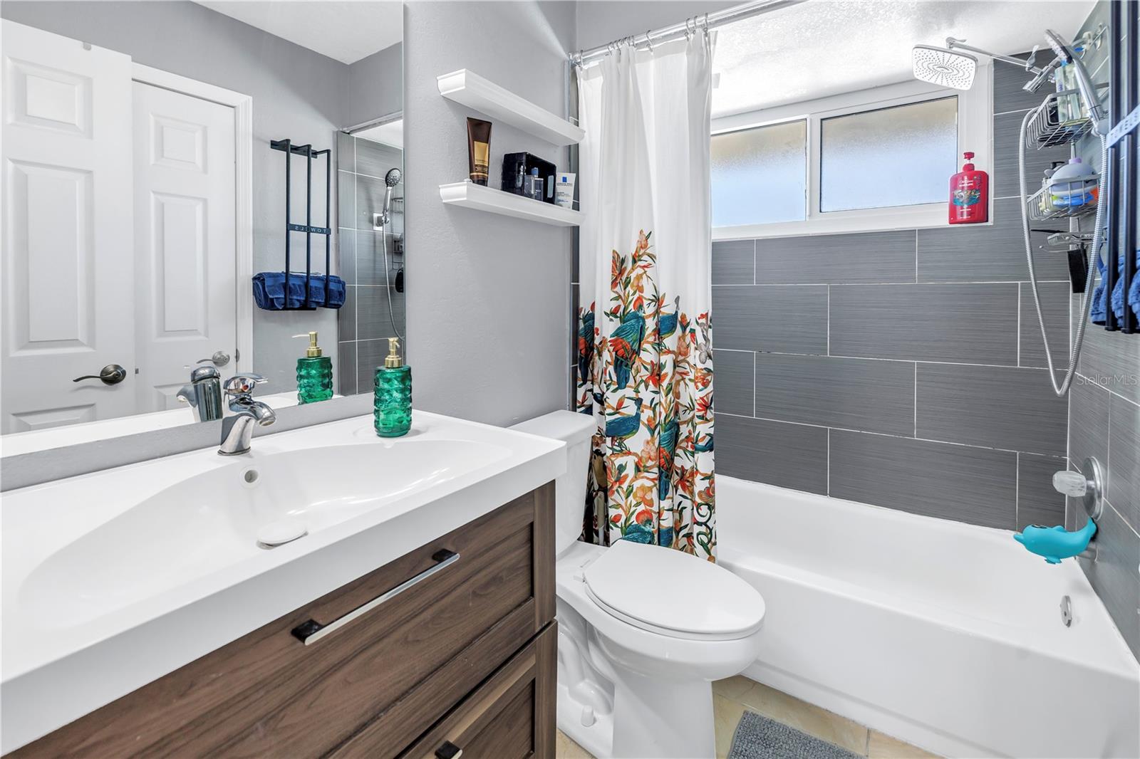 Short Sale. Full of thoughtful updates, this beautifully upgraded townhome in Town ‘N’ Country is move-in ready! The first floor features sleek tile throughout, while the updated kitchen has quartz countertops, stainless steel appliances, soft-close cabinets, a subway tile backsplash, and an oversized sink. A charming shiplap-lined breakfast bar adds character, and the open-concept layout flows seamlessly into the dining and living areas. Enjoy indoor-outdoor living with sliding glass doors that lead to private patios in the front and back of the unit, with privacy fencing around both. The back patio opens up directly onto the Town ‘N’ Country Greenway hiking trail, perfect for walking, biking, rollerblading, and enjoying the beautiful Florida sunshine. Upstairs, the bedrooms are quite sizable and feature brand-new wood plank flooring. The roof was recently replaced by the HOA, and the community’s lush tropical landscaping leads to the nearby pool for relaxation. This home comes with two assigned parking spots (one covered) and is located on a quiet cul-de-sac with no through traffic. With a reasonable HOA fee and a prime location just minutes from Veterans Expressway, shopping, dining, and all that vibrant South Tampa has to offer, plus easy access to Tampa International Airport, this townhome is a must-see!