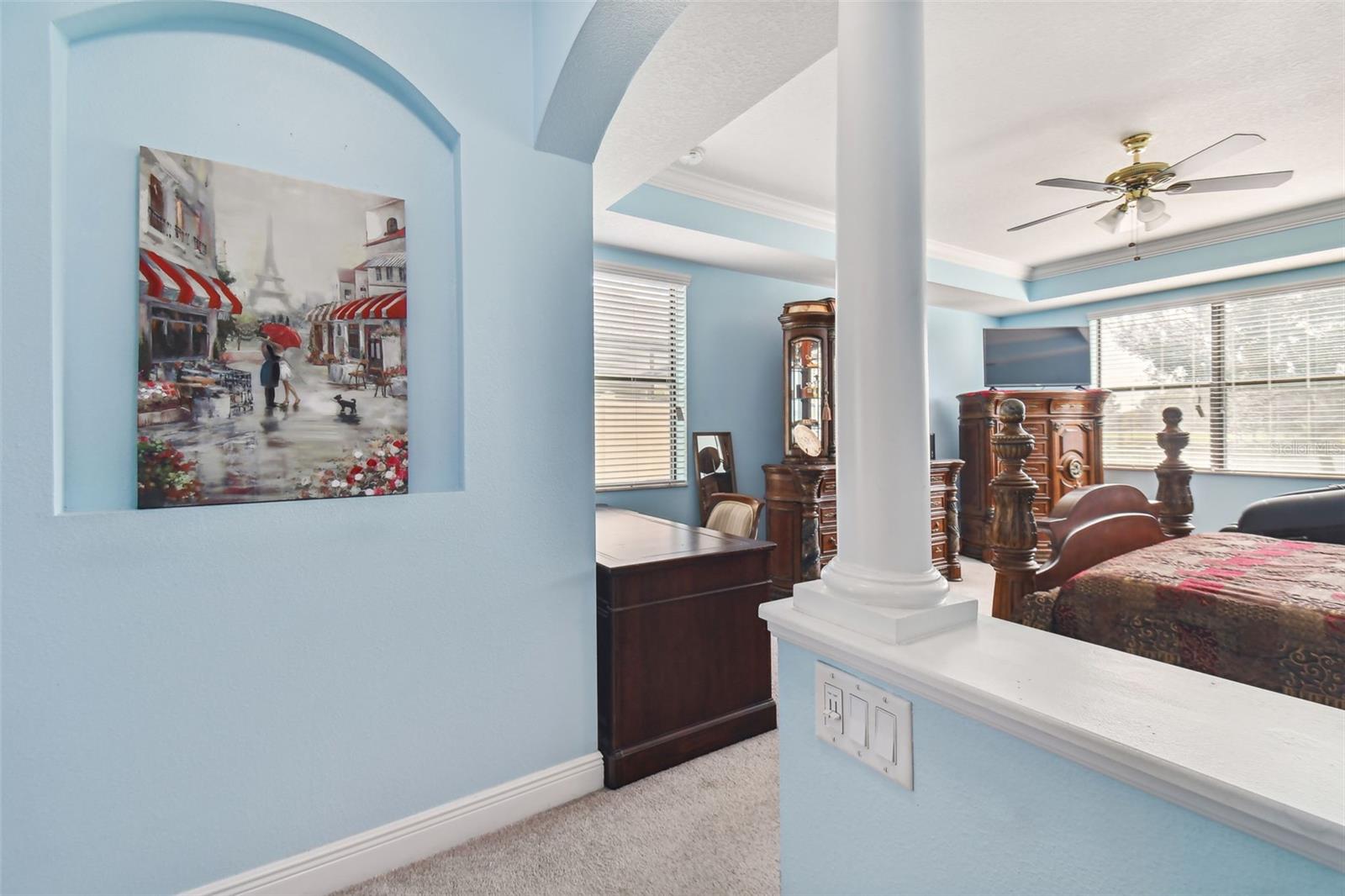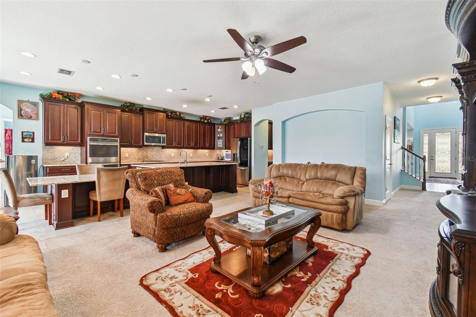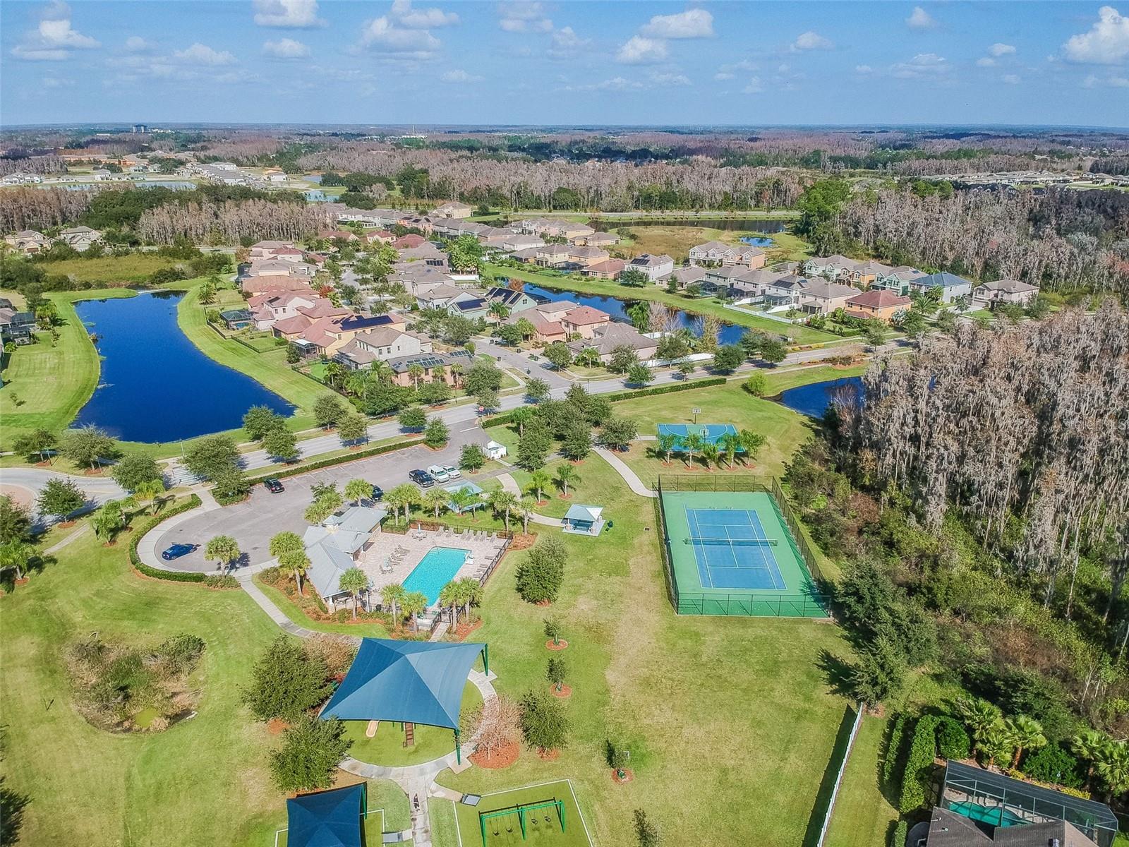 Priced way below Appraised Value so its Buyer will walk in with lot of equity. Post-Hurricane Inspection Clear. This Home embraces personal and professional growth with seven bedrooms, six-and-a-half bathrooms, a three-car garage, separate Den and Family Room, two Laundry Rooms, a Gourmet Kitchen, and a Game Room (Loft) with a Wet Bar. All whom reside will have their unique, private spaces along with public areas for sharing one another’s journeys. Five of the seven bedrooms have dedicated bathrooms, and one pair upstairs shares a bathroom. Six of the seven bedrooms have walk-in closets, with the downstairs, Guest Bedroom having a sliding closet. The Owner’s Suite is also downstairs, thus allowing for multiple Individuals to reside on both Floors. Two laundry rooms, one downstairs and one upstairs, enhance time efficiency for everyone, while liquid propane-powered {Water Heater, Stove, Both Dryers} enhance energy efficiency. The Gourmet Kitchen includes two, new Refrigerators (one large + one small), a new Microwave with ventilation above the Gas Range, and a new, three-tier dishwasher. The Upstairs Loft with Wet Bar provides an expansive area to continue the sharing and generation of memories, and connects publicly to an Upstairs, screened-in Balcony for elevated views of the beautiful, water and conservation areas. The three-car Garage’s new, vibrant, blue, polyaspartic (two-component, UV-resistant compound) flooring beautifies the Home’s junction to the World, and includes enhanced traction for safe driving and traversing, even with water. The Garage’s new, Carbon + Metal water softener in a single tank provides clean, soft water; its connected, water pump ensures high, water pressure for all appliances and residents simultaneously. Both HVAC Systems (One Upstairs + One Downstairs) are new, RunTru by Trane Systems rated at 14.3 SEER2 / 4 Tons. Each contains a 240 V UV Light to help prevent organic growth in their respective, air handlers, thus providing long-term, clean, cooling and heating for all Occupants. The Home’s exterior, including exterior doors, window trims, soffits, fascias, patio floor, and balcony floor, are all repainted; likewise, the driveway, walkway, and front porch pavers are resealed. And the Garage’s Water Heater is a 50-gallon, power-vented, liquid propane tank which provides rapid, hot water to the whole Home. This Home is located in the heart of New Tampa, near the major arteries of Bruce B. Downs Blvd. (2.5 to 4.5 miles) Cross Creek Blvd. New Tampa Blvd. (˜ 3 miles) SR-56 = Wesley Chapel Blvd. (˜ 3.5 to 7.3 miles) I-75 (˜ 6 miles) It is also nearby several Schools spanning K-12. Next, the Community itself, Laurel Vista, enjoys an Amenity Center with Tennis and Basketball Courts, Swimming Pool, Playground, and wide sidewalks abutting well-manicured grass for plenty of outdoor activities for Everyone. So with its architecture, features, geography, and Community amenities, this Home invites its Family to rest, relax, and grow with its provided pragmatism, luxury, and warmth.