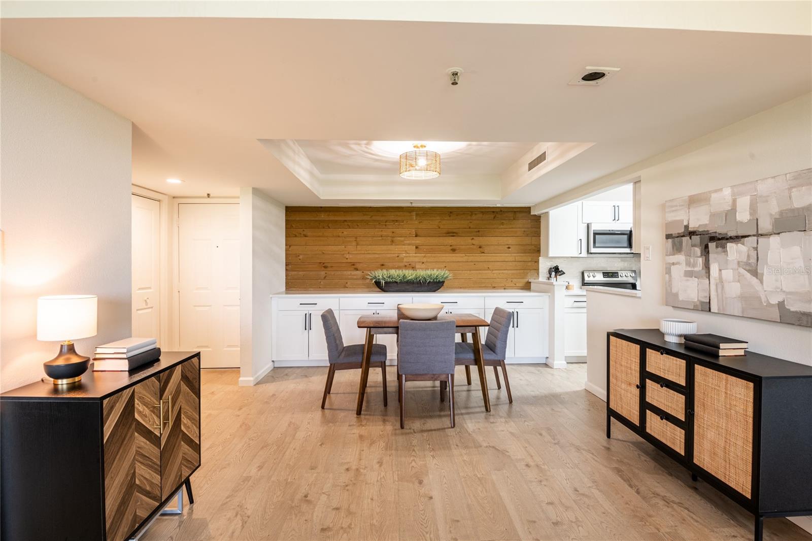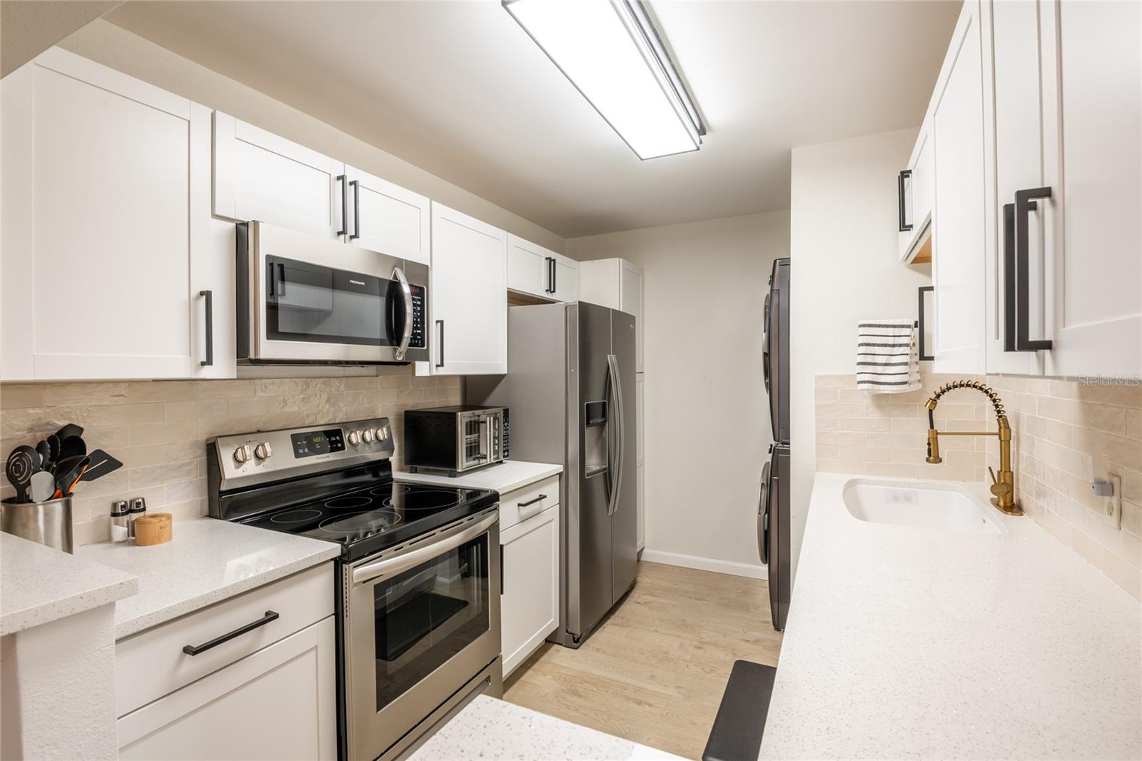 Welcome home to this move-in ready 2-bedroom, 2-bath condo located in the heart of South Tampa. This beautifully renovated unit is full of updates including, new AC, new appliances, new tankless hot water heater, water filtration system, closet system, new glass shower door in primary bath, new screened in balcony and light fixture, fresh paint and new Ethernet throughout home; all you have to do is unpack! The beautiful wood-look laminate floors run throughout, the kitchen gleams with quartz counter tops, the addition of the built-in console in dining area adds ample storage. Both bathrooms are finished with today's on-trend design. There is an extra owner's storage closet on the same floor. Parkland A condos are conveniently located close to shops and restaurants, medical centers, Hyde Park Village and less than a mile to Trader Joes. Relax on your balcony with beautiful views of Tampa. Condo amenities include a pool, outdoor grill area, fitness center, and library. Enjoy security with a 24-hour guard gate. HOA dues include cable, internet, pest control, water, sewer and trash. Come make this great condo your home.