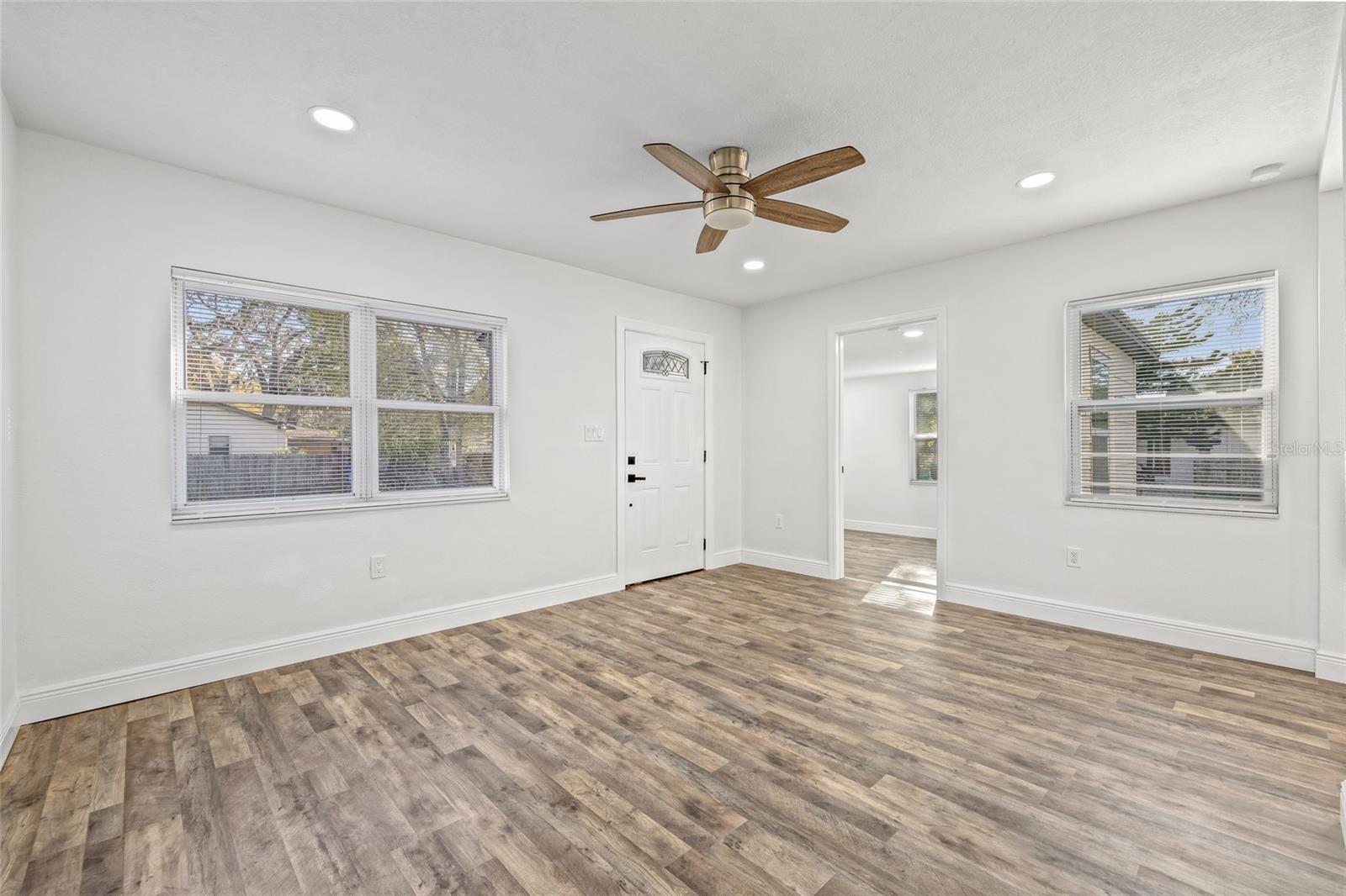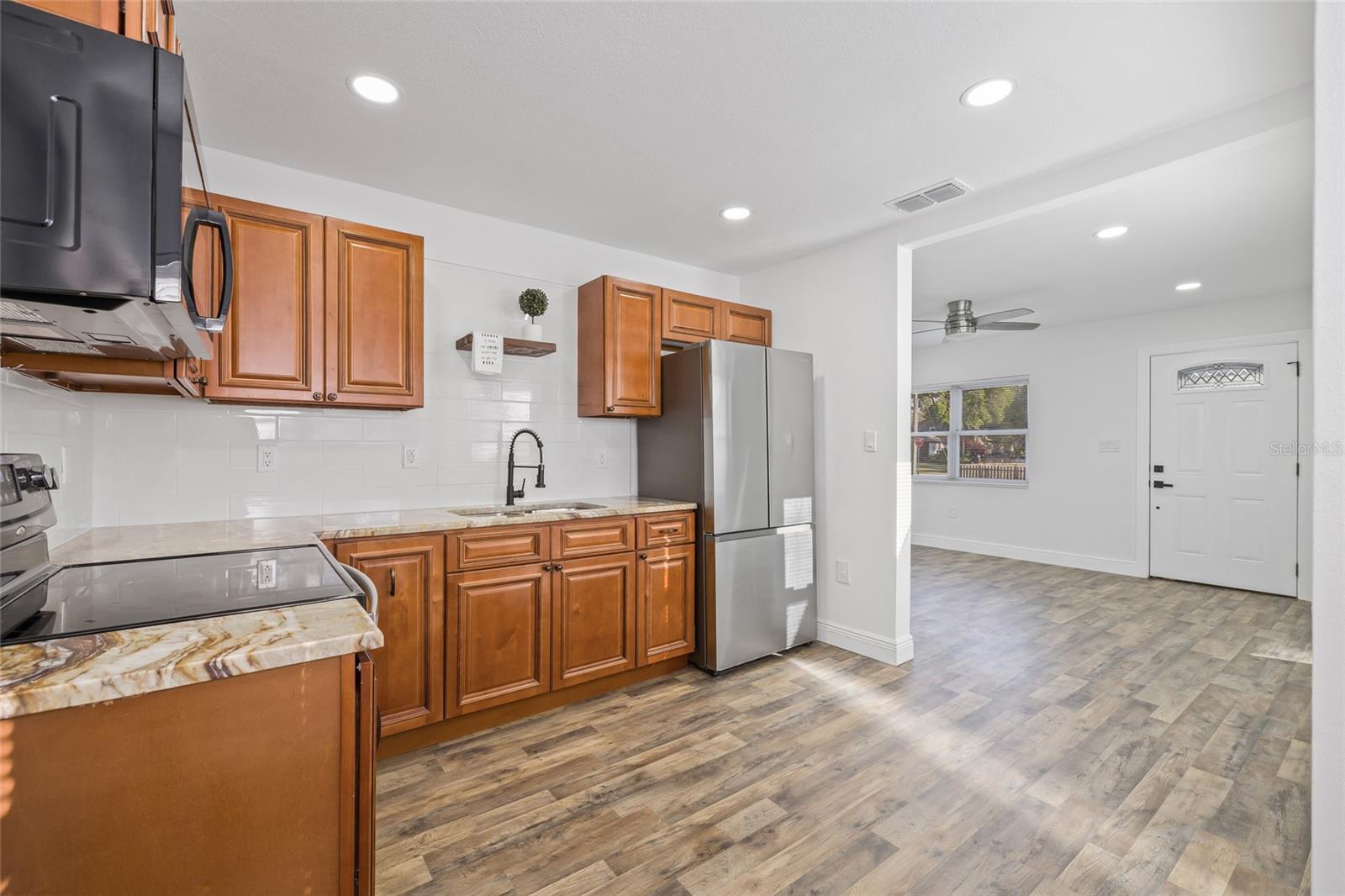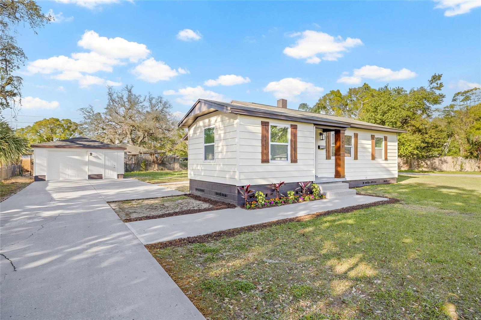 This beautifully renovated 3-bedroom, 1-bathroom mid-century home in the sought-after Lowry Park Zoo area blends modern updates with classic charm. Featuring brand new laminate flooring, a sleek kitchen, and stylish bathroom, the home offers a spacious open-concept layout that seamlessly connects the living, dining, and kitchen areas. The new garage adds convenience and additional storage space. Step outside to a large side deck with peaceful views and easy access to the expansive backyard—a blank canvas for your imagination. With new exterior wood accents, flower boxes, privacy screens. Room sizes are approximate, so schedule your showing today!