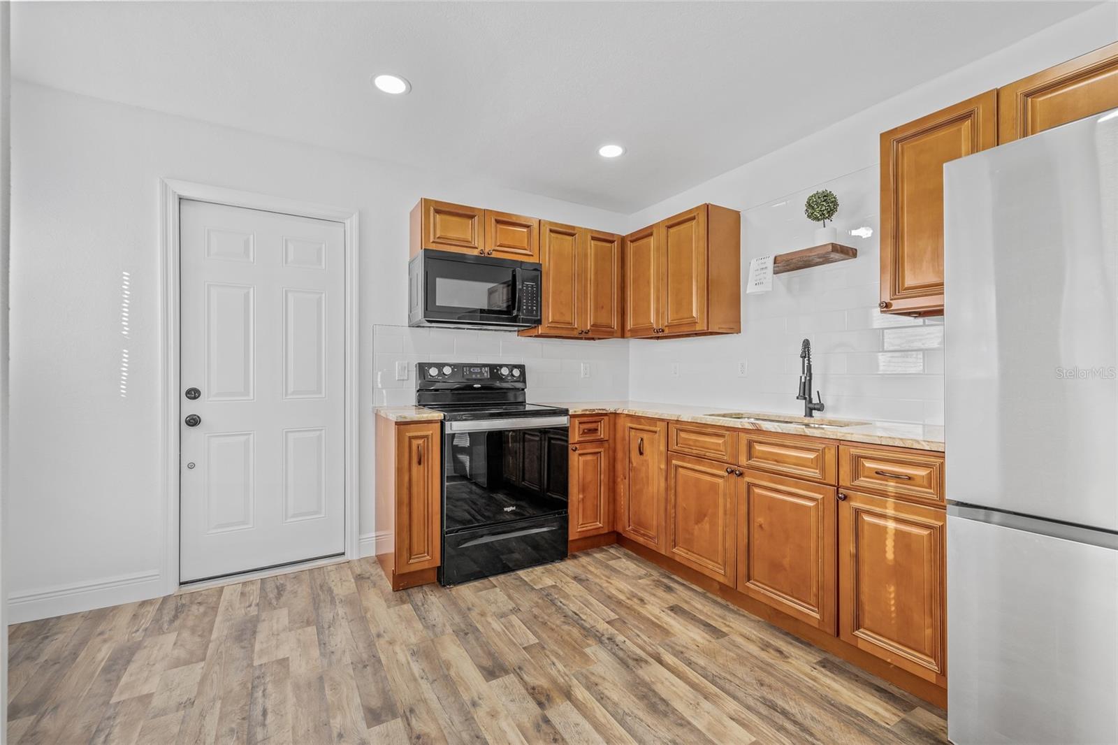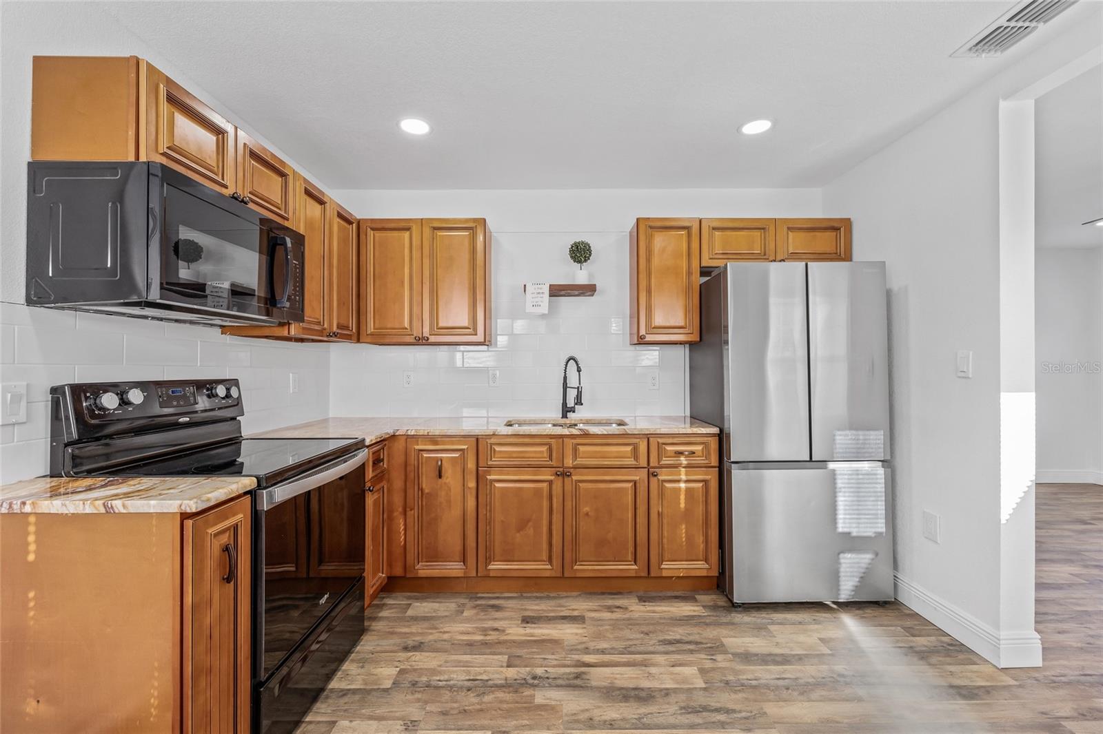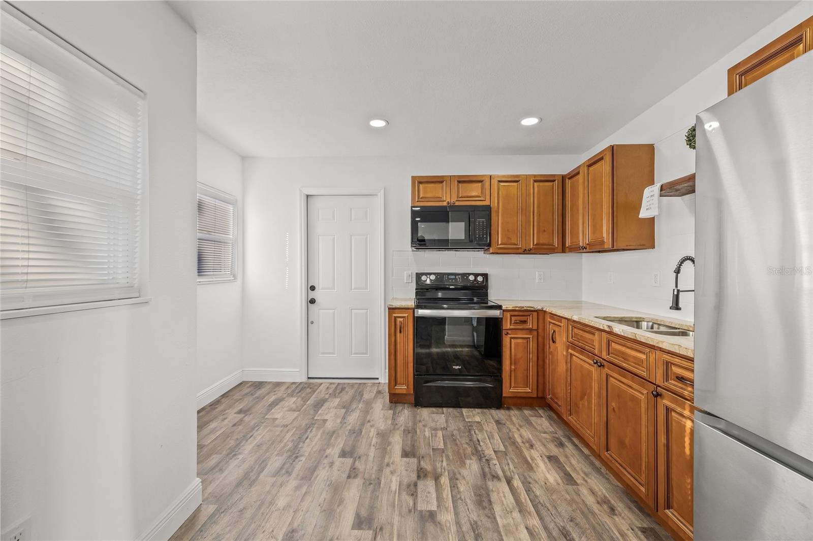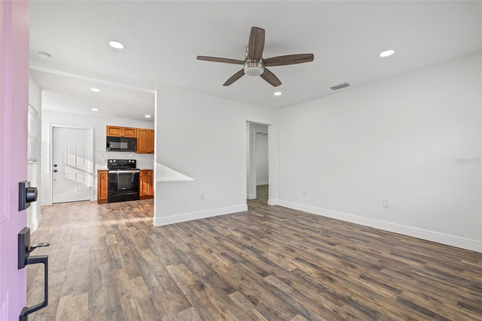 This beautifully renovated 3-bedroom, 1-bathroom mid-century home in the sought-after Lowry Park Zoo area blends modern updates with classic charm. Featuring brand new laminate flooring, a sleek kitchen, and stylish bathroom, the home offers a spacious open-concept layout that seamlessly connects the living, dining, and kitchen areas. The new garage adds convenience and additional storage space. Step outside to a large side deck with peaceful views and easy access to the expansive backyard—a blank canvas for your imagination. With new exterior wood accents, flower boxes, privacy screens. Room sizes are approximate, so schedule your showing today!