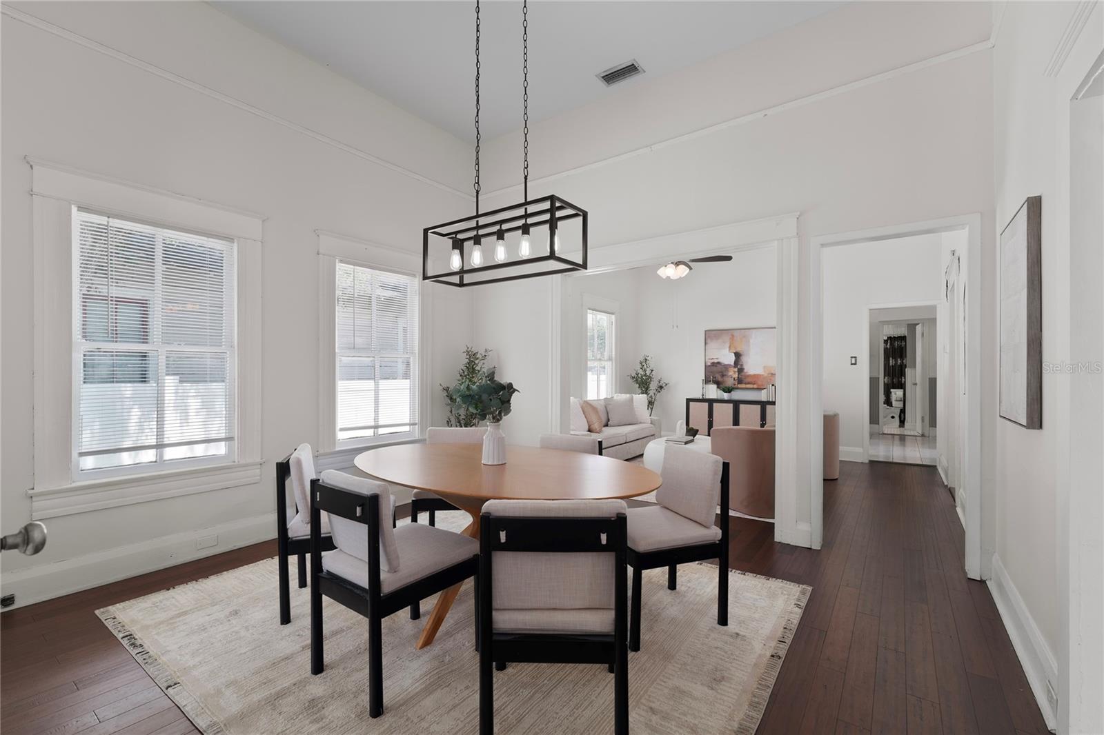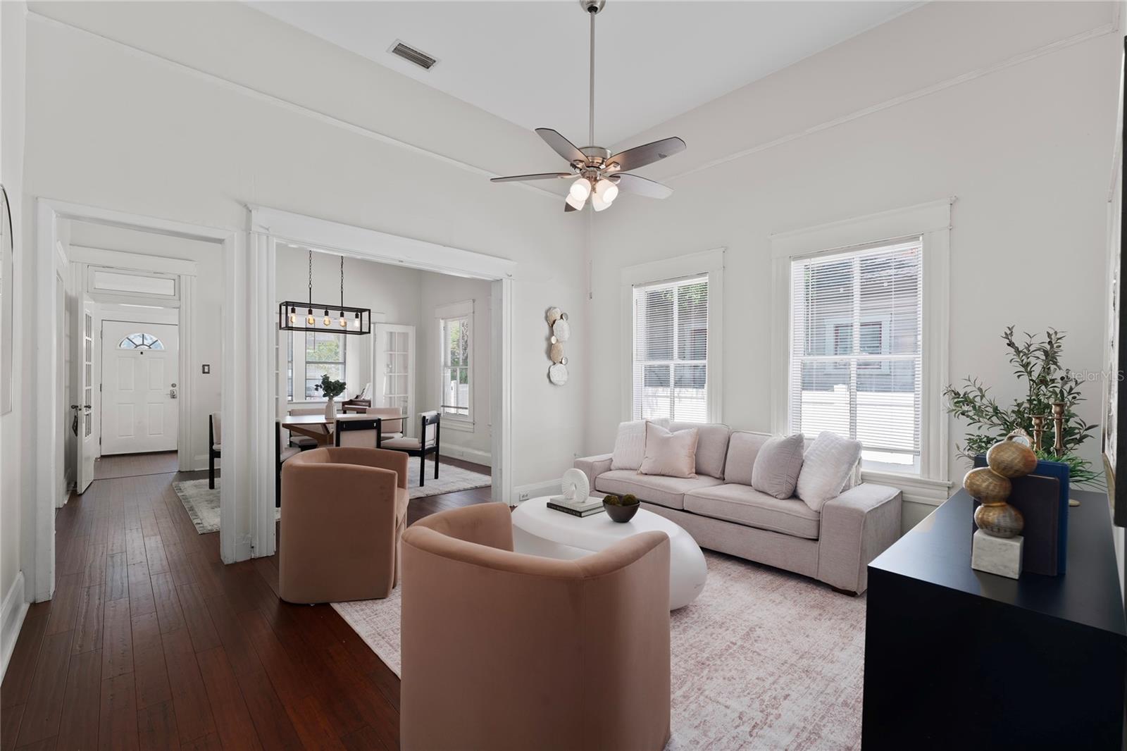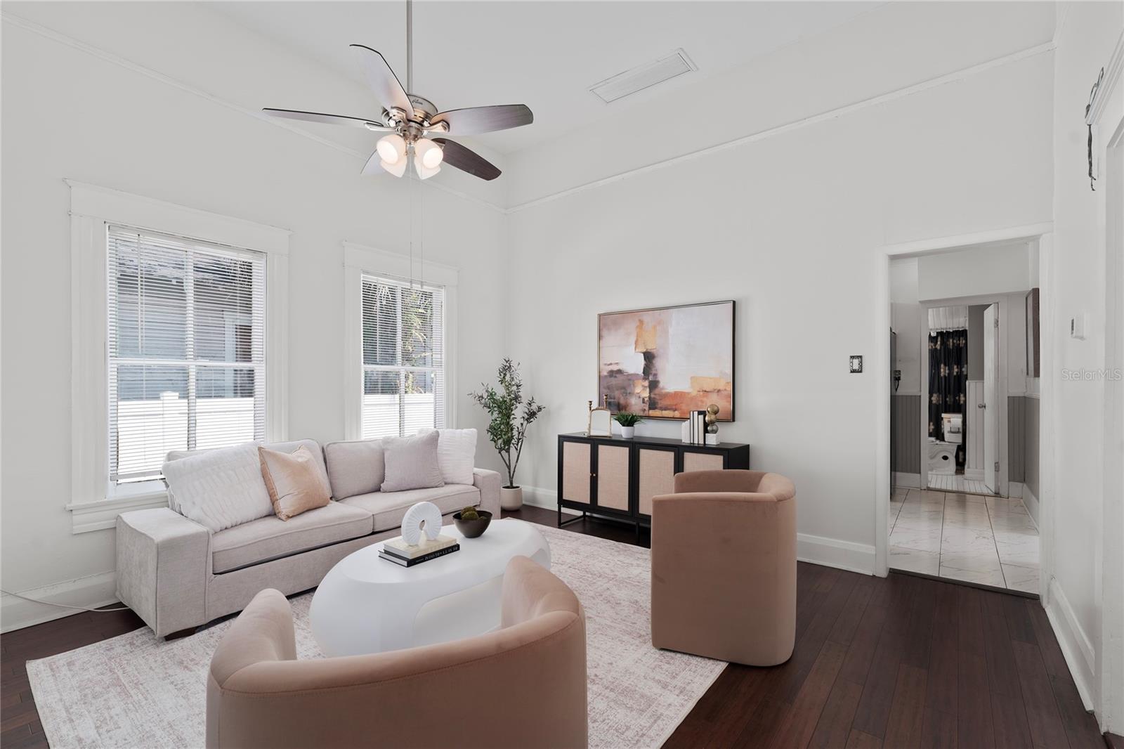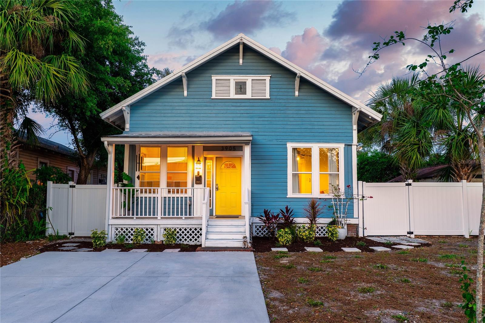 Welcome home to your vintage craftsman bungalow nestled in the heart of vibrant Tampa Heights. Brimming with historic character and thoughtful updates, this home captures the warmth of the past with the comfort and ease of modern living. From the moment you arrive, you’re greeted by curb appeal and convenience — a brand-new oversized driveway provides rare and valuable private off-street parking, perfect for entertaining guests or daily city living. Step inside and feel the charm unfold: soaring 12 foot ceilings, rich wood floors, and an inviting foyer flooded with natural light through generous windows. Classic rope-sash windows frame the main living space, inviting sunlight to dance across every room and showcase the architectural details that make this home truly special — from original picture rails to vintage millwork. The spacious kitchen blends form and function with mosaic tile backsplash, stainless steel appliances, and access to a dedicated laundry room for added ease. The main bathroom features a vintage clawfoot tub and shower. A set of French doors off the front bedroom opens into a versatile bonus room — perfect for a home office, gym, or serene reading nook. Out back, enjoy Florida evenings on the patio deck, surrounded by a fully fenced yard and a large storage shed to keep everything tidy. A durable metal roof adds peace of mind for years to come. Tucked away on a quiet street, yet just 1 mile from Armature Works and the Riverwalk, this home sits in one of Tampa’s most desirable locations — with quick access to Channelside, Water Street, Ybor City, Amalie Arena, Raymond James Stadium, Midtown, and an endless array of top-rated dining, shopping, and entertainment. Major highways are just minutes away, making commuting a breeze.
