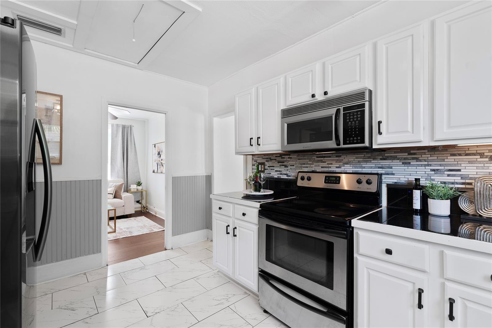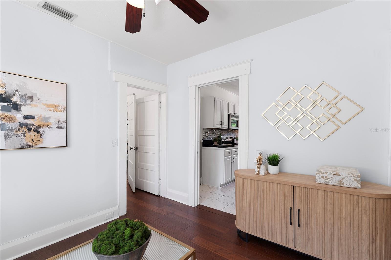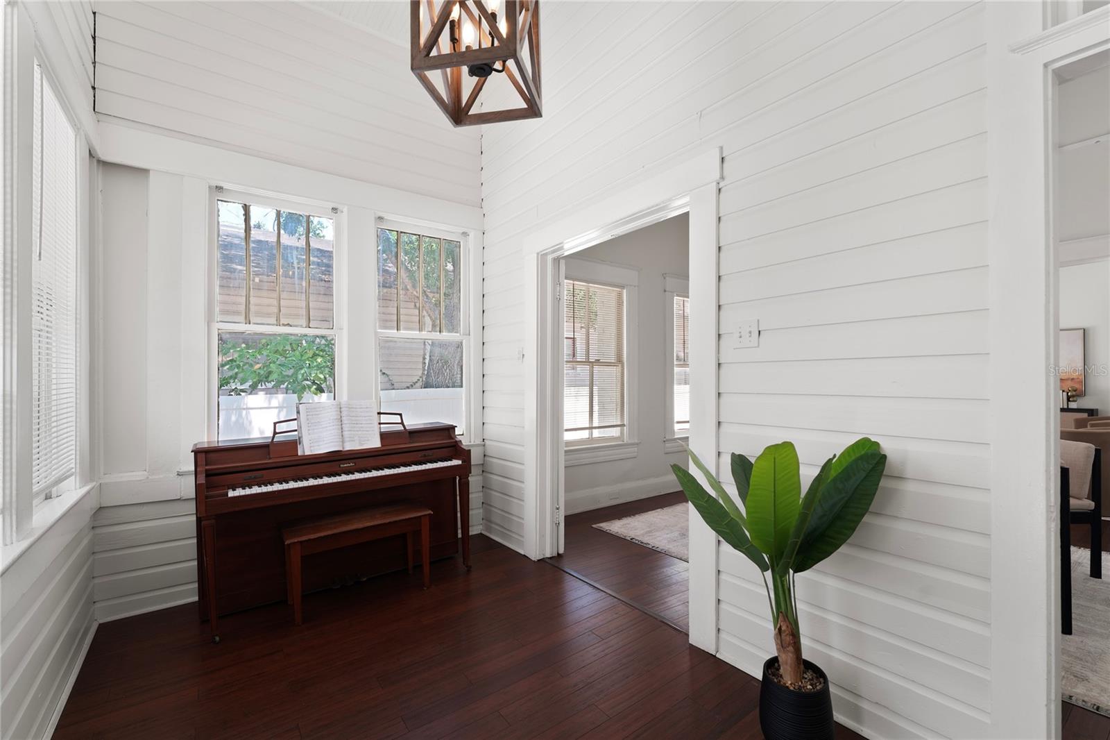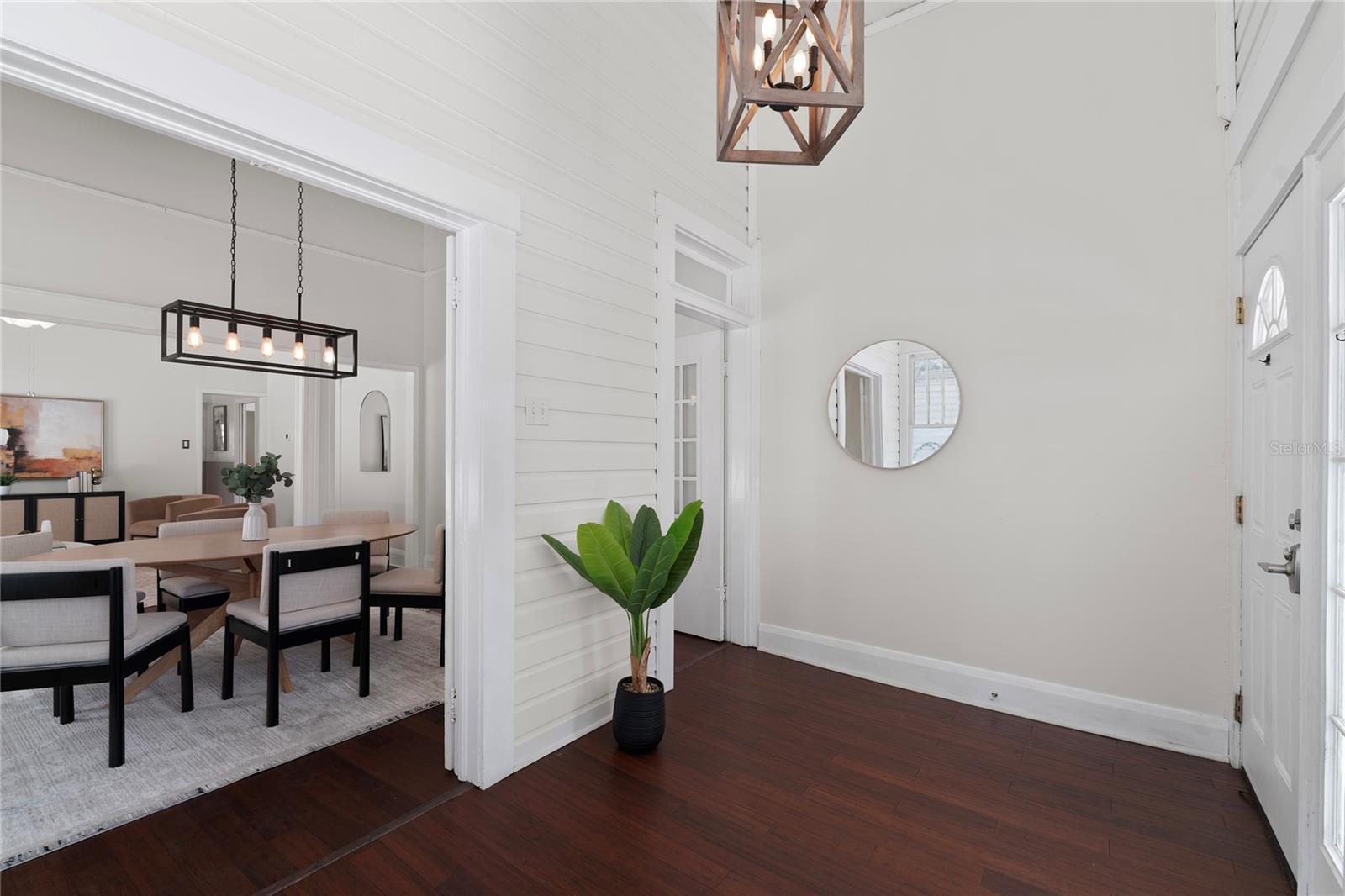 Welcome home to your vintage craftsman bungalow nestled in the heart of vibrant Tampa Heights. Brimming with historic character and thoughtful updates, this home captures the warmth of the past with the comfort and ease of modern living. From the moment you arrive, you’re greeted by curb appeal and convenience — a brand-new oversized driveway provides rare and valuable private off-street parking, perfect for entertaining guests or daily city living. Step inside and feel the charm unfold: soaring 12 foot ceilings, rich wood floors, and an inviting foyer flooded with natural light through generous windows. Classic rope-sash windows frame the main living space, inviting sunlight to dance across every room and showcase the architectural details that make this home truly special — from original picture rails to vintage millwork. The spacious kitchen blends form and function with mosaic tile backsplash, stainless steel appliances, and access to a dedicated laundry room for added ease. The main bathroom features a vintage clawfoot tub and shower. A set of French doors off the front bedroom opens into a versatile bonus room — perfect for a home office, gym, or serene reading nook. Out back, enjoy Florida evenings on the patio deck, surrounded by a fully fenced yard and a large storage shed to keep everything tidy. A durable metal roof adds peace of mind for years to come. Tucked away on a quiet street, yet just 1 mile from Armature Works and the Riverwalk, this home sits in one of Tampa’s most desirable locations — with quick access to Channelside, Water Street, Ybor City, Amalie Arena, Raymond James Stadium, Midtown, and an endless array of top-rated dining, shopping, and entertainment. Major highways are just minutes away, making commuting a breeze.