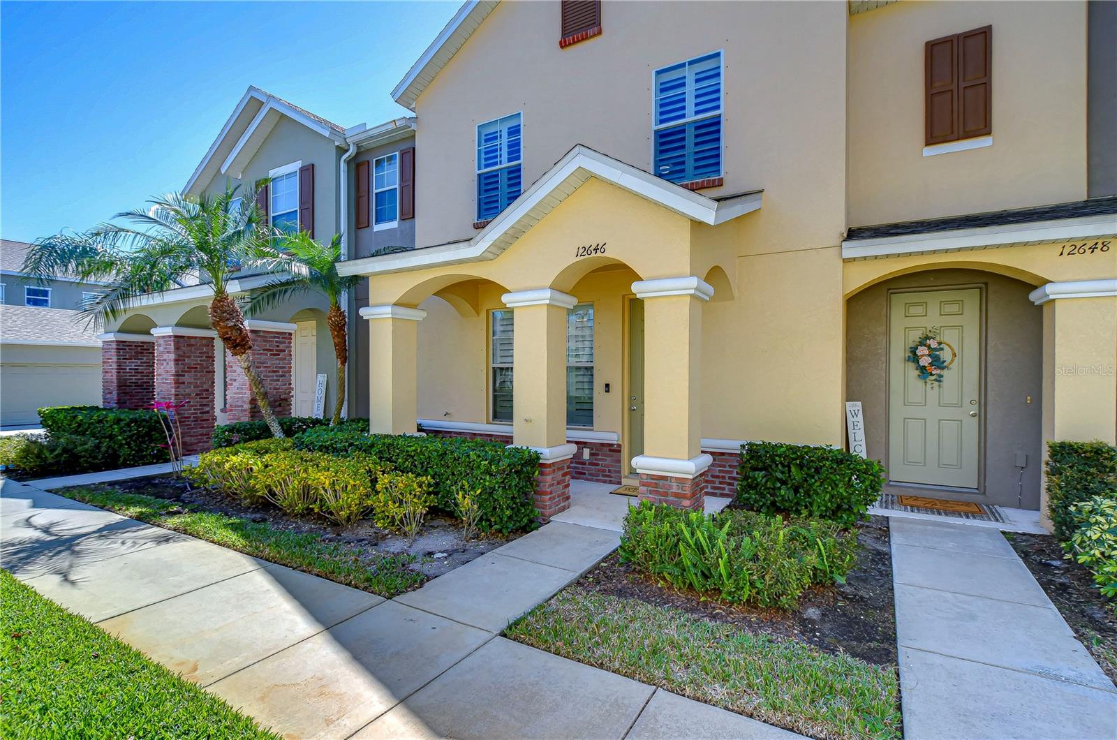 Picture-Perfect Townhome in Hampton Lakes! Wow! This stunning, move-in-ready townhome in the sought-after Hampton Lakes community is waiting for you! Featuring a spacious kitchen with a prep island, solid surface countertops, wood cabinetry, and a convenient pass-through to the living room. The oversized kitchen also includes a sunny breakfast nook with access to a private courtyard—perfect for grilling and family gatherings! The open-concept living room provides ample space, plus a dedicated dining area. The powder bath downstairs is ideal for guests. Upstairs, you’ll find three bedrooms, two full bathrooms, and a convenient laundry closet. The primary suite boasts a large walk-in closet, dual sink and a newly updated quartz vanity. Recent upgrades include: NEW A/C unit, NEW hot water heater, NEW Primary bath vanity with quartz countertop, NEW Washer, Freshly serviced water softener. Hampton Lakes is a fantastic community with a pool, A-rated schools, and a prime location—just a short walk to shopping and dining, and a quick drive to Tampa International Airport and award-winning beaches. Don’t miss this one—it will go fast!