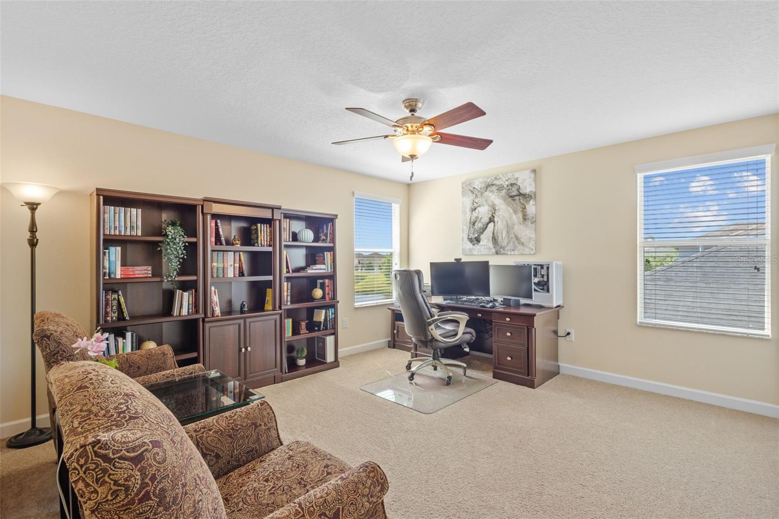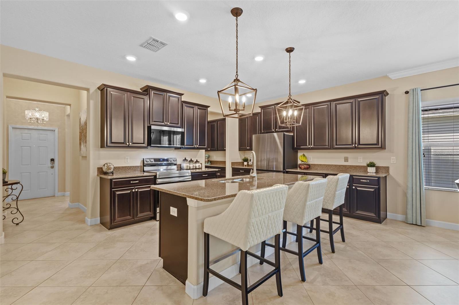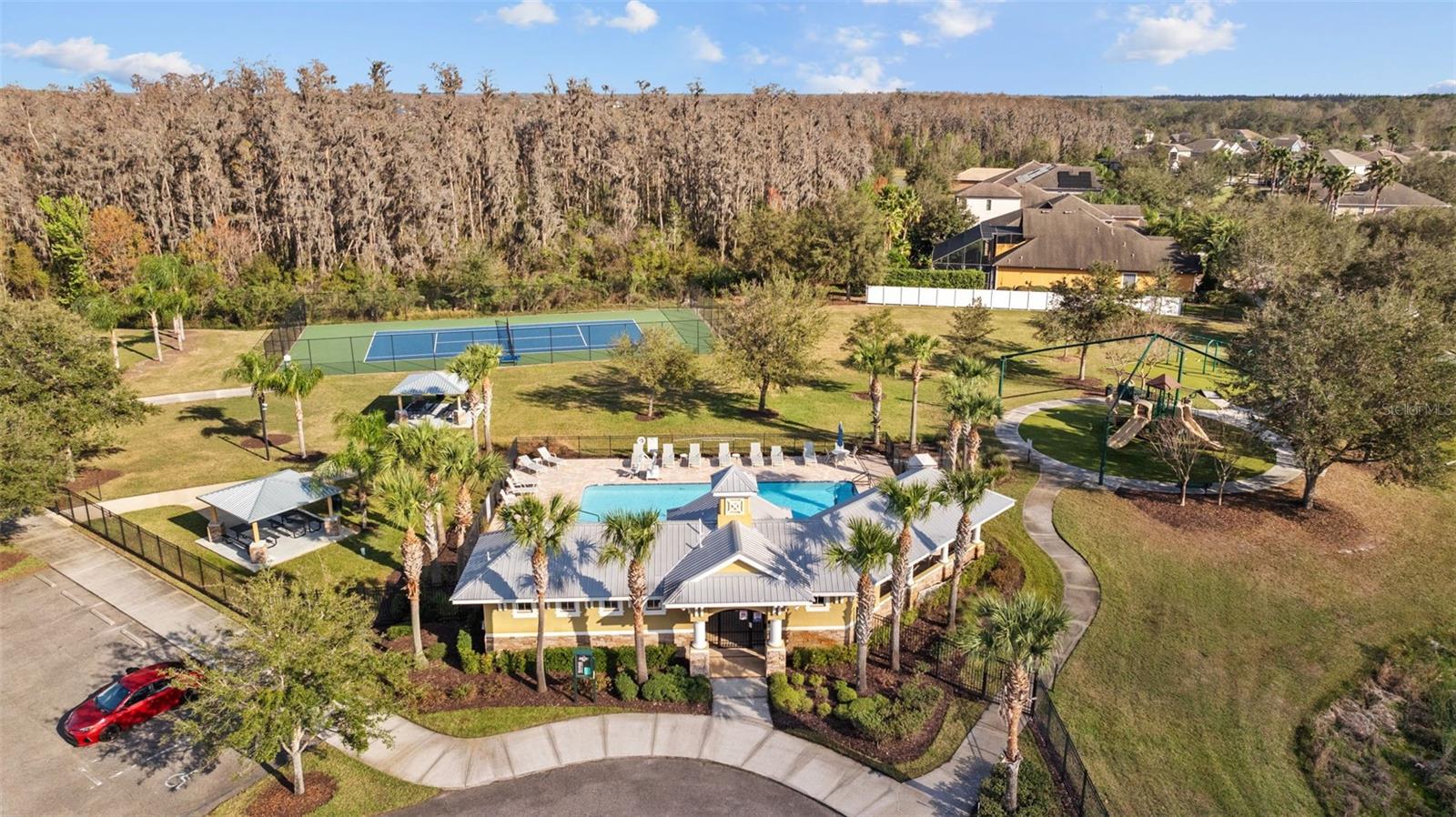 Experience Serenity & Style at Heron Preserve of K-Bar Ranch! NEWLY PRICED for EXCEPTIONAL VALUE! Discover 19309 Prairie Tree Place, a stunning 6-bedroom, 3.5-bathroom home with a 3-car tandem garage, perfectly situated on a tranquil cul-de-sac in the gated community of Heron Preserve at K-Bar Ranch. This home offers the ideal blend of comfort, expansive living, and peaceful natural beauty, making it perfect for both everyday life and special gatherings. Curb Appeal Meets Modern Comfort - From the moment you arrive, you'll be captivated by the home's impressive curb appeal, enhanced by fresh exterior paint (2022) and a BRAND NEW ROOF AND GUTTERS (2025). Step inside to a light-filled interior, where crown molding and tasteful finishes create an inviting atmosphere. Enjoy serene pond and conservation views from nearly every room, bringing a sense of calm to your daily life. Chef's Dream Kitchen & Seamless Entertaining - The heart of this home is truly designed for entertaining. The formal dining room, complete with a convenient BUTLER'S PANTRY AND WALK-IN PANTRY, flows effortlessly into a spacious, open-concept kitchen. Prepare culinary delights with ease on granite countertops, surrounded by rich espresso cabinetry, and featuring BRAND-NEW SAMSUNG BESPOKE STAINLESS STEEL APPLIANCES (2024). A large island and a bright breakfast area complete this inviting space, perfect for starting your day or hosting memorable meals. Your Private Oasis & Flexible Living Spaces - The open-concept living room extends naturally to a screened-in covered patio, offering a tranquil outdoor retreat with BREATHTAKING POND AND CONSERVATION VIEWS. It’s the perfect spot to unwind and enjoy the Florida sunshine. The main floor boasts a private primary suite, a true sanctuary featuring a spa-inspired bathroom with dual vanities, a luxurious garden tub, a walk-in shower, and an oversized closet with updated steel beam shelving. For added convenience, a guest half bath and an OPTIONAL LAUNDRY HOOKUP are also LOCATED ON FIRST LEVEL. Upstairs, a VERSATILE LOFT provides endless possibilities for a recreation room, media center, or home office. Five generously sized bedrooms, all with walk-in closets (three with upgraded shelving), and two full bathrooms with granite countertops, double vanities, and private wet rooms, provide ample space for everyone. The dedicated second-floor laundry room comes complete with a BRAND-NEW SAMSUNG WASHER AND DRYER (2024). Peace of Mind & Exceptional Community Amenities - This home comes with peace of mind, including a SimpliSafe security system with new smoke detectors (2025) and a transferable home warranty through August 2025. Located in a highly-rated school district (buyer to verify), residents also enjoy exclusive access to a private dog park and AstroTurf playground. Beyond that, you'll have full access to all of K-Bar Ranch’s shared amenities, including a resort-style pool, tennis and basketball courts, grilling areas, and shaded playgrounds. Prime Location - Conveniently located near Wiregrass Mall, Tampa Premium Outlets, and a wide array of dining, shopping, and commuter routes, 19309 Prairie Tree Place offers the best of both worlds: a quiet, serene retreat with easy access to all the excitement of nearby parks, restaurants, and shopping. This isn't just a house; it's the perfect setting for your next chapter. Schedule your showing today and discover your new home!