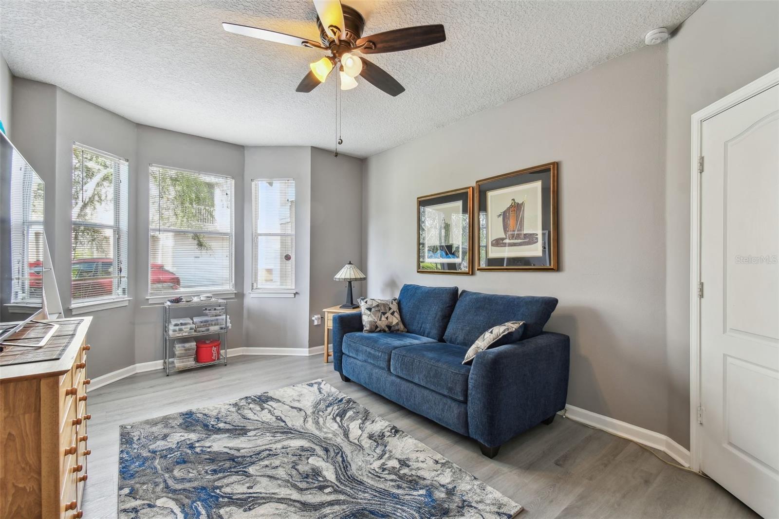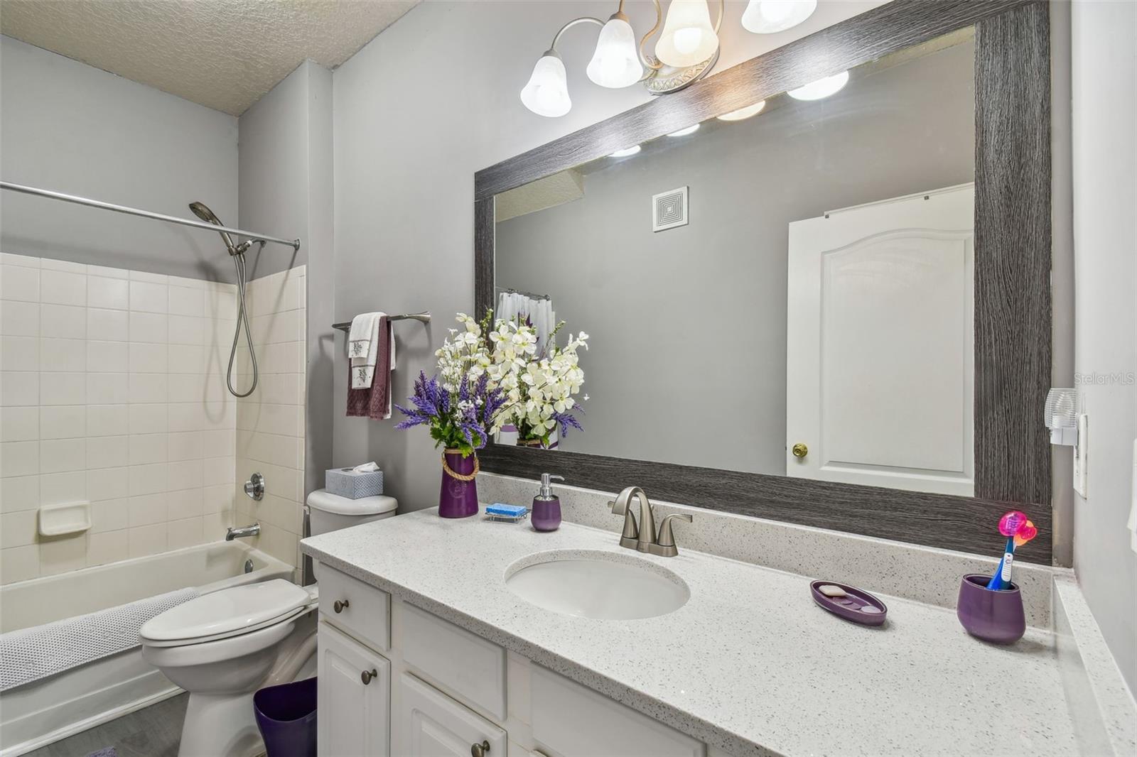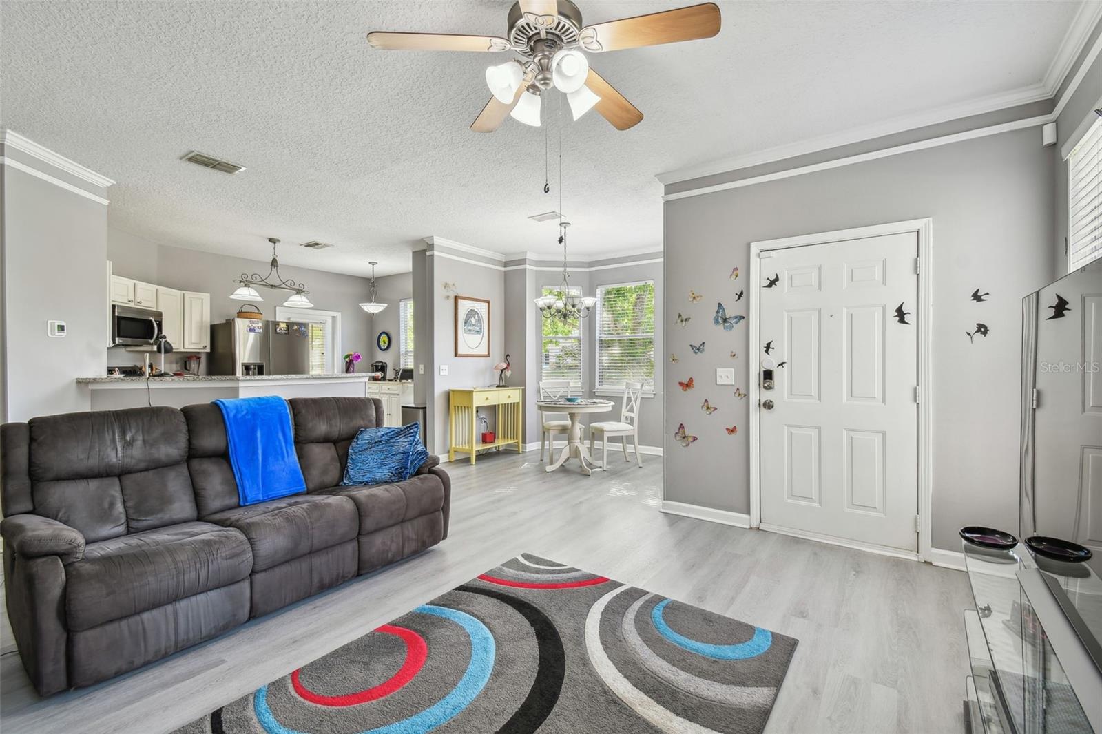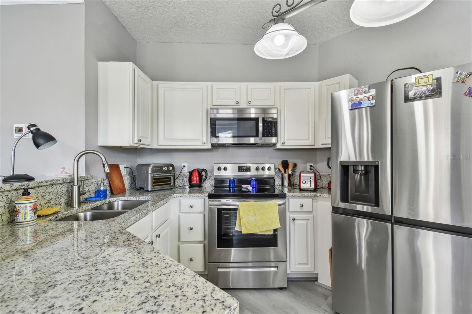 Be ready to drive home into your own tandum two car garage and step into style and comfort with this beautifully updated 3 bedroom, 2 bathroom first floor condo located in the highly sought after gated community of The Villas Condo. Featuring new floors, new interior paint with crown molding throughout the open floor plan is perfect for entertaining or relaxing, this home offers modern elegance at every turn. The kitchen is a showstopper with brand new granite countertops, sleek stainless steel appliances, and white cabinets that add a bright, fresh feel. The space is well thoughout with its utilization of a cozy cove transformed into an office space along with the use of the closet for a laundry room. Head outside and sit in your lanai to enjoy the weather plus view of the beautiful pond and fountain. Or walk through the resort style community to enjoy the refreshing pool, club house, renovated fitness room, and playground. This is an excellent location with quick access to I 4 and I -75, nature parks, premium shopping, health and medical facitlties and USF! Don't wait! This unit will not last! Schedule your private showing today and see why The Villas is the place to be!