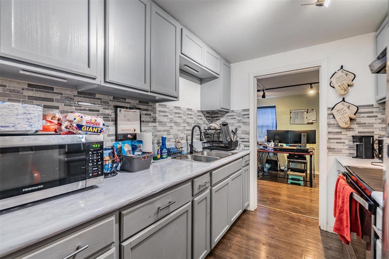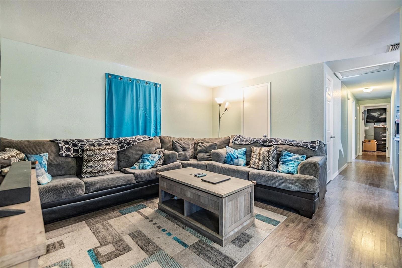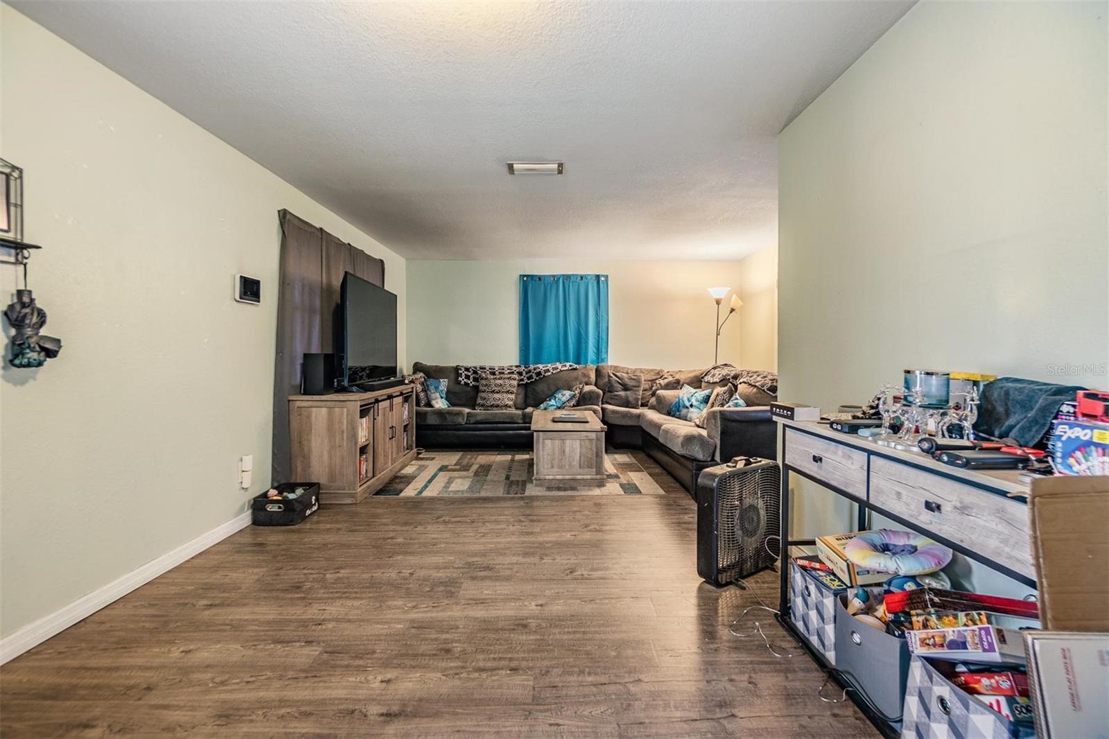 Great investor opportunity with this 3 bedroom, 2 bath home in Georgia Terrace featuring a flexible floor plan to meet your unique needs. As you enter the spacious living room from the covered front porch, you’ll notice the luxury vinyl plank flooring that continues throughout the house. To the right, is a large dining area that can accommodate a large dining set. The area connects to the galley kitchen with neutral painted cabinetry and stainless steel appliances. As you continue to the back of the house, you’ll pass through a bonus room that can easily serve as a home office, extra bedroom or additional storage. The bonus room leads to the large inside utility room with washer and dryer hookups and access to the back yard. The hallway from the living room leads to the primary bedroom with ensuite bath and walk in closet. The second full bath serves the additional two bedrooms. There is plenty of opportunity to add your personal touches to the fully fenced back yard area. This home is conveniently located within minutes of USF, Busch Gardens/Adventure Island, Seminole Hard Rock Casino, downtown Tampa, and Tampa International Airport. Check with your preferred lender to inquire about available down payment assistance programs available for this property.