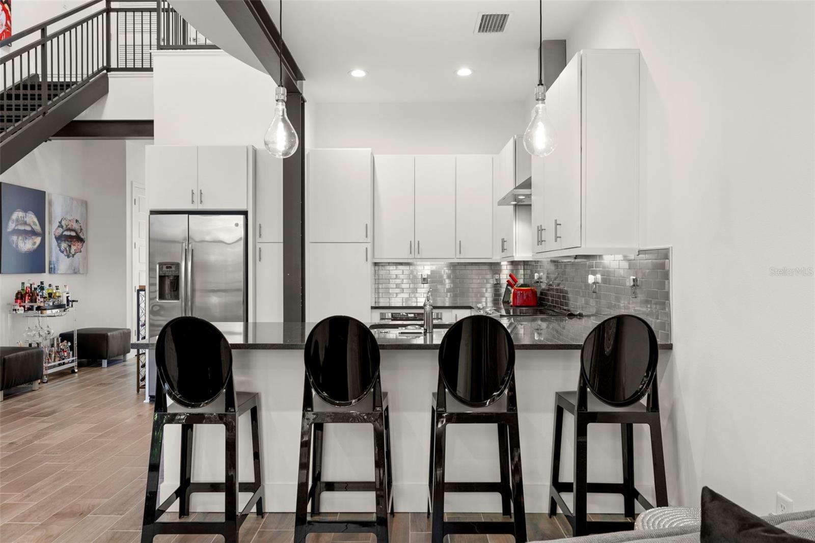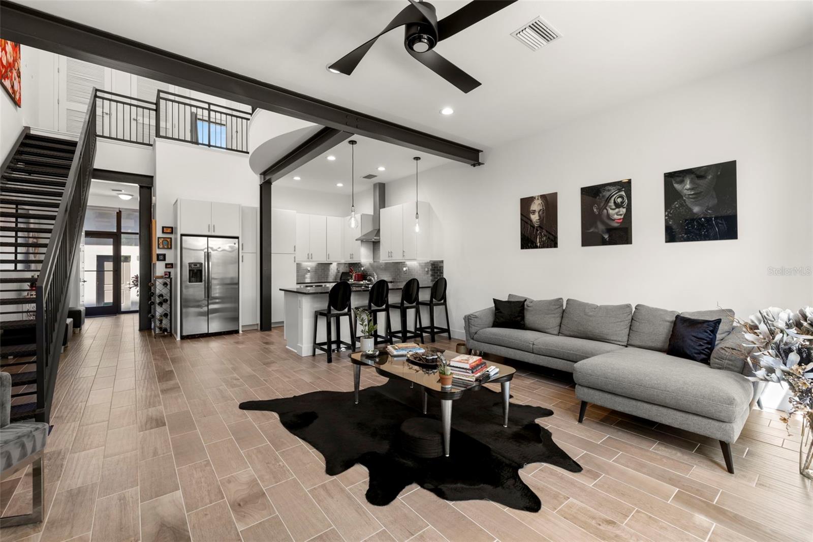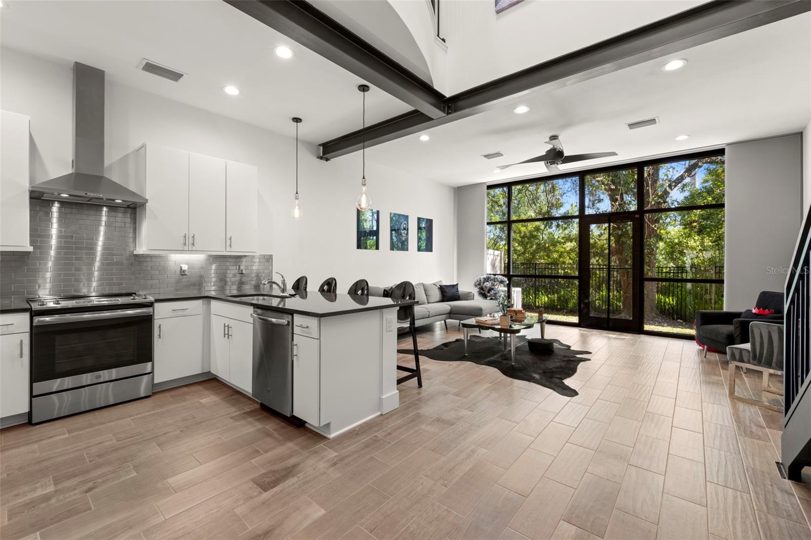 LAST CHANCE BEFORE IT"S TAKEN OFF THE MARKET FOR THE HOLIDAYS!! **Up to $5,000 towards closing costs with seller's preferred lender! ** INVESTORS - Previous units rented for ~$4,000/mo and it can be sold furnished & decorated! Welcome to this striking 3-bedroom, 3-bathroom ultra-modern loft nestled in a secure gated community, where architectural design meets effortless luxury. From the moment you step into this end-unit townhome, you're greeted by dramatic exposed steel beams, sleek tile flooring, and a statement chandelier that sets the tone for this one-of-a-kind space.The expansive floor-to-ceiling window in the living room floods the home with natural light, complemented by a skylight that brings the outdoors in. Each generously sized bedroom features its own en-suite bathroom for maximum comfort and privacy. Thanks to the 24-foot ceilings, on the second floor loft you will have open air views of the downstairs. Take the stunning spiral staircase to the third floor private rooftop terrace, perfect for entertaining or relaxing under the stars. One bedroom offers peaceful pond views, and with no backyard neighbors, you’ll appreciate the added tranquility. A brand new roof adds peace of mind, while the 1-car garage and additional carport space provide ample parking. With clean modern lines, industrial accents, and thoughtful design throughout, this loft is more than a home—it’s a lifestyle. Just 20 minutes to downtown Tampa, you’ll enjoy quick access to the city while retreating to your private modern sanctuary. Don’t miss this rare opportunity—schedule your private showing today! Seller is offering the option to purchase the majority of the furniture and artwork!