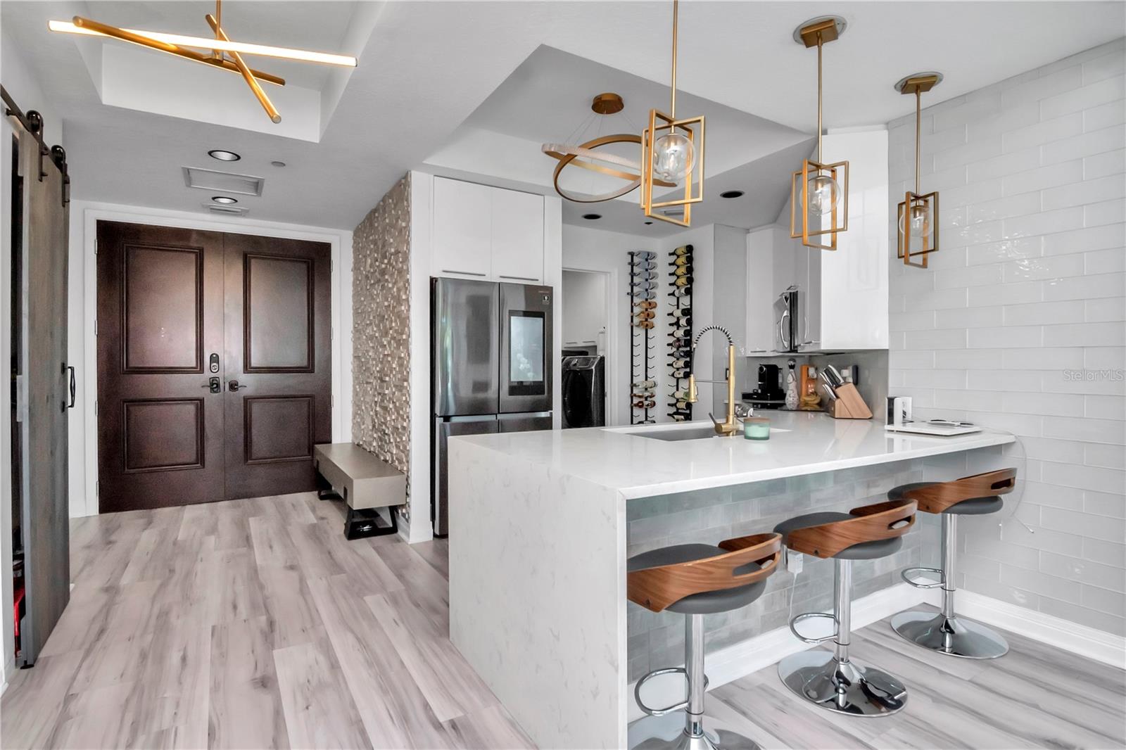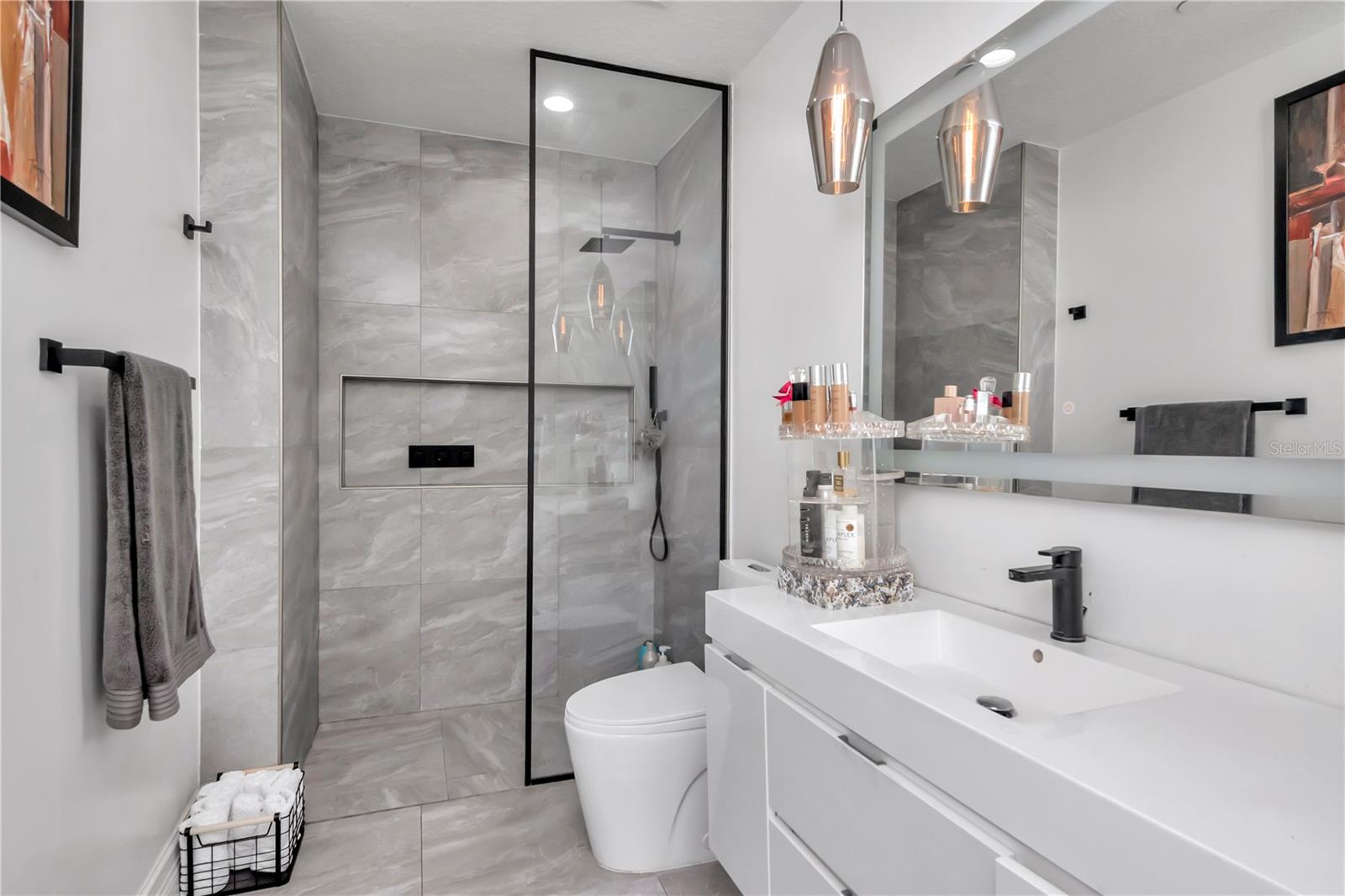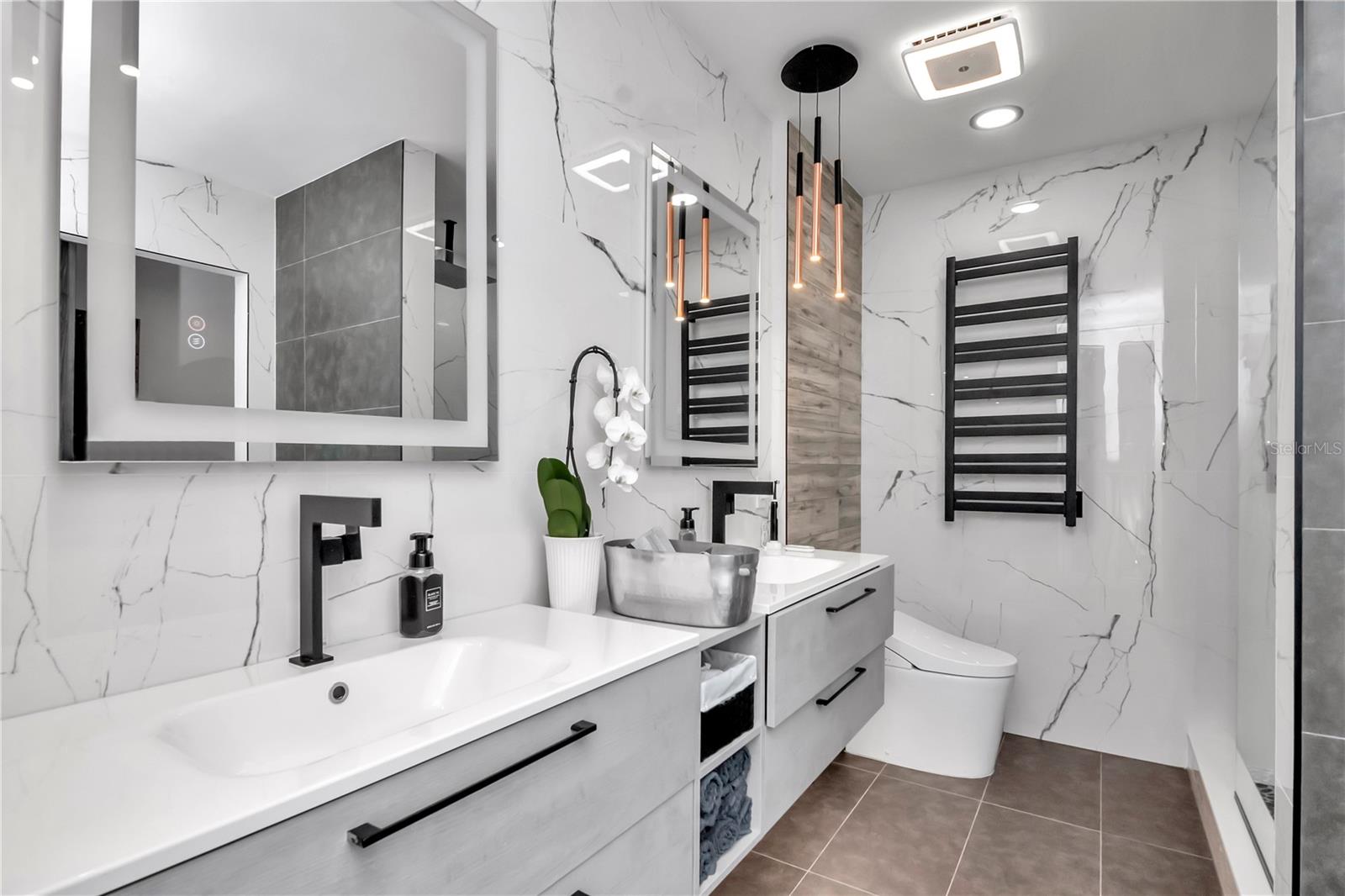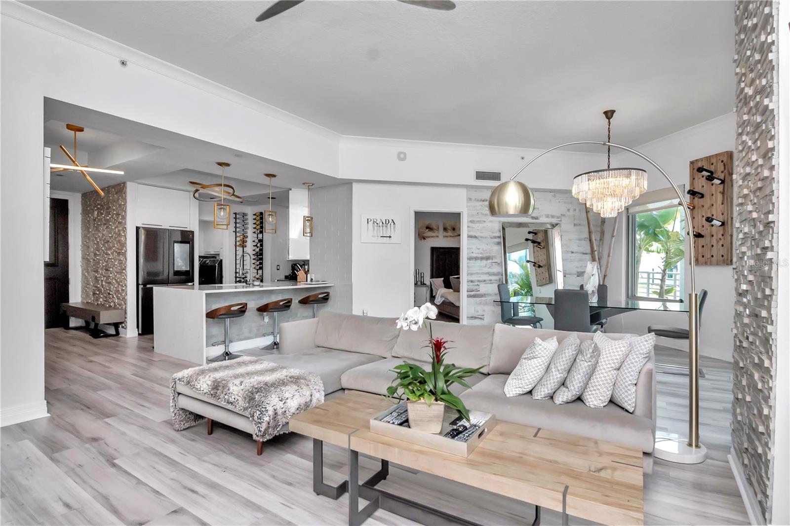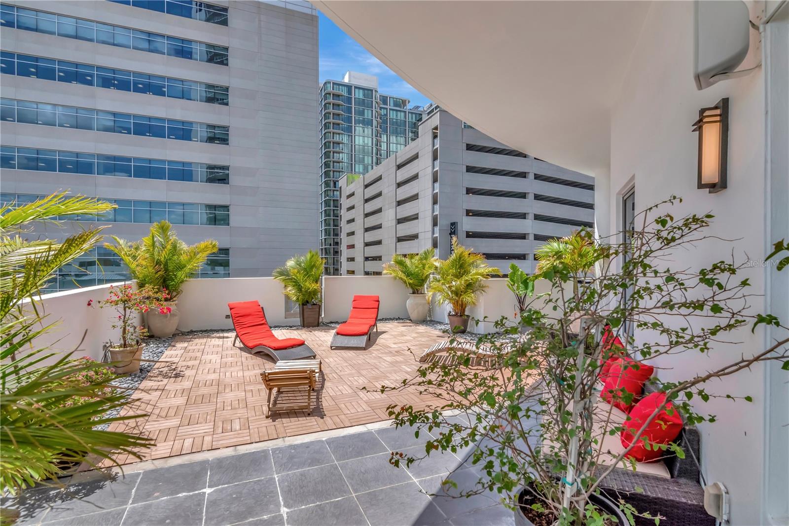 WELCOME HOME to the Towers of Channelside! Comfort and style intersect at this luxury condo on the 5th floor, where the panoramic views of the the City of Tampa Bay and Water Street are yours to enjoy each sunrise and sunset. Don't miss this opportunity to own one of few units with CITY VIEWS, and the only residence in the building that comes with its own PRIVATE PATIO. This residence also includes two secured parking spaces on the 3rd floor of the parking garage. This THREE-bedroom condo is completely renovated and move in ready. Interior features include two master suites, each with their own ensuite bathroom, and another completely remodeled full bath to accompany the guest bedroom. Both master suites include walk-in California Closets, and access to the wrap-around terrace. The wrap around terrace and private patio combine for a total of 1565 sqft. Other prime features include Electric Shades, porcelain tile throughout both the entire condo, jaw dropping finishes, and an exclusive private patio to entertain your guests. Turn the key to a high-end home with the most desired water and city skyline views that are yours to enjoy from the private patio. Take advantage of the opportunity to own in an up and coming neighborhood that will continue to boom right before your eyes! Enjoy the benefits of living in a building community, while relishing the privacy that accompanies a floor with few units. Come be a part of one of the most luxurious high-rise communities Tampa Bay has to offer while being just steps away from Amalia Arena, The Florida Aquarium, and the bustling 2.4 mile river walk !