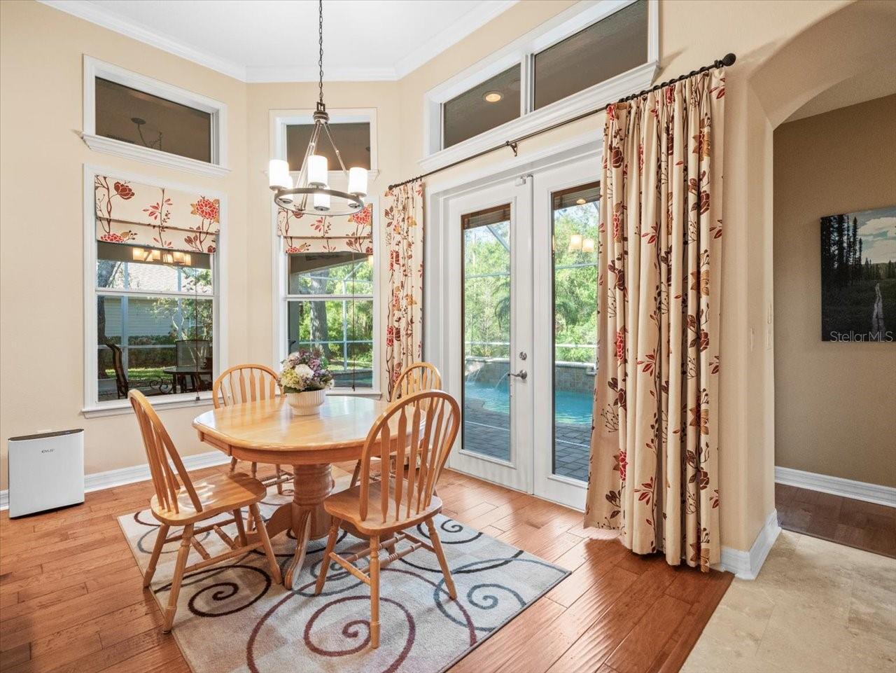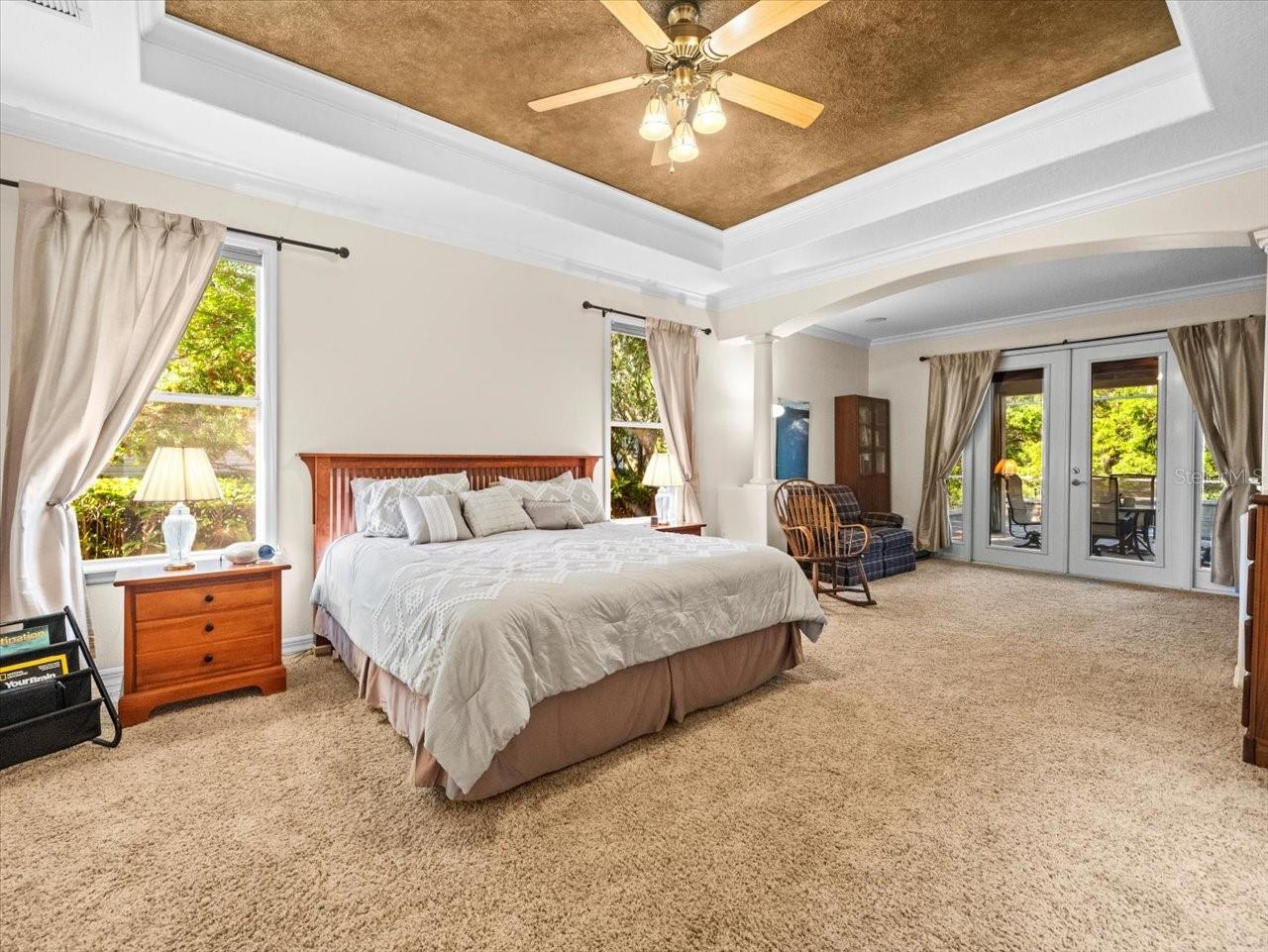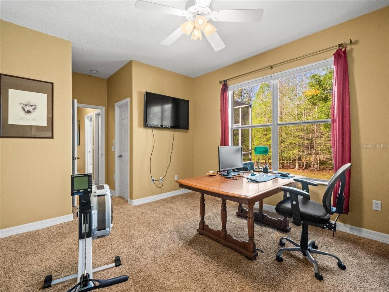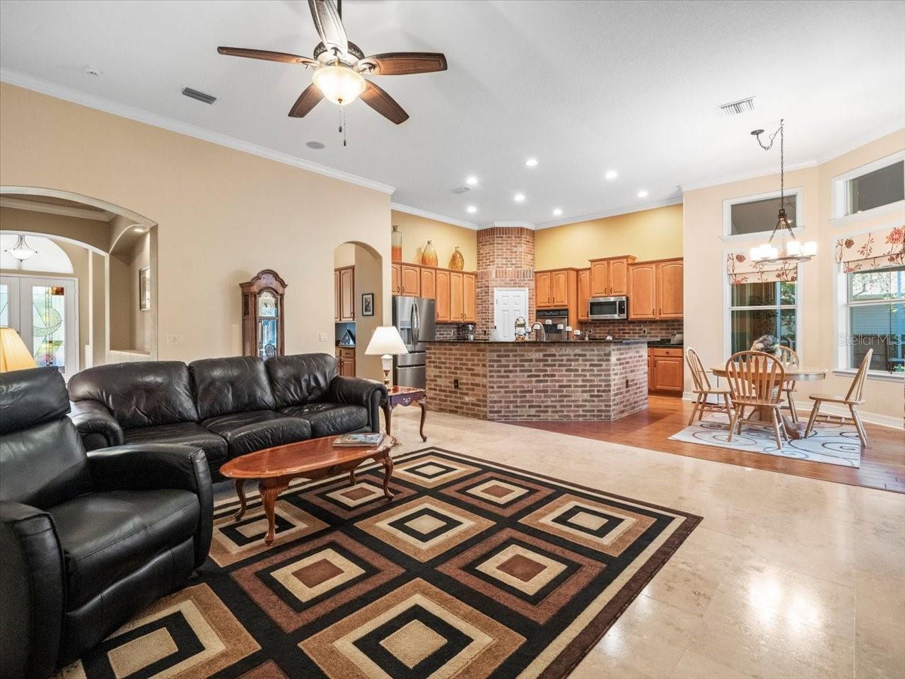 Welcome to your dream home! This exquisite 4-bedroom, 3-bathroom home with an additional office and a spacious 3-car garage is a perfect combination of elegance, functionality, and serene outdoor living. Nestled on a conservation lot, this property offers privacy and breathtaking views. It is also built up so flood insurance not required for this owner. As you approach, you’ll be captivated by the stunning stained-glass entry doors that set the tone for what is inside. Step inside to the welcoming foyer that opens to the formal dining room, complete with elegant tray ceilings and bathed in natural light—perfect for hosting memorable gatherings. Crown molding throughout the home adds a touch of sophistication to every room. The chef-inspired kitchen boasts an abundance of natural wood cabinets, a walk-in pantry, an oversized butler's pantry, a central island, and an adjoining dinette area. The open-concept design flows seamlessly into the family room, where French doors invite you to step outside to your private oasis. The primary suite is a luxurious retreat, showcasing tray ceilings, an attached sitting area, an expansive walk-in closet, and an oversized master bathroom with dual vanities, walk-in shower, and a soaking tub. The split floor plan ensures privacy for all. Two guest bedrooms share a well-appointed bathroom, while the third guest bedroom enjoys exclusive access to the pool bath as its private ensuite. Outdoors, you’ll find a screened-in pool with a tranquil water feature and a covered lanai—all overlooking the peaceful conservation area. Whether entertaining guests or enjoying quiet moments of relaxation, this outdoor space is sure to impress. This home combines modern amenities with timeless charm and thoughtful details throughout. Don’t miss your opportunity to own this exceptional property—schedule your private showing today!