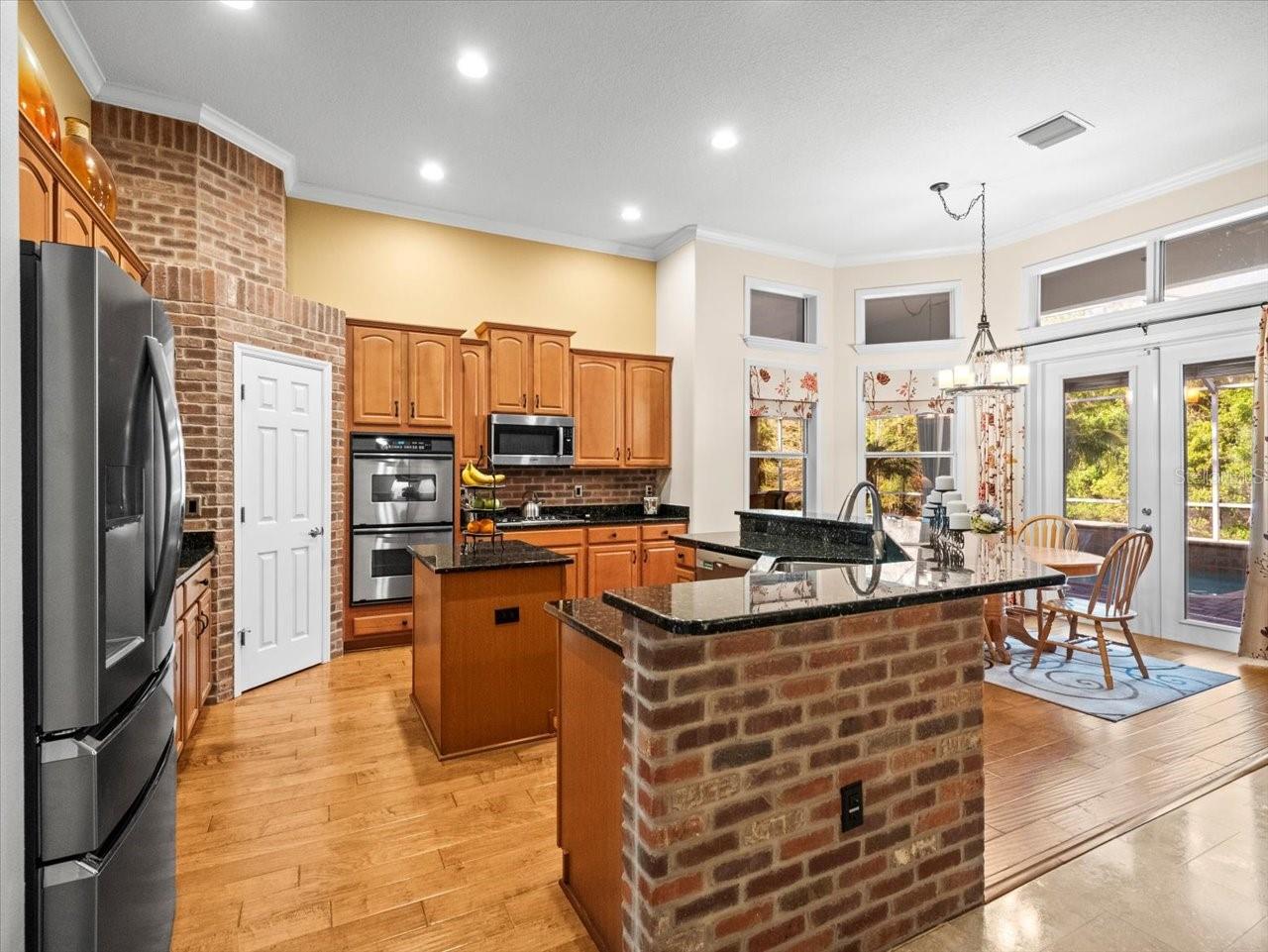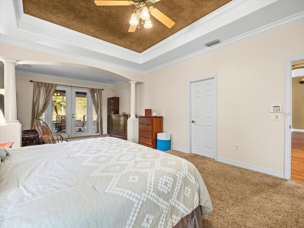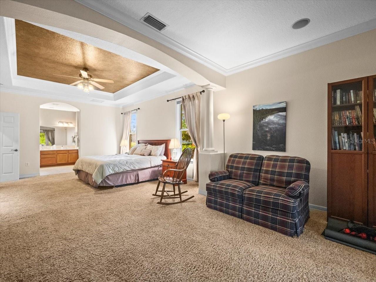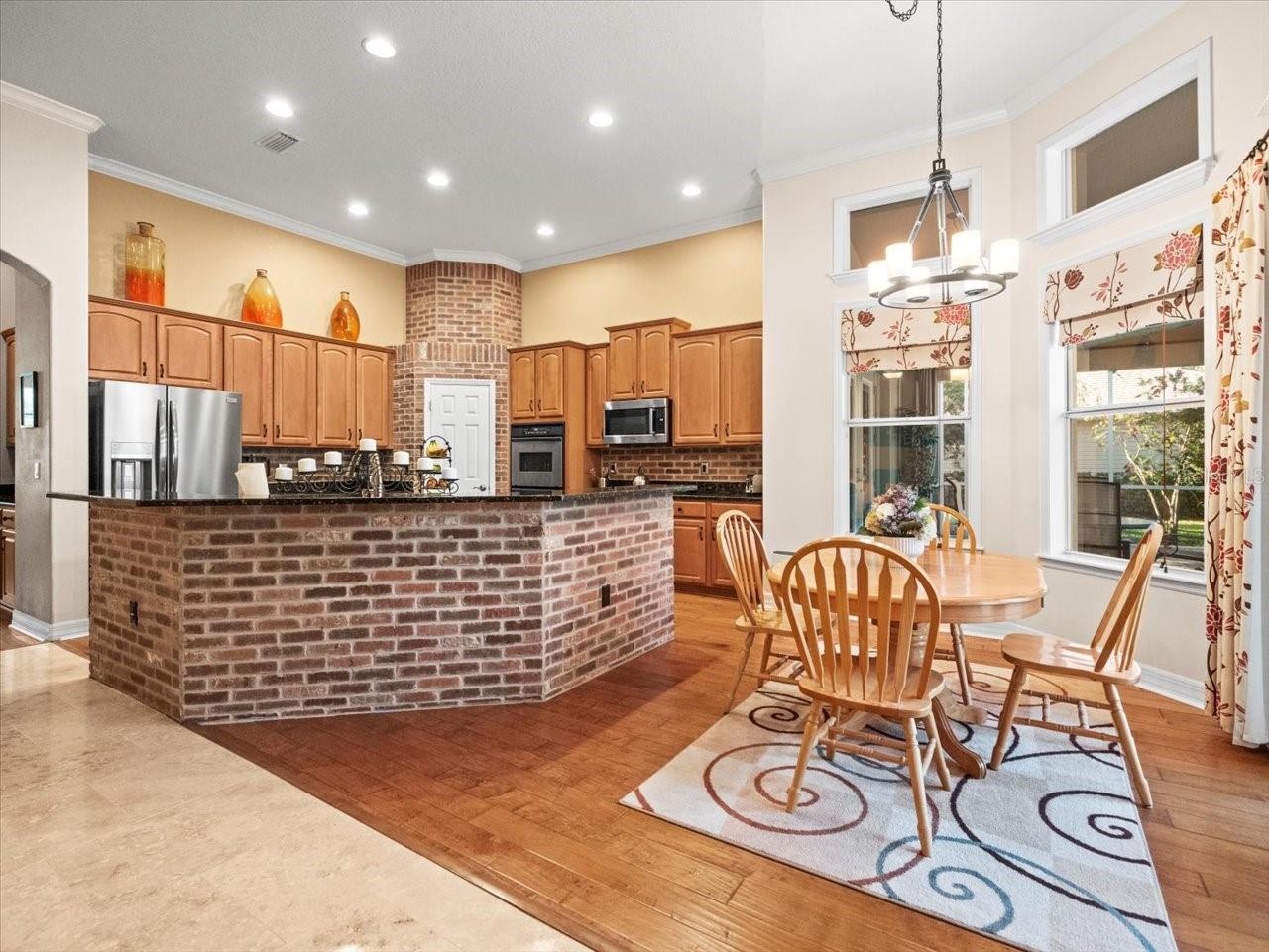 Welcome to your dream home! This exquisite 4-bedroom, 3-bathroom home with an additional office and a spacious 3-car garage is a perfect combination of elegance, functionality, and serene outdoor living. Nestled on a conservation lot, this property offers privacy and breathtaking views. It is also built up so flood insurance not required for this owner. As you approach, you’ll be captivated by the stunning stained-glass entry doors that set the tone for what is inside. Step inside to the welcoming foyer that opens to the formal dining room, complete with elegant tray ceilings and bathed in natural light—perfect for hosting memorable gatherings. Crown molding throughout the home adds a touch of sophistication to every room. The chef-inspired kitchen boasts an abundance of natural wood cabinets, a walk-in pantry, an oversized butler's pantry, a central island, and an adjoining dinette area. The open-concept design flows seamlessly into the family room, where French doors invite you to step outside to your private oasis. The primary suite is a luxurious retreat, showcasing tray ceilings, an attached sitting area, an expansive walk-in closet, and an oversized master bathroom with dual vanities, walk-in shower, and a soaking tub. The split floor plan ensures privacy for all. Two guest bedrooms share a well-appointed bathroom, while the third guest bedroom enjoys exclusive access to the pool bath as its private ensuite. Outdoors, you’ll find a screened-in pool with a tranquil water feature and a covered lanai—all overlooking the peaceful conservation area. Whether entertaining guests or enjoying quiet moments of relaxation, this outdoor space is sure to impress. This home combines modern amenities with timeless charm and thoughtful details throughout. Don’t miss your opportunity to own this exceptional property—schedule your private showing today!