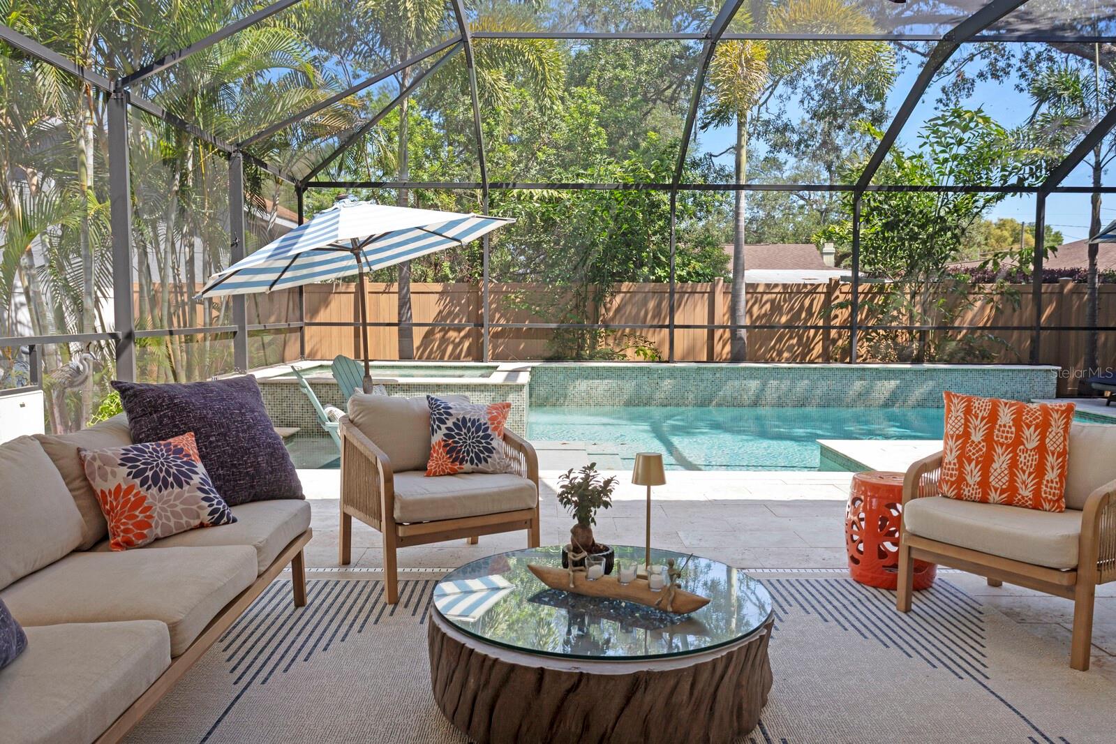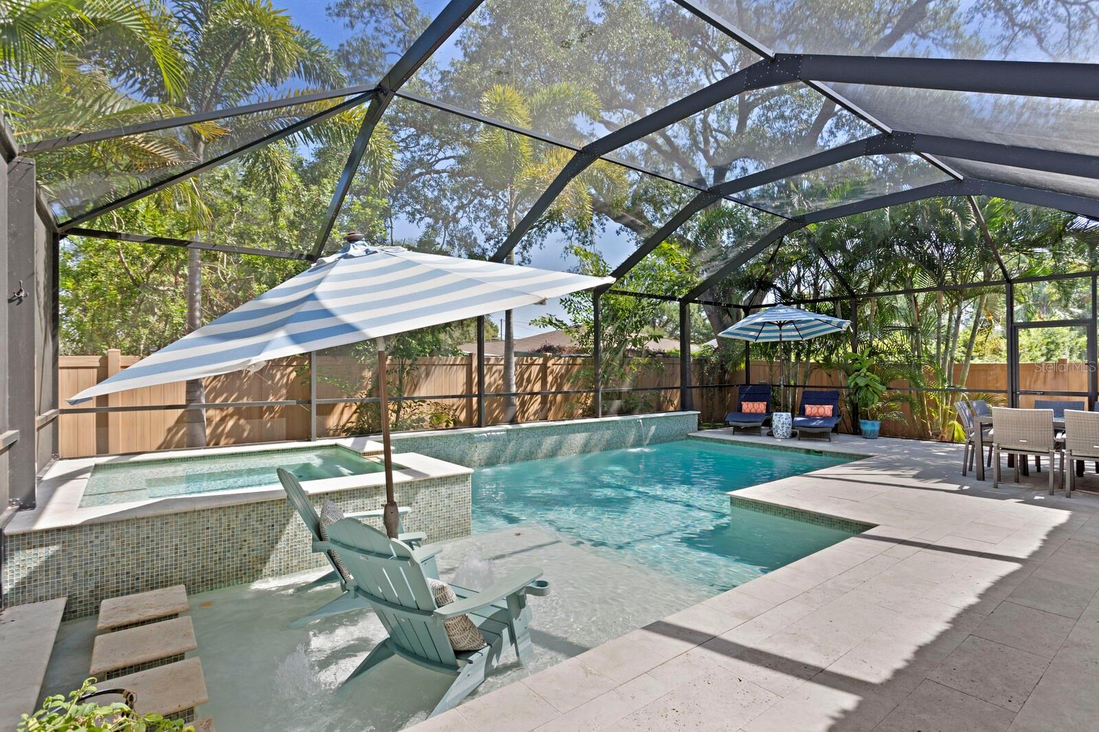 A Timeless Retreat in Bayshore Beautiful! Welcome to your private sanctuary in the heart of South Tampa, where timeless design and elevated living come together in perfect harmony. Situated on an oversized 57x145-foot lot in coveted Flood Zone X, this impeccably maintained custom home, built in 2002, offers refined craftsmanship and upscale finishes throughout. From the moment you arrive, the home's classic charm and curb appeal set the tone for what awaits inside. Step through the doors and into a warm, sophisticated interior featuring scraped hardwood floors, elegant crown molding, and detailed millwork that speaks to the home’s thoughtful design. The spacious first-floor primary suite is a luxurious retreat, offering direct access to the pool and patio for seamless indoor-outdoor living. The open-concept kitchen is a chef’s dream, outfitted with KitchenAid stainless steel appliances, a John Boos butcher block island, a dry bar with wine fridge, and a vaulted family room anchored by a cozy gas fireplace, ideal for gathering and entertaining. Step outside to your private backyard oasis, reimagined in 2021 for ultimate leisure and recreation. Enjoy a resort-style screened saltwater pool with sun shelf, oversized spa, and a generous covered patio designed for year-round entertaining. A custom turf putting green adds a playful and polished finishing touch. Upstairs, a state-of-the-art home theater invites you to relax in style, complete with a 120” screen, enhanced sound system, and tiered stadium seating, perfect for movie nights or cheering on your favorite team. Three additional bedrooms offer comfort and privacy for family or guests, while a dedicated home office ensures you can work from home without compromise. Zoned for Tampa’s top-rated Roosevelt Elementary, Coleman Middle, and Plant High School, this home offers an unbeatable blend of luxury, location, and peace of mind.