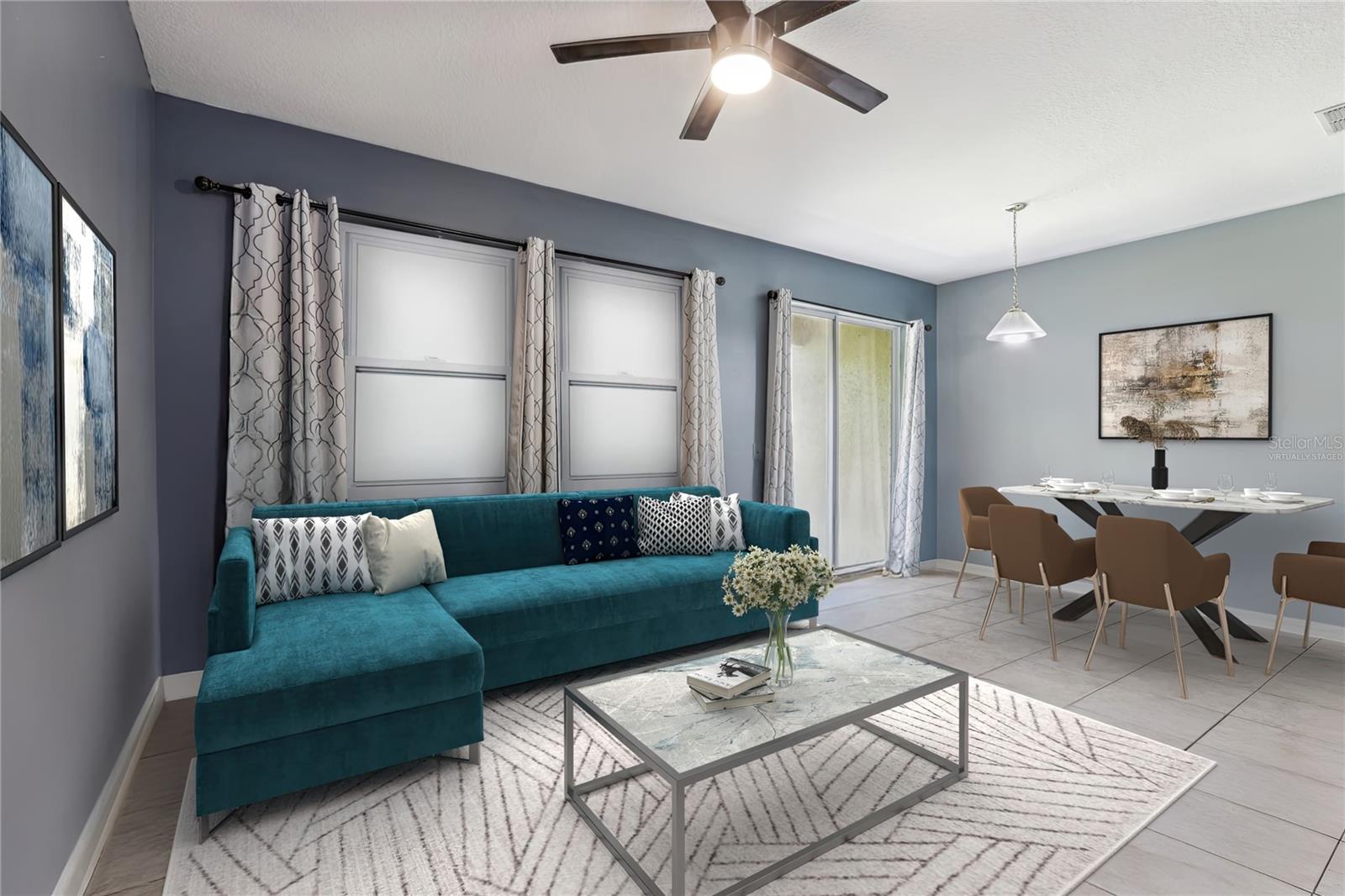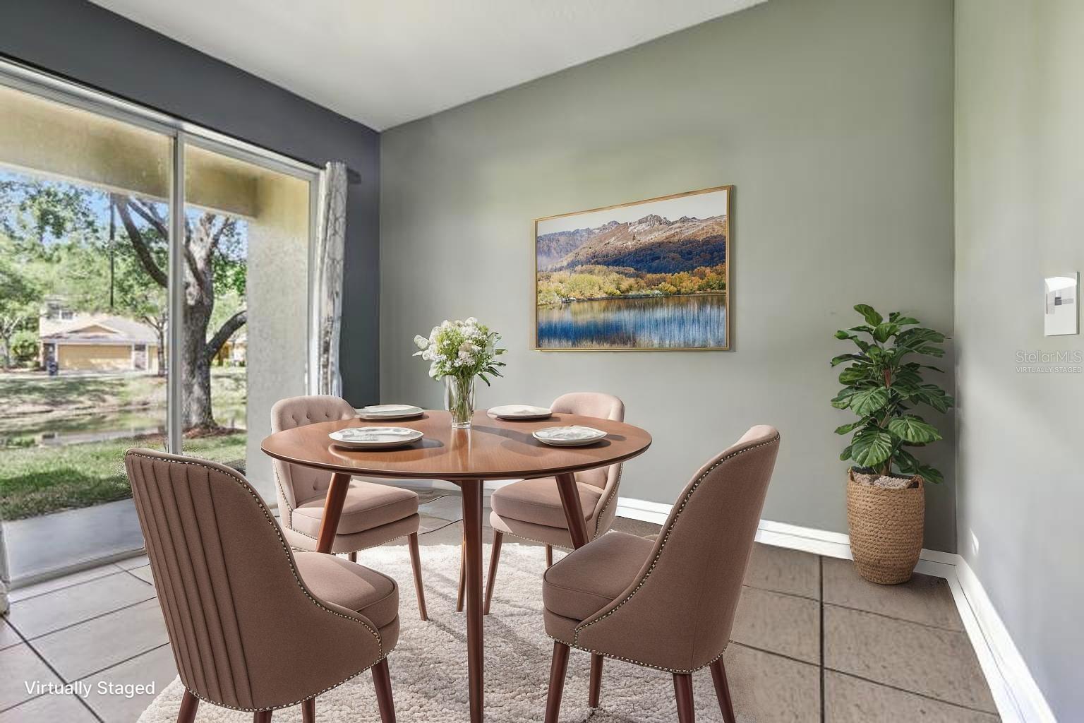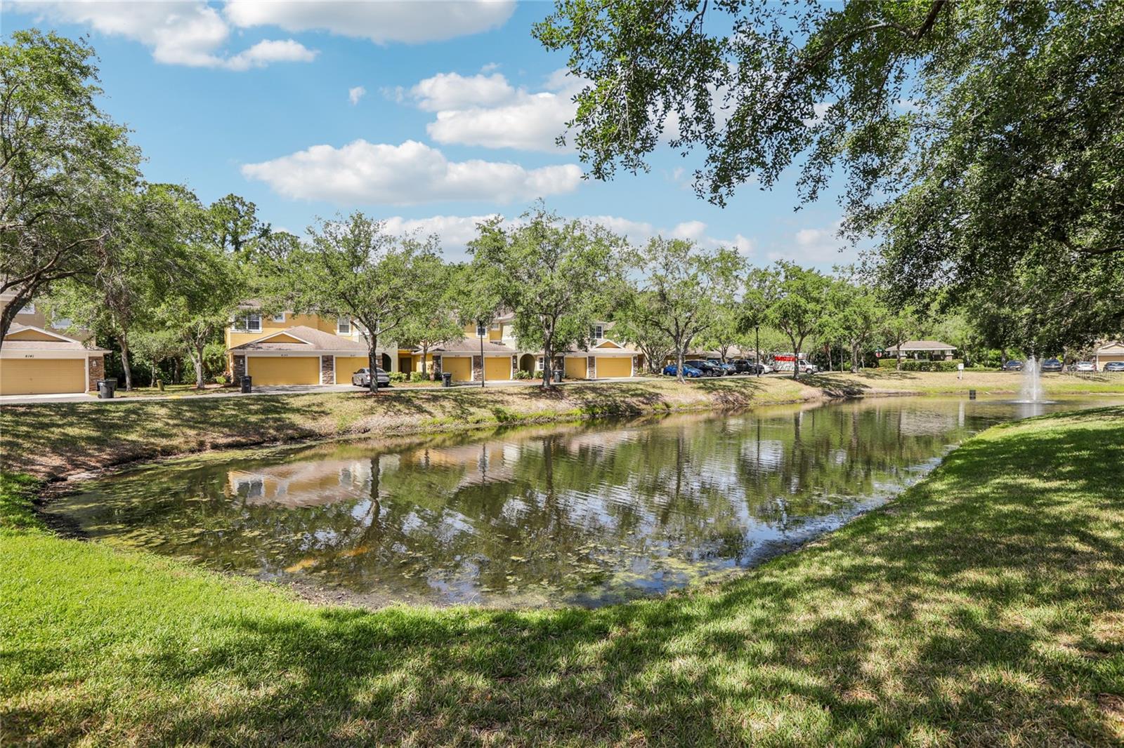 *Seller offers one year home warranty at closing; ShieldPlus coverage, which includes; Re-key service, HVAC, Plumbing, Electrical, water heater, kitchen appliances, washer, dryer, ceiling fans etc!* This bright and spacious 3-bedroom, 2.5-bath townhome is located in the desirable gated community of Stone Ridge. The main floor features ceramic tile throughout and an open-concept living and dining area, ideal for entertaining or relaxing evenings at home. The kitchen is fully equipped with all essential appliances, a large pantry, and generous cabinet storage. Enjoy peaceful pond views from the covered back patio—perfect for unwinding outdoors. A convenient half bath on the main level adds comfort for guests. Upstairs, the primary suite offers a walk-in closet and a private ensuite bathroom with dual vanities, a glass-enclosed standing shower, and a separate water closet. Two additional bedrooms and a second full bathroom provide flexible living space for family, guests, or a home office setup. Residents of Stone Ridge enjoy access to resort-style amenities including walking trails, a clubhouse, fitness center, pool with slide, lap pool, playground, and courts for tennis, basketball, and beach volleyball. Conveniently located near shopping, dining, and major highways, this home offers the perfect blend of comfort, community, and accessibility. Schedule your private showing today and experience Stone Ridge for yourself! *3 photos have been virtually staged; living room, 1 bedroom, 1 dining room photo