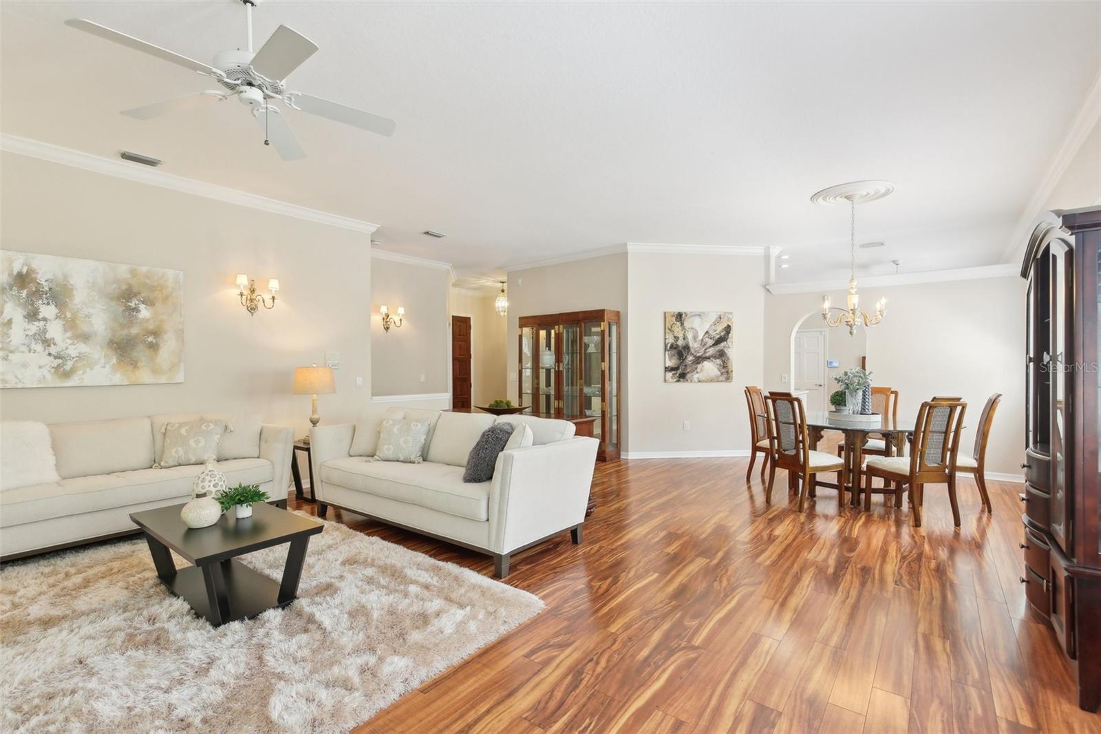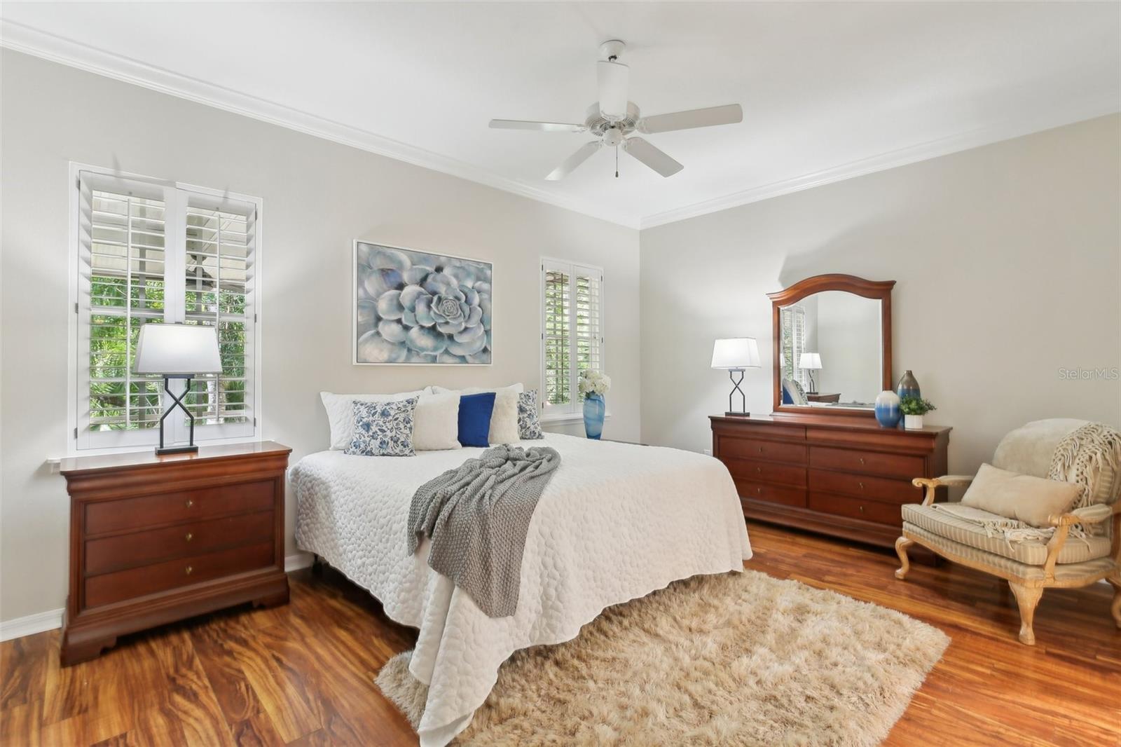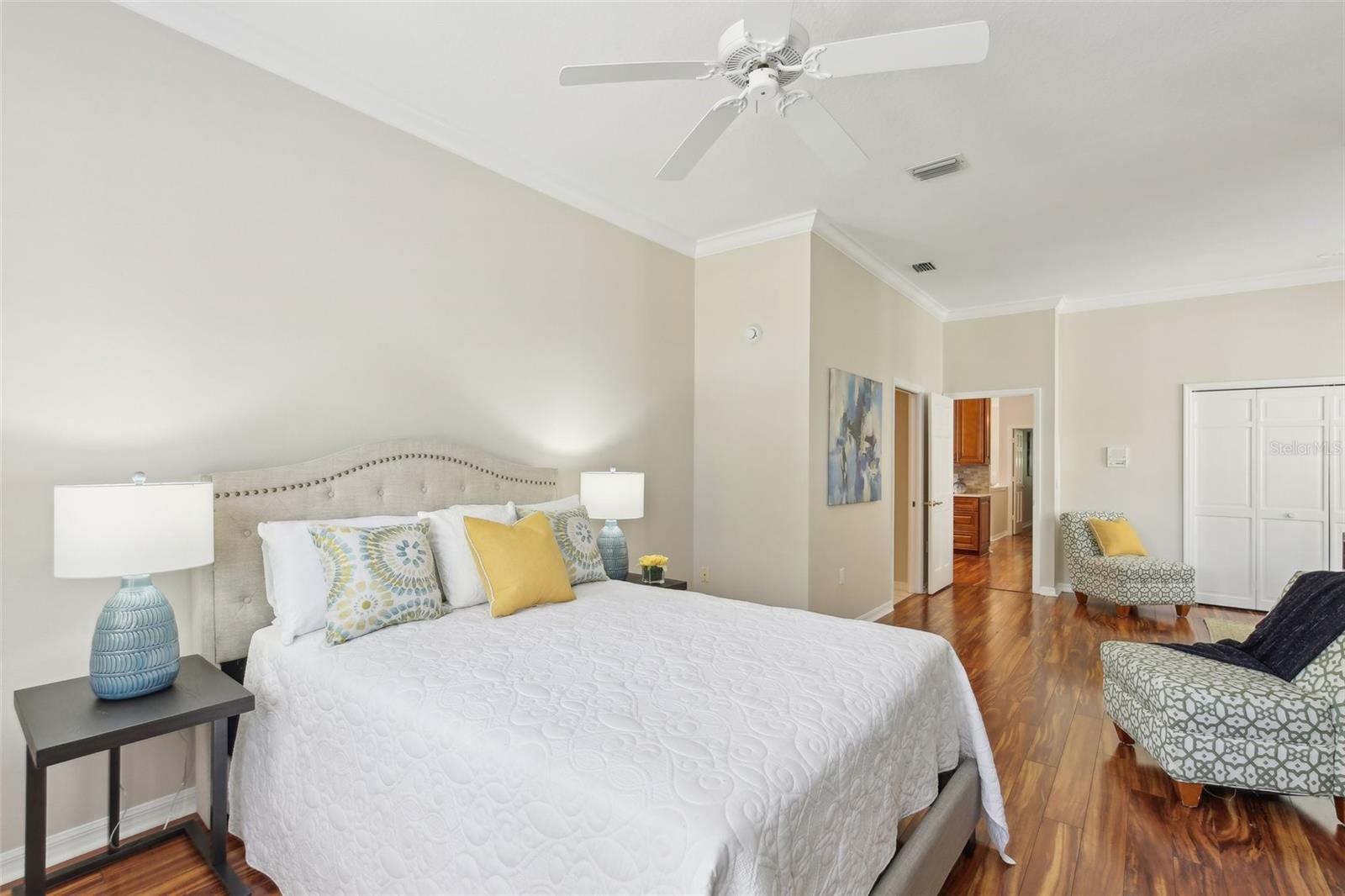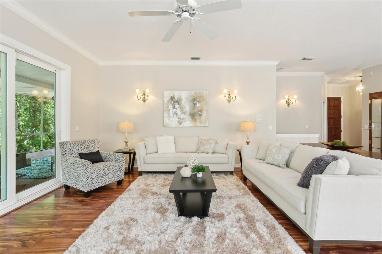 Discover exceptional value and worry-free living in this immaculate 2-bedroom, 2-bathroom home, perfectly situated on a private CONSERVATION LOT in a prime location in highly sought-after Tampa Palms! Move right in and enjoy peace of mind with major updates already completed: NEW ROOF, NEW AC, and NEW HURRICANE PROOF SLIDERS. The home has been FRESHLY PAINTED INSIDE AND OUT. Plus, slash your living expenses with FULLY PAID-OFF SOLAR PANELS offering extremely low electric bills! Step inside to find beautiful, WOOD LAMINATE FLOORING flowing throughout the entire home – NO CARPET! Elegant CROWN MOLDING adds a touch of sophistication, while stylish PLANTATION SHUTTERS provide privacy and charm. The stunningly REMODELED KITCHEN is a chef's delight, boasting tall 42” cabinets with crown molding, a chic TILE BACKSPLASH, and ample counter space. Relax in your private primary suite featuring an en suite bathroom with convenient dual sinks and a soothing GARDEN TUB. Step outside to the OVERSIZE, SCREENED IN LANAI, your perfect spot for morning coffee or evening relaxation, overlooking serene conservation views with NO REAR NEIGHBORS. The curb appeal is enhanced by a handsome pavered driveway. The second bedroom is massive, and easily can accommodate guests, home office, exercise room, or even the option to create a third bedroom, Tampa Palms is an AWARD-WINNING master planned community with five parks, TOP-RATED SCHOOLS and a private championship Arthur Hills designed golf course. Living in Tampa Palms offers access to AMENITIES GALORE, including access to nearby Compton Park, 2 sparkling POOLS, a kiddie SPLASH PAD, TENNIS and BASKETBALL courts, and a PLAYGROUND. Finally, the convenience factor cannot be overstated with easy access to shopping, restaurants, USF, the Moffitt, the VA and other hospitals, and major highways to take you anywhere you might want to go! If you're looking to be near Tampa Palms Golf and Country Club, this home is just minutes away! Don't miss this unique opportunity to own a fresh and clean, light and bright, energy-efficient home packed with premium features in a prime location. Schedule your showing today!