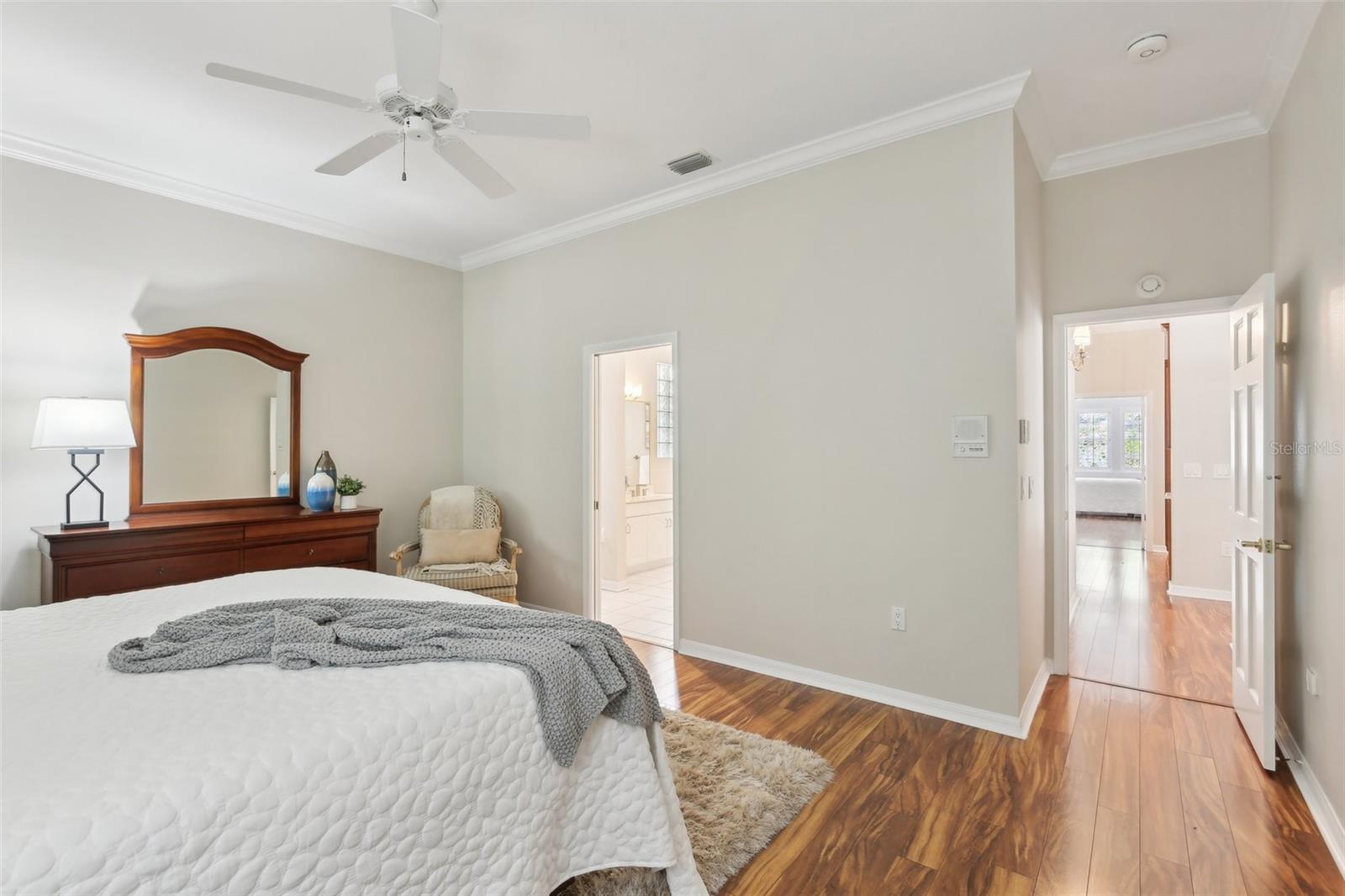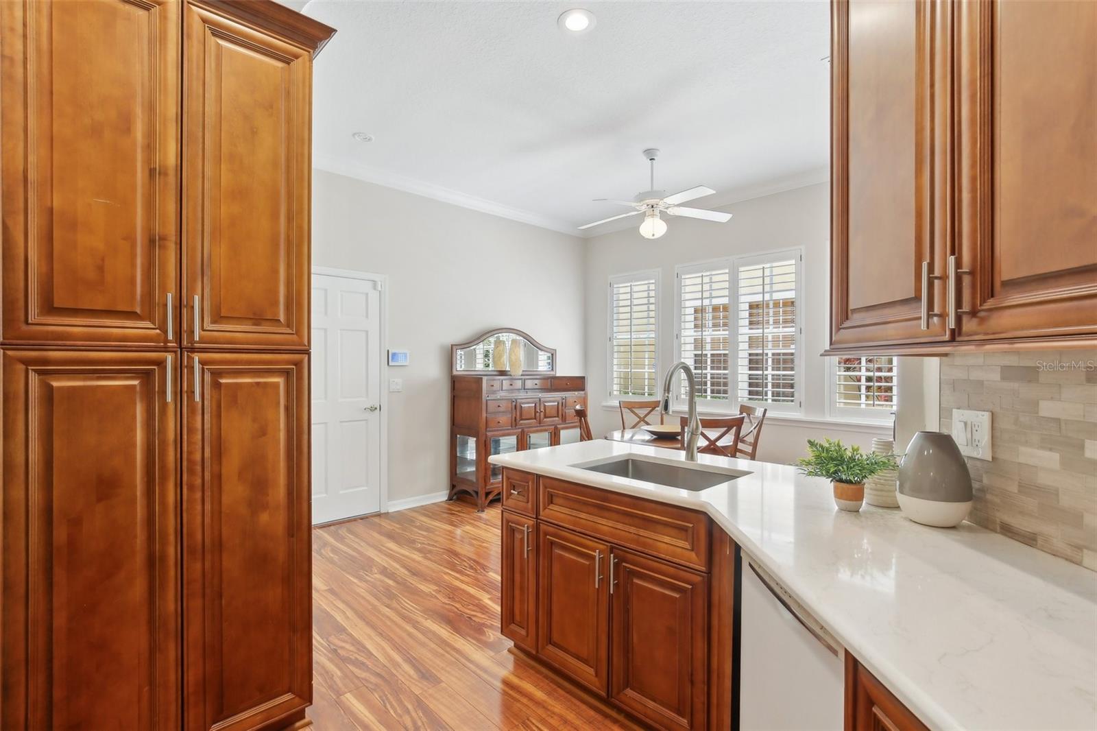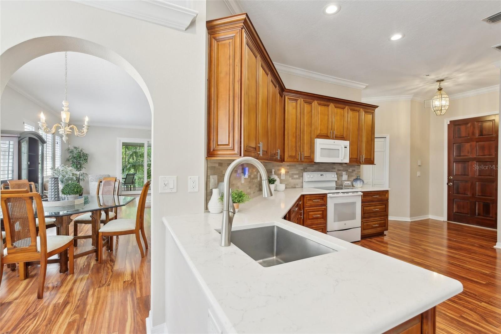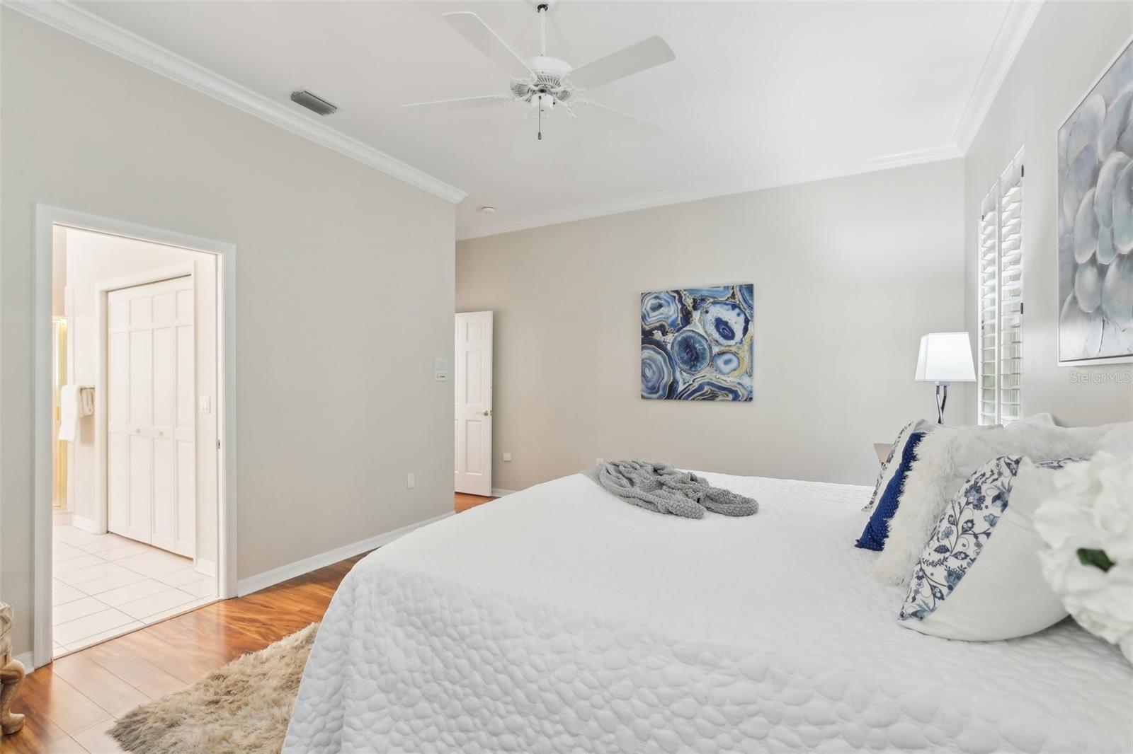 Discover exceptional value and worry-free living in this immaculate 2-bedroom, 2-bathroom home, perfectly situated on a private CONSERVATION LOT in a prime location in highly sought-after Tampa Palms! Move right in and enjoy peace of mind with major updates already completed: NEW ROOF, NEW AC, and NEW HURRICANE PROOF SLIDERS. The home has been FRESHLY PAINTED INSIDE AND OUT. Plus, slash your living expenses with FULLY PAID-OFF SOLAR PANELS offering extremely low electric bills! Step inside to find beautiful, WOOD LAMINATE FLOORING flowing throughout the entire home – NO CARPET! Elegant CROWN MOLDING adds a touch of sophistication, while stylish PLANTATION SHUTTERS provide privacy and charm. The stunningly REMODELED KITCHEN is a chef's delight, boasting tall 42” cabinets with crown molding, a chic TILE BACKSPLASH, and ample counter space. Relax in your private primary suite featuring an en suite bathroom with convenient dual sinks and a soothing GARDEN TUB. Step outside to the OVERSIZE, SCREENED IN LANAI, your perfect spot for morning coffee or evening relaxation, overlooking serene conservation views with NO REAR NEIGHBORS. The curb appeal is enhanced by a handsome pavered driveway. The second bedroom is massive, and easily can accommodate guests, home office, exercise room, or even the option to create a third bedroom, Tampa Palms is an AWARD-WINNING master planned community with five parks, TOP-RATED SCHOOLS and a private championship Arthur Hills designed golf course. Living in Tampa Palms offers access to AMENITIES GALORE, including access to nearby Compton Park, 2 sparkling POOLS, a kiddie SPLASH PAD, TENNIS and BASKETBALL courts, and a PLAYGROUND. Finally, the convenience factor cannot be overstated with easy access to shopping, restaurants, USF, the Moffitt, the VA and other hospitals, and major highways to take you anywhere you might want to go! If you're looking to be near Tampa Palms Golf and Country Club, this home is just minutes away! Don't miss this unique opportunity to own a fresh and clean, light and bright, energy-efficient home packed with premium features in a prime location. Schedule your showing today!