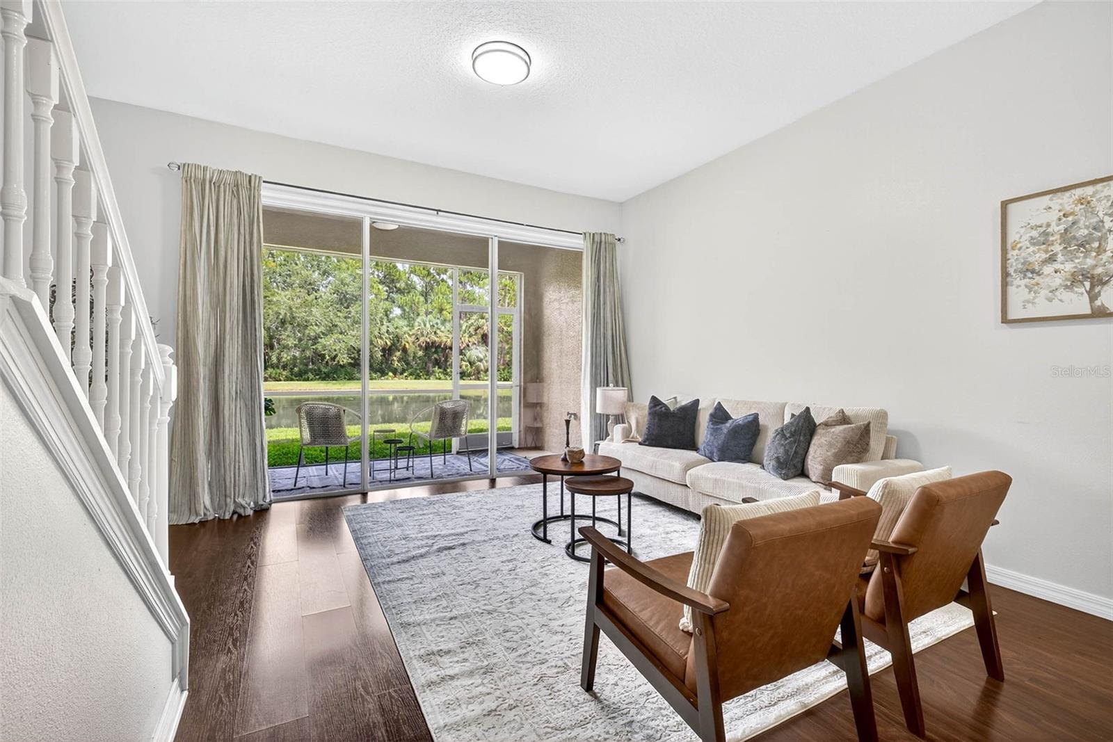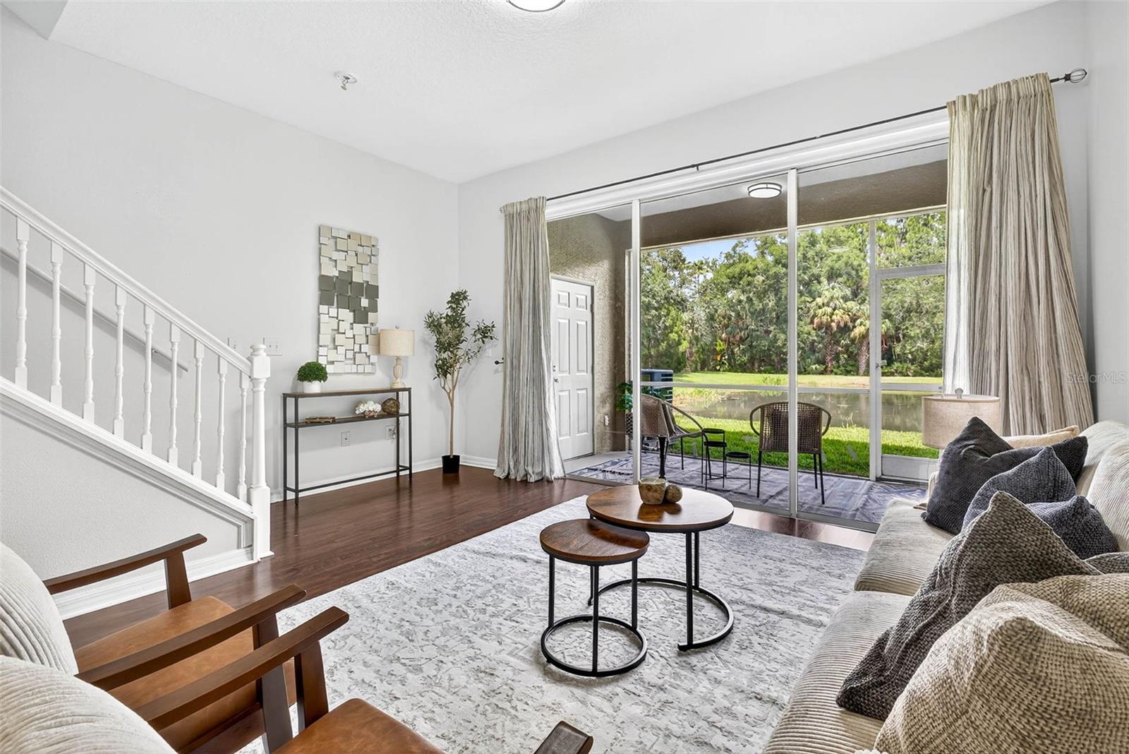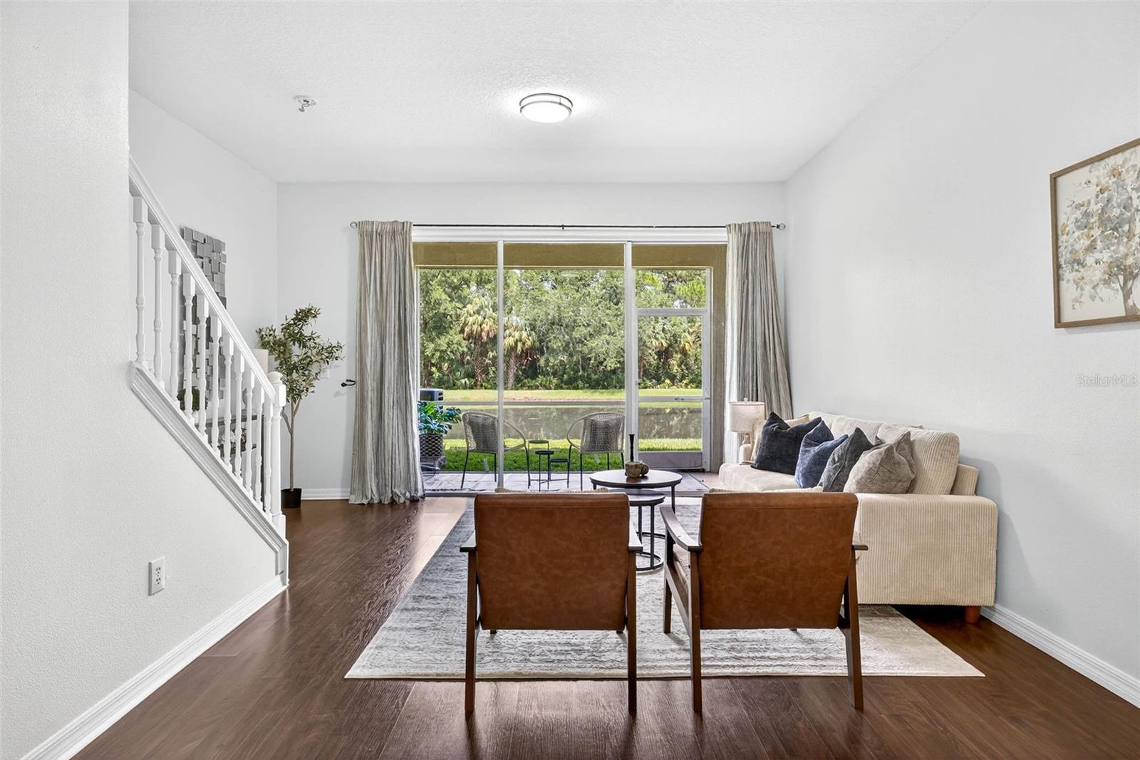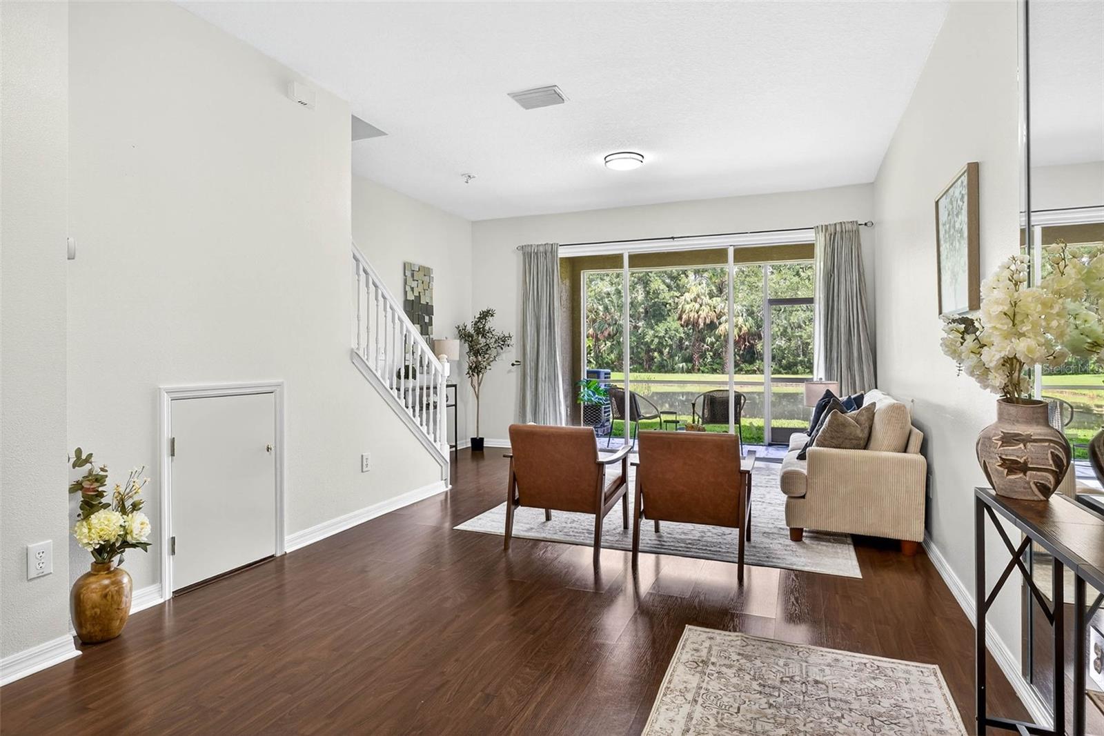 2 Bedroom, 2.5 Bath, 1-Car Garage Townhome with screened lanai in the beautiful Promenade. Luxury Vinyl floors on first floor, carpet on the second floor.Sit back and enjoy the view...exterior and grounds are maintained by the HOA. A Private Promenade Townhome Community Pool is just a short walk of the townhomes. Plus there's a huge West Meadows recreation complex including a swimming pool, water slide, splash pad, concession stand and gazebos, tennis courts, Clubhouse, fitness center, playground, dog park, sports fields for baseball, soccer, plus volleyball and basketball. All included with the West Meadows annual fee.