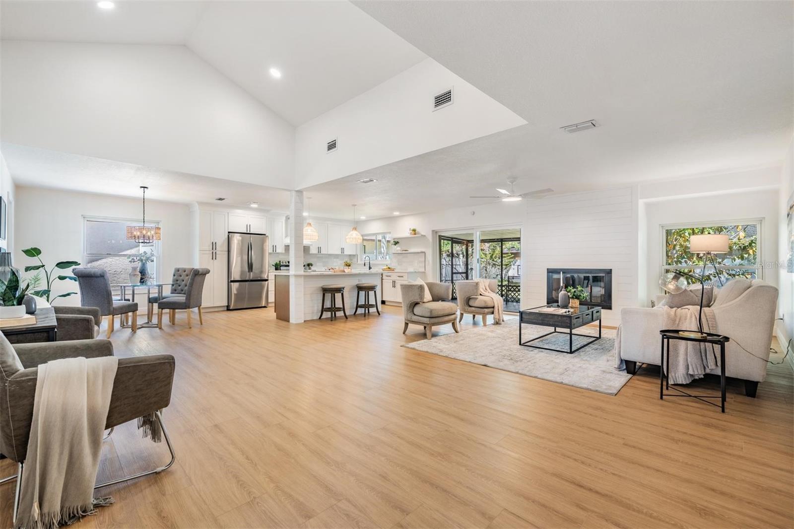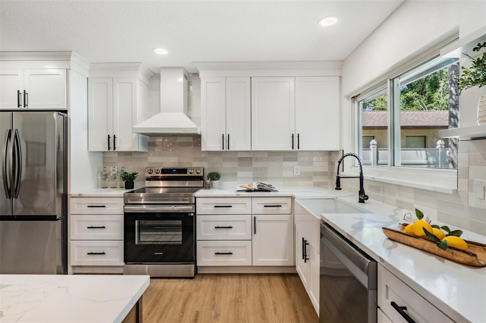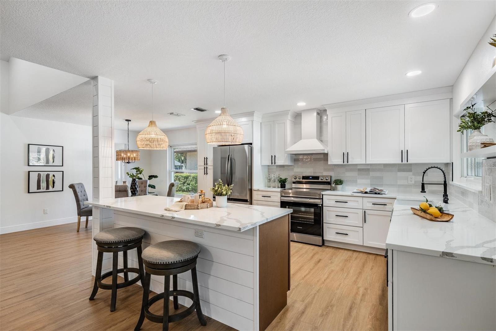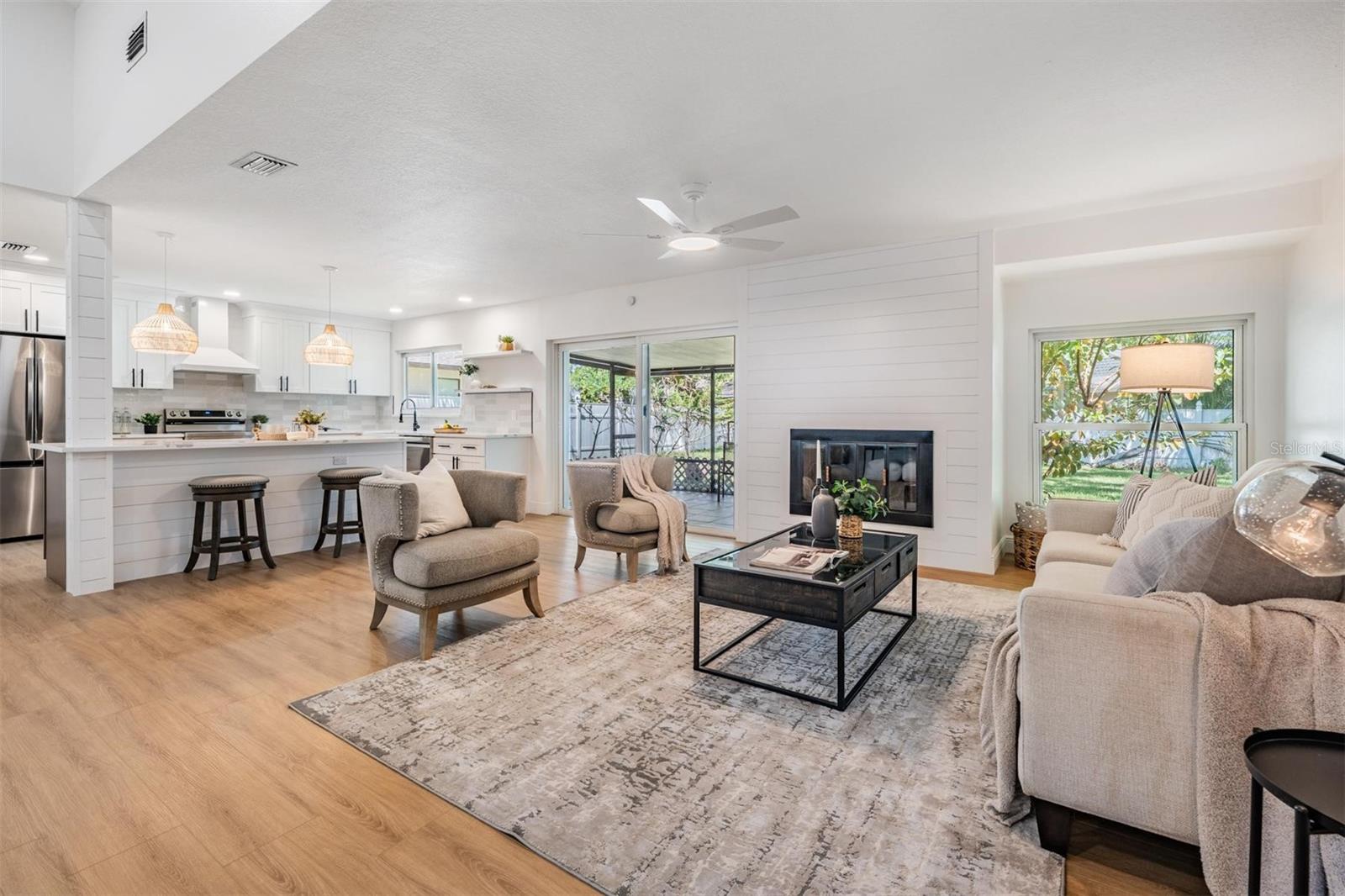 *Back on the market after buyer withdrew from the contract one week before closing.* Nestled on nearly a quarter-acre lot, this stunning residence has been completely renovated from top to bottom, blending modern upgrades with timeless charm. From the moment you step through the front door, you are greeted by soaring vaulted ceilings and an open-concept floor plan, creating a light and airy atmosphere that is perfect for entertaining or relaxing by the cozy wood-burning fireplace. The heart of the home, your beautifully updated kitchen—features white shaker wood cabinets, a center island with contrasting light brown wood cabinetry, elegant Calacatta quartz countertops, a stylish Italian tile backsplash, and brand-new stainless-steel appliances. Throughout the home, luxury vinyl plank flooring adds durability and sophistication. Down the hall, you will find a fully updated secondary bathroom with sleek new tile, a modern vanity, and quartz counters. The spacious primary bedroom offers a private en-suite bath, also thoughtfully renovated with contemporary finishes. Additional upgrades include a new roof, new AC, hot water heater, and energy-efficient windows—all offering peace of mind and energy savings. Located close to top-rated schools, shopping centers, parks, and with easy access to major highways, this home truly has it all. Don't miss your opportunity to make this beautiful home yours—schedule a tour today!