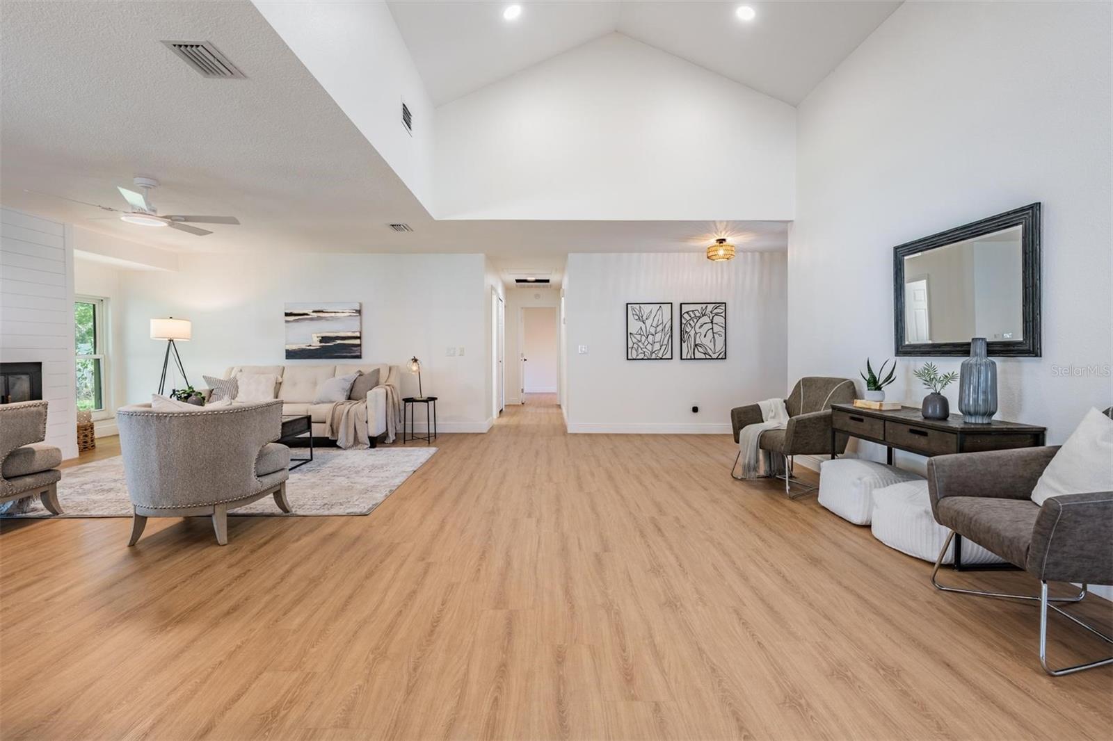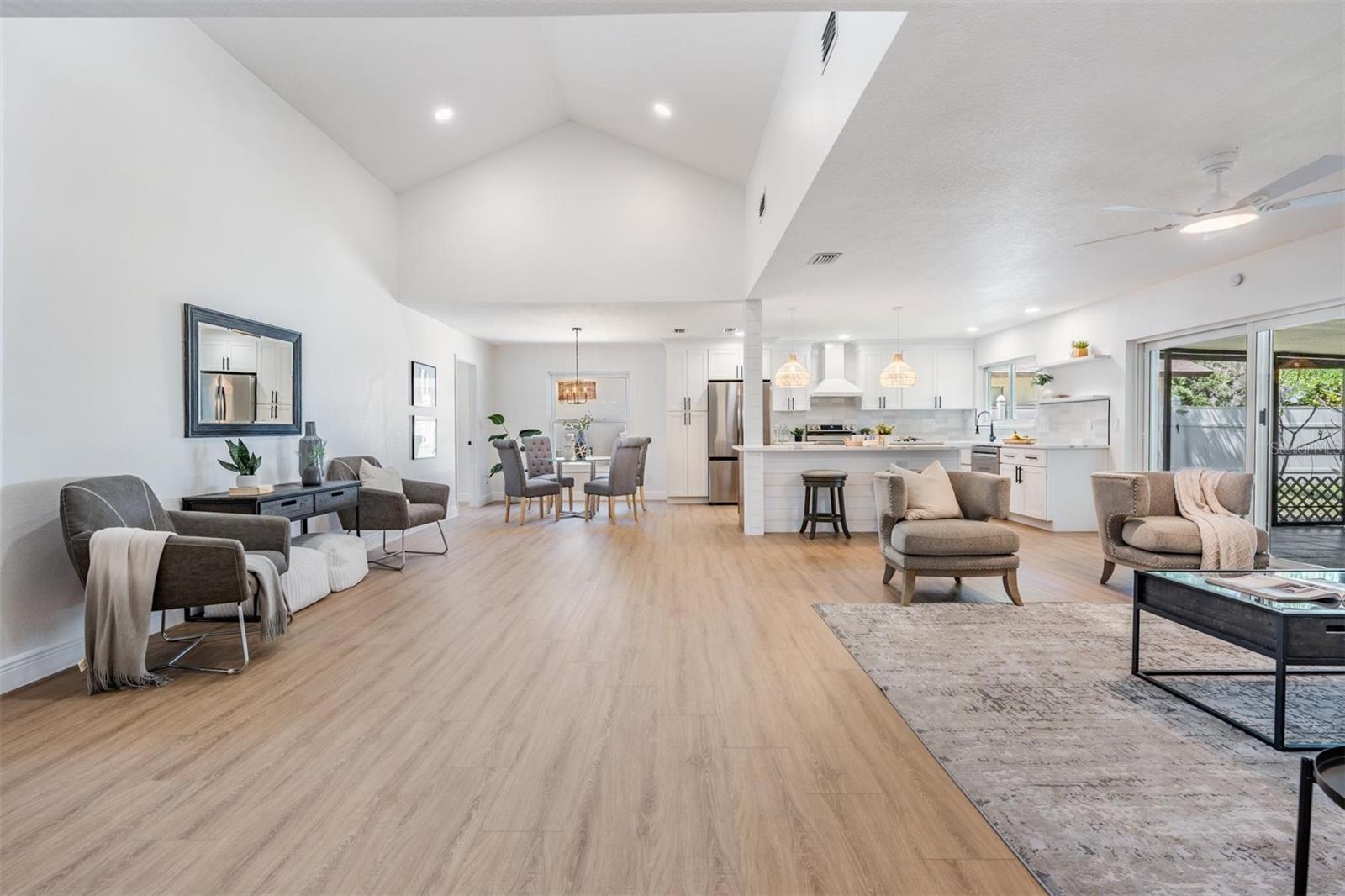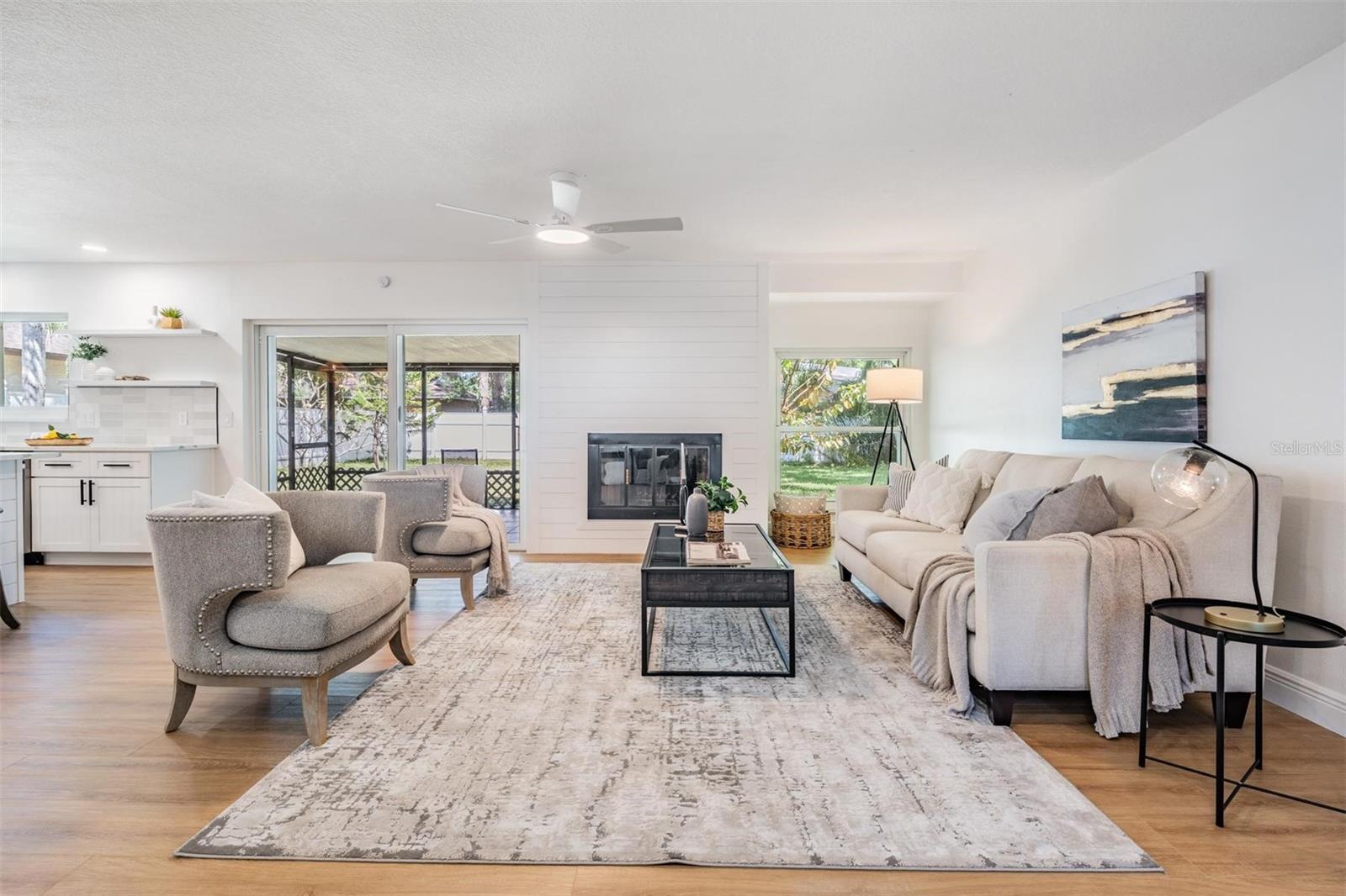 *Back on the market after buyer withdrew from the contract one week before closing.* Nestled on nearly a quarter-acre lot, this stunning residence has been completely renovated from top to bottom, blending modern upgrades with timeless charm. From the moment you step through the front door, you are greeted by soaring vaulted ceilings and an open-concept floor plan, creating a light and airy atmosphere that is perfect for entertaining or relaxing by the cozy wood-burning fireplace. The heart of the home, your beautifully updated kitchen—features white shaker wood cabinets, a center island with contrasting light brown wood cabinetry, elegant Calacatta quartz countertops, a stylish Italian tile backsplash, and brand-new stainless-steel appliances. Throughout the home, luxury vinyl plank flooring adds durability and sophistication. Down the hall, you will find a fully updated secondary bathroom with sleek new tile, a modern vanity, and quartz counters. The spacious primary bedroom offers a private en-suite bath, also thoughtfully renovated with contemporary finishes. Additional upgrades include a new roof, new AC, hot water heater, and energy-efficient windows—all offering peace of mind and energy savings. Located close to top-rated schools, shopping centers, parks, and with easy access to major highways, this home truly has it all. Don't miss your opportunity to make this beautiful home yours—schedule a tour today!