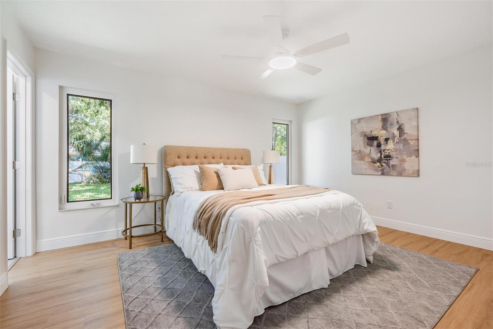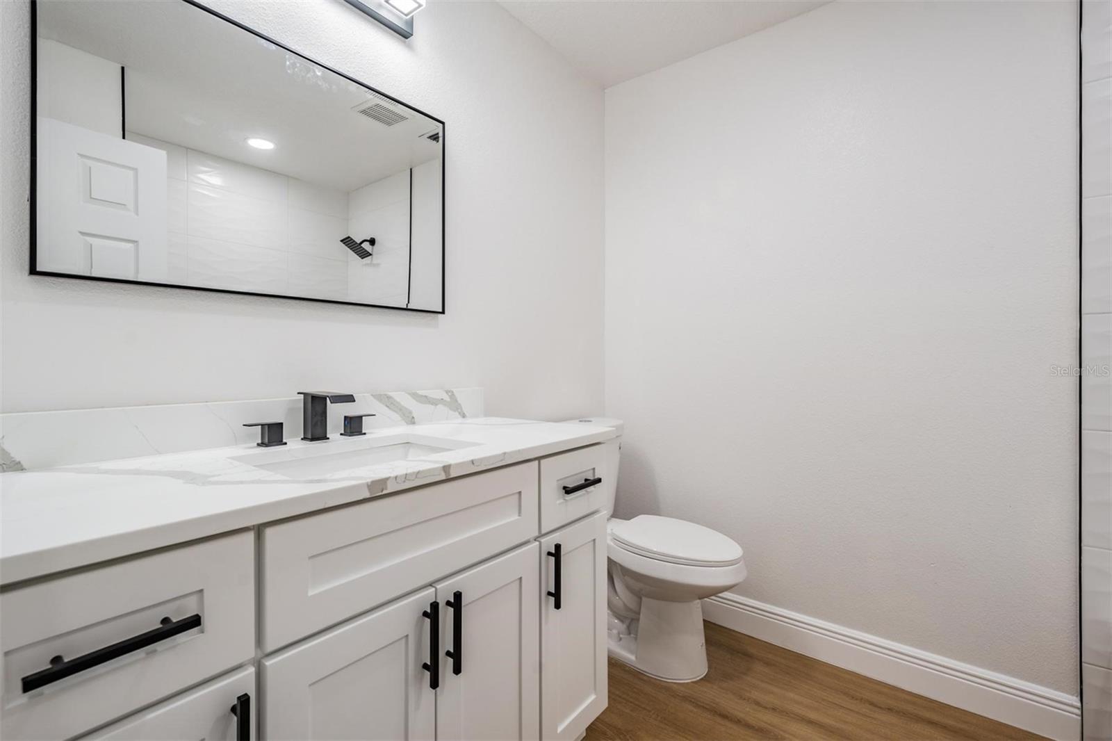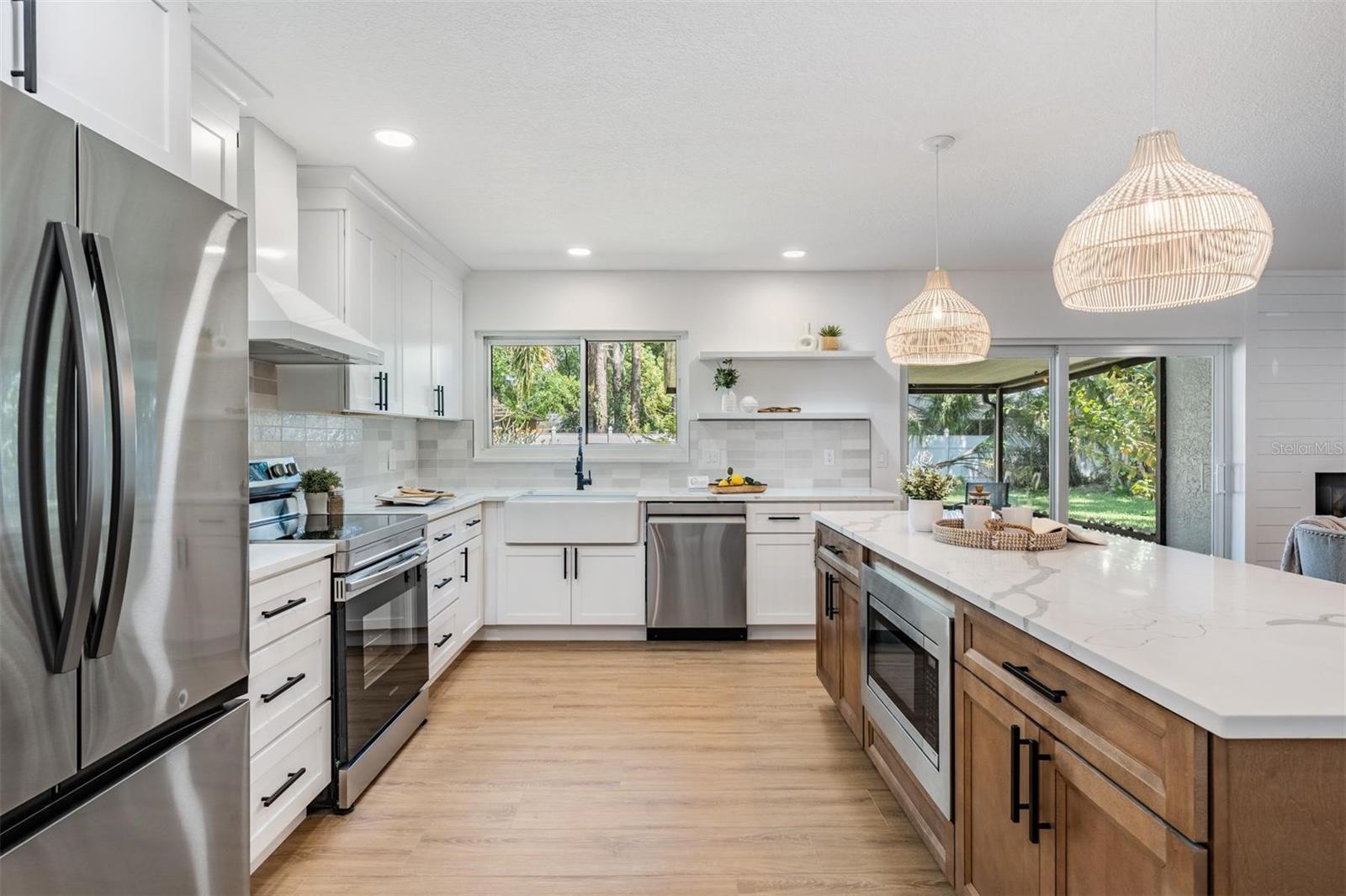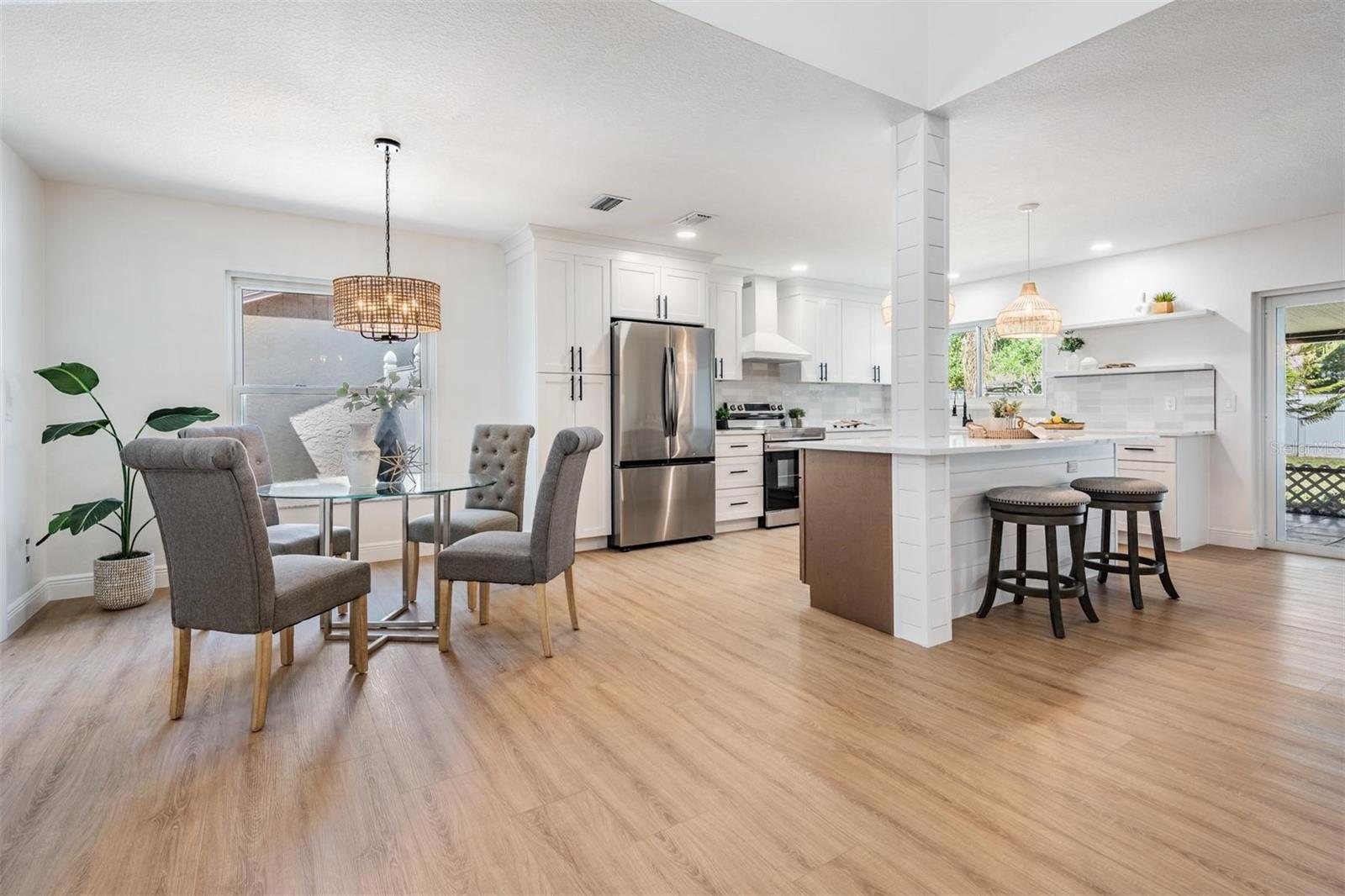 *Back on the market after buyer withdrew from the contract one week before closing.* Nestled on nearly a quarter-acre lot, this stunning residence has been completely renovated from top to bottom, blending modern upgrades with timeless charm. From the moment you step through the front door, you are greeted by soaring vaulted ceilings and an open-concept floor plan, creating a light and airy atmosphere that is perfect for entertaining or relaxing by the cozy wood-burning fireplace. The heart of the home, your beautifully updated kitchen—features white shaker wood cabinets, a center island with contrasting light brown wood cabinetry, elegant Calacatta quartz countertops, a stylish Italian tile backsplash, and brand-new stainless-steel appliances. Throughout the home, luxury vinyl plank flooring adds durability and sophistication. Down the hall, you will find a fully updated secondary bathroom with sleek new tile, a modern vanity, and quartz counters. The spacious primary bedroom offers a private en-suite bath, also thoughtfully renovated with contemporary finishes. Additional upgrades include a new roof, new AC, hot water heater, and energy-efficient windows—all offering peace of mind and energy savings. Located close to top-rated schools, shopping centers, parks, and with easy access to major highways, this home truly has it all. Don't miss your opportunity to make this beautiful home yours—schedule a tour today!