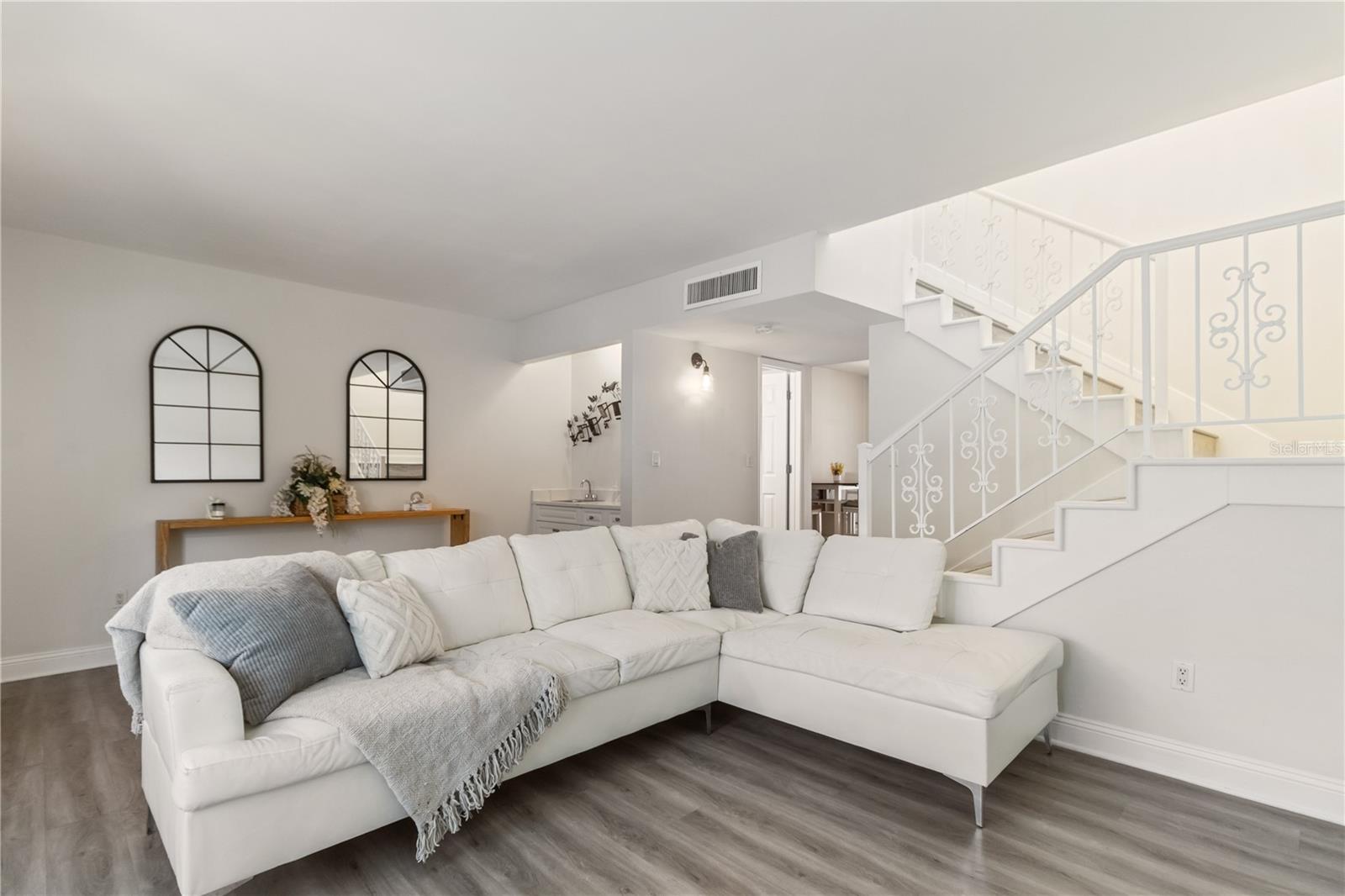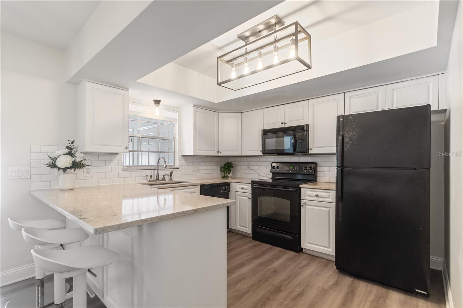 Under contract-accepting backup offers. Welcome to your stylish slice of Carrollwood charm! This two-level, corner unit townhouse is dressed to impress with cool-toned luxury vinyl flooring, fresh light walls, and a kitchen that deserves its own cooking show—hello quartz countertops, trendy backsplash, matching appliances, and designer lighting! Slide open the brand-new glass door (with built-in blinds—because privacy matters) and step into your Florida room, complete with washer/dryer hookups and bonus storage. Outside, your private fenced courtyard is the perfect pup playground or peaceful morning coffee retreat. Upstairs, both bedrooms share a full bath, while guests have a half bath downstairs. And yes, there's even a real crystal chandelier watching over the elegant white iron stair railing—just a little glam for your grand entrance! Located in desirable Original Carrollwood, this community nails the lifestyle: low HOA (with exterior maintenance and grounds taken care of), on-site management, 2 pools, a clubhouse with event space and kitchen, a two-story fitness center with pond views, tennis courts, and dreamy walking paths shaded by majestic oaks and serenaded by water fountains. It's Florida living with character, comfort, and convenience. Roof 2020 (taken care of by the HOA), no flood zone with superb walkability to all that Carrollwood has to offer. Bring your flip-flops, your pets, and your love for breezy good vibes—this one's a showstopper!