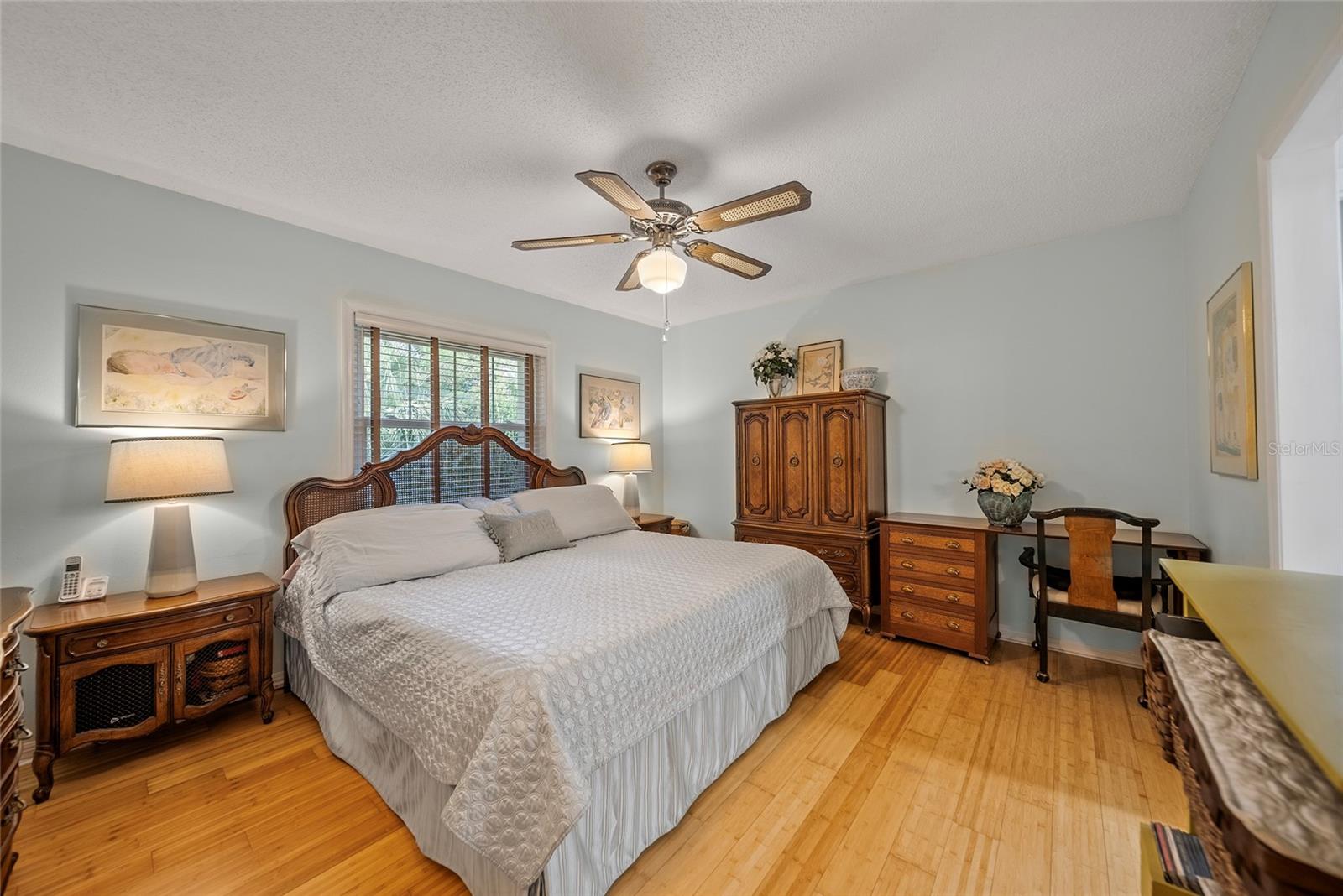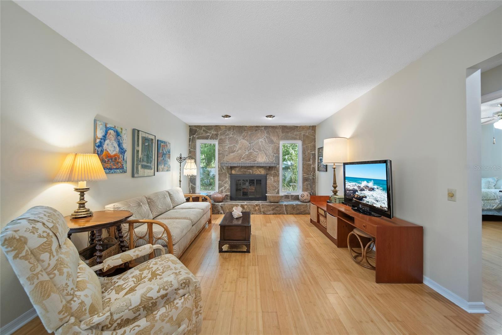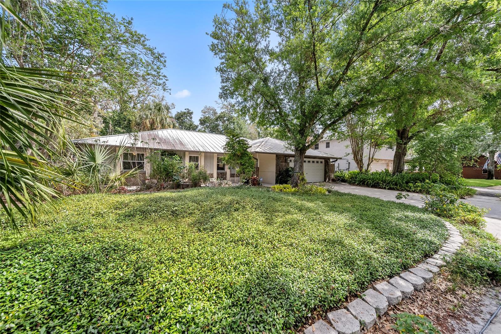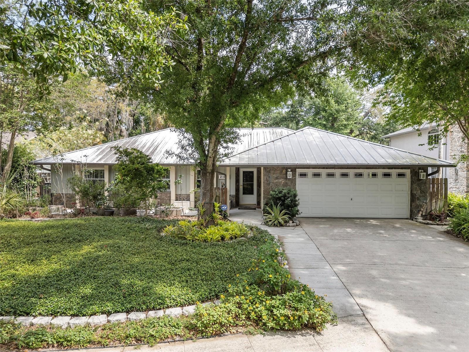 Welcome to this meticulously maintained 3-bedroom, 2-bath ranch located in the highly sought-after Heritage Square community. Offering 1,669 sq ft of move-in-ready living space. This home features a split floor plan with a spacious main bedroom en suite and beautifully designed living areas. The custom kitchen boasts KraftMaid solid maple cabinetry, Cambria quartz countertops (2024), and a Blanco Silgranit sink. Bamboo flooring throughout the living areas, paired with ivory porcelain tile in the kitchen and kitchen nook, creates a low-maintenance interior.Construction features include a 35-year warranted Millennium metal roof (2019), hurricane-grade skylights, energy-efficient thermal windows, and a well-insulated attic. Recent updates include a heat pump (2019) and commercial-grade water heater (2022), newer AC (2019), leaf filter gutters (2019) ensuring comfort and efficiency. The home also includes top-tier electrical and plumbing upgrades, including a fully functional wood fireplace with a remortared stone mantle.The exterior of the home is a gardener’s paradise, with fruit trees, and pollinator-friendly plants. A custom-built board-on-board privacy fence surrounds the lush backyard, which includes a rainwater collection system (2019) holding over 500 gallons. The expansive backyard patio is perfect for entertaining, with raised garden beds offering easy gardening.With a 2.5-car garage for extensive storage, direct kitchen access for grocery convenience, and a professionally painted exterior (2019), this home is situated in the desirable Forest Hills Estate neighborhood with a LOW HOA. Just minutes from premier shopping, top restaurants, and right by the Babe Zaharias Golf Course. Don't walk but run to schedule a private showing!