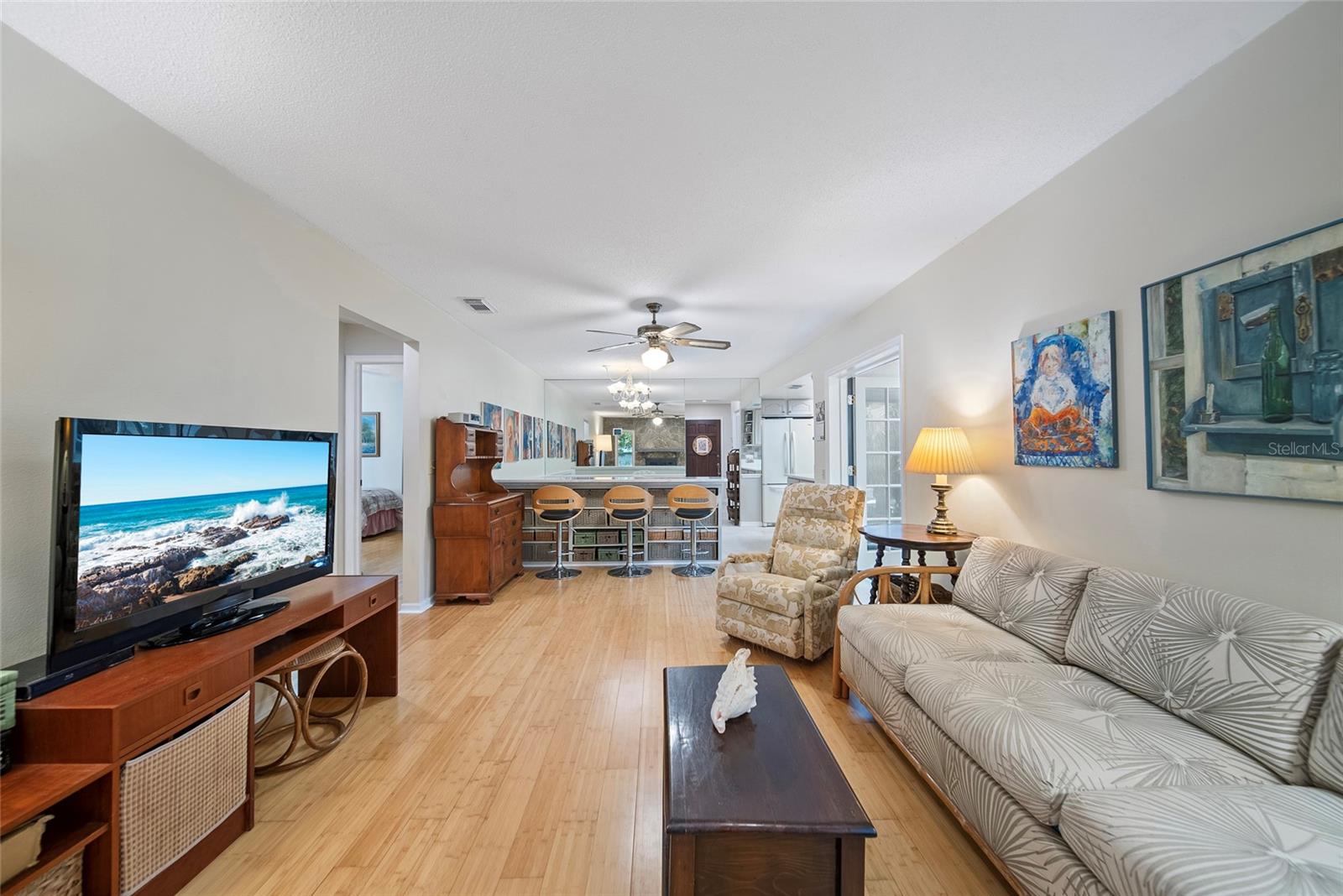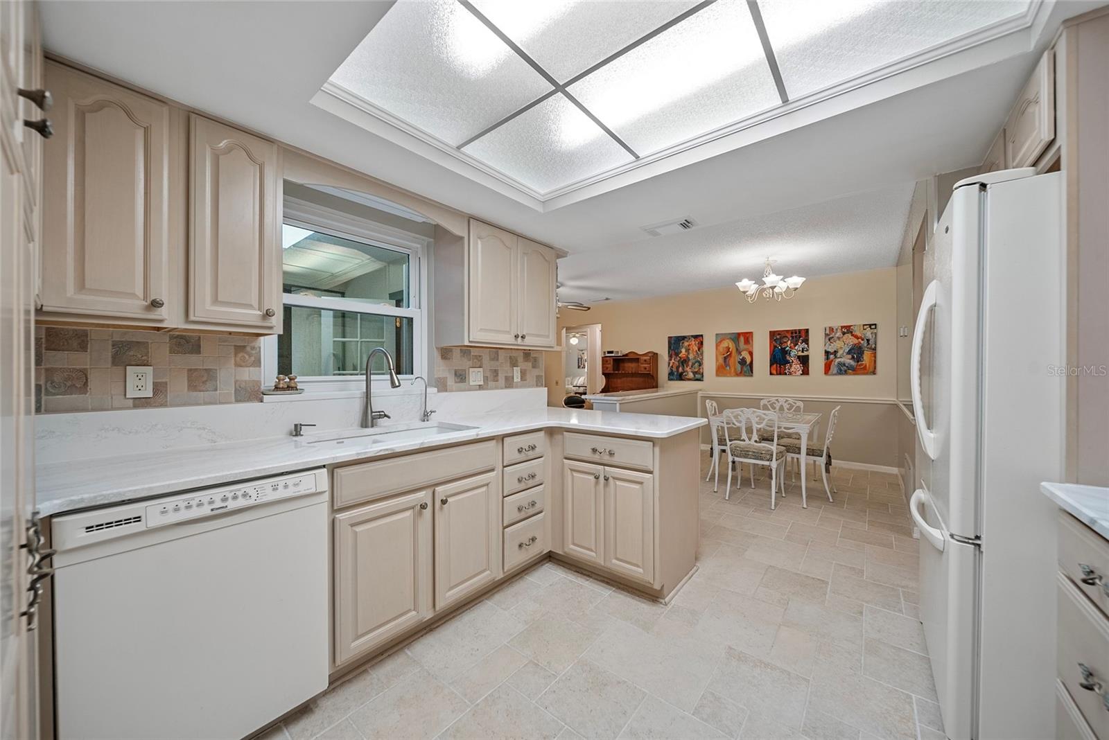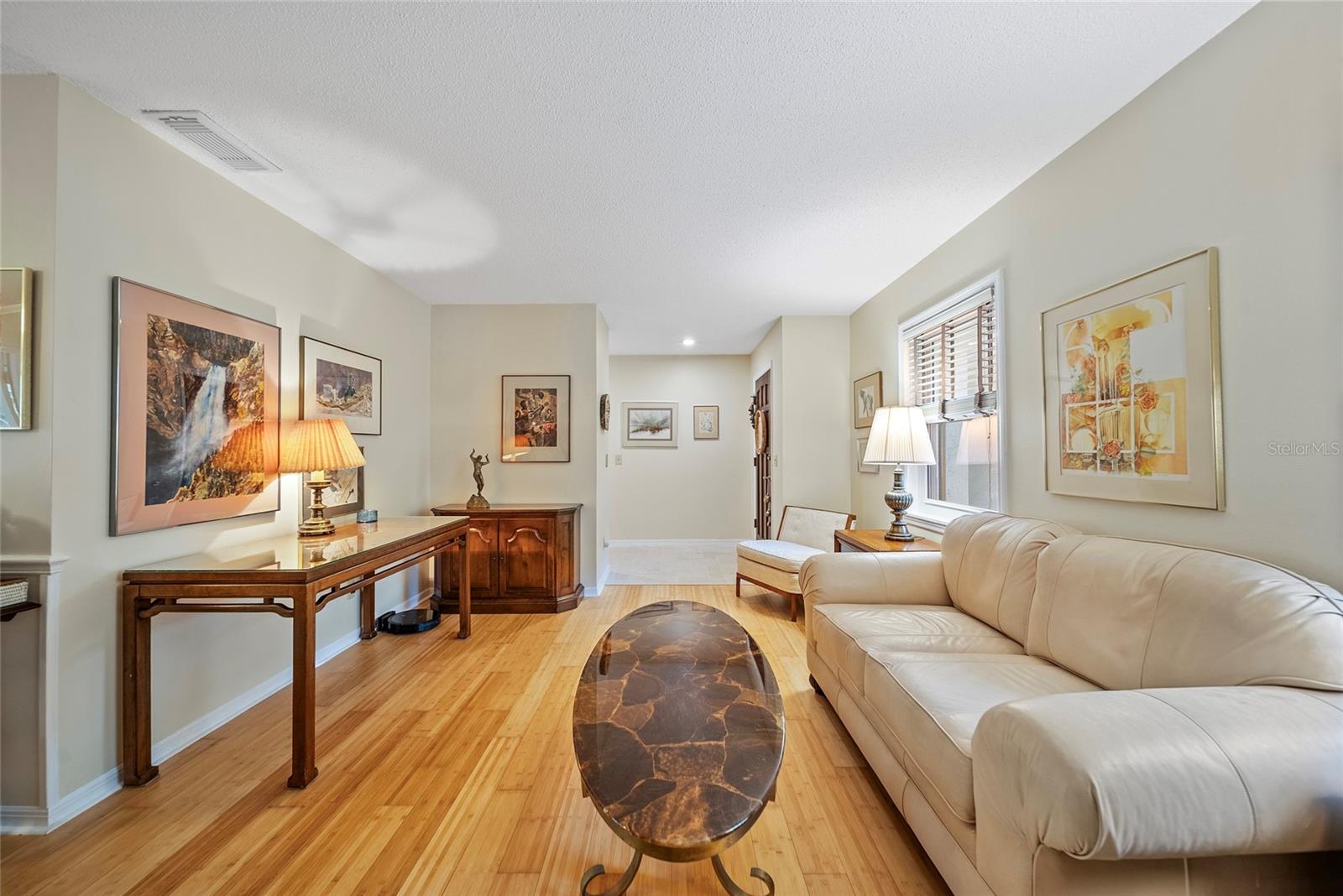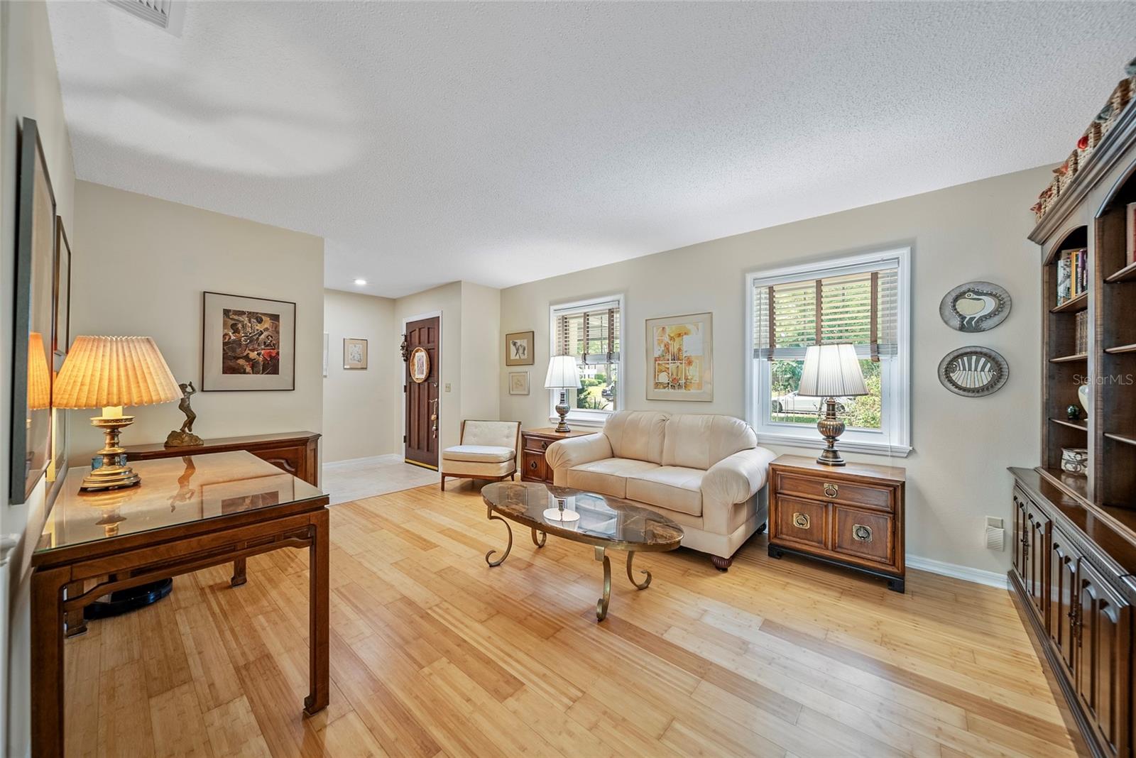 Welcome to this meticulously maintained 3-bedroom, 2-bath ranch located in the highly sought-after Heritage Square community. Offering 1,669 sq ft of move-in-ready living space. This home features a split floor plan with a spacious main bedroom en suite and beautifully designed living areas. The custom kitchen boasts KraftMaid solid maple cabinetry, Cambria quartz countertops (2024), and a Blanco Silgranit sink. Bamboo flooring throughout the living areas, paired with ivory porcelain tile in the kitchen and kitchen nook, creates a low-maintenance interior.Construction features include a 35-year warranted Millennium metal roof (2019), hurricane-grade skylights, energy-efficient thermal windows, and a well-insulated attic. Recent updates include a heat pump (2019) and commercial-grade water heater (2022), newer AC (2019), leaf filter gutters (2019) ensuring comfort and efficiency. The home also includes top-tier electrical and plumbing upgrades, including a fully functional wood fireplace with a remortared stone mantle.The exterior of the home is a gardener’s paradise, with fruit trees, and pollinator-friendly plants. A custom-built board-on-board privacy fence surrounds the lush backyard, which includes a rainwater collection system (2019) holding over 500 gallons. The expansive backyard patio is perfect for entertaining, with raised garden beds offering easy gardening.With a 2.5-car garage for extensive storage, direct kitchen access for grocery convenience, and a professionally painted exterior (2019), this home is situated in the desirable Forest Hills Estate neighborhood with a LOW HOA. Just minutes from premier shopping, top restaurants, and right by the Babe Zaharias Golf Course. Don't walk but run to schedule a private showing!