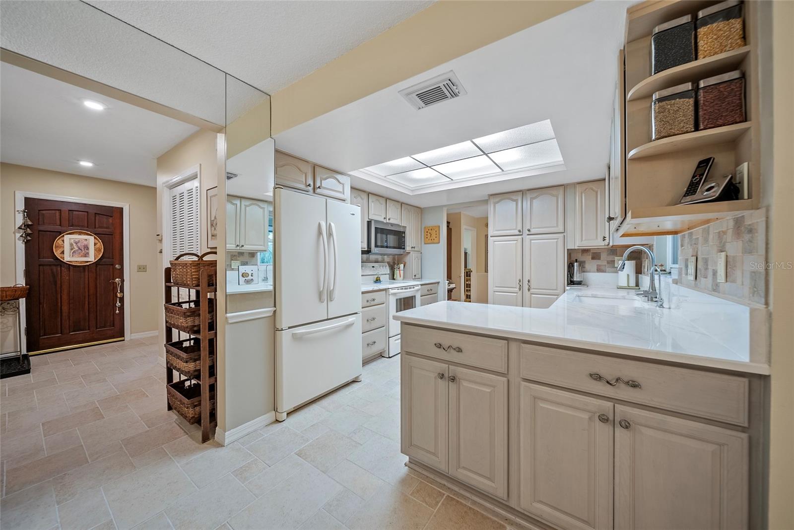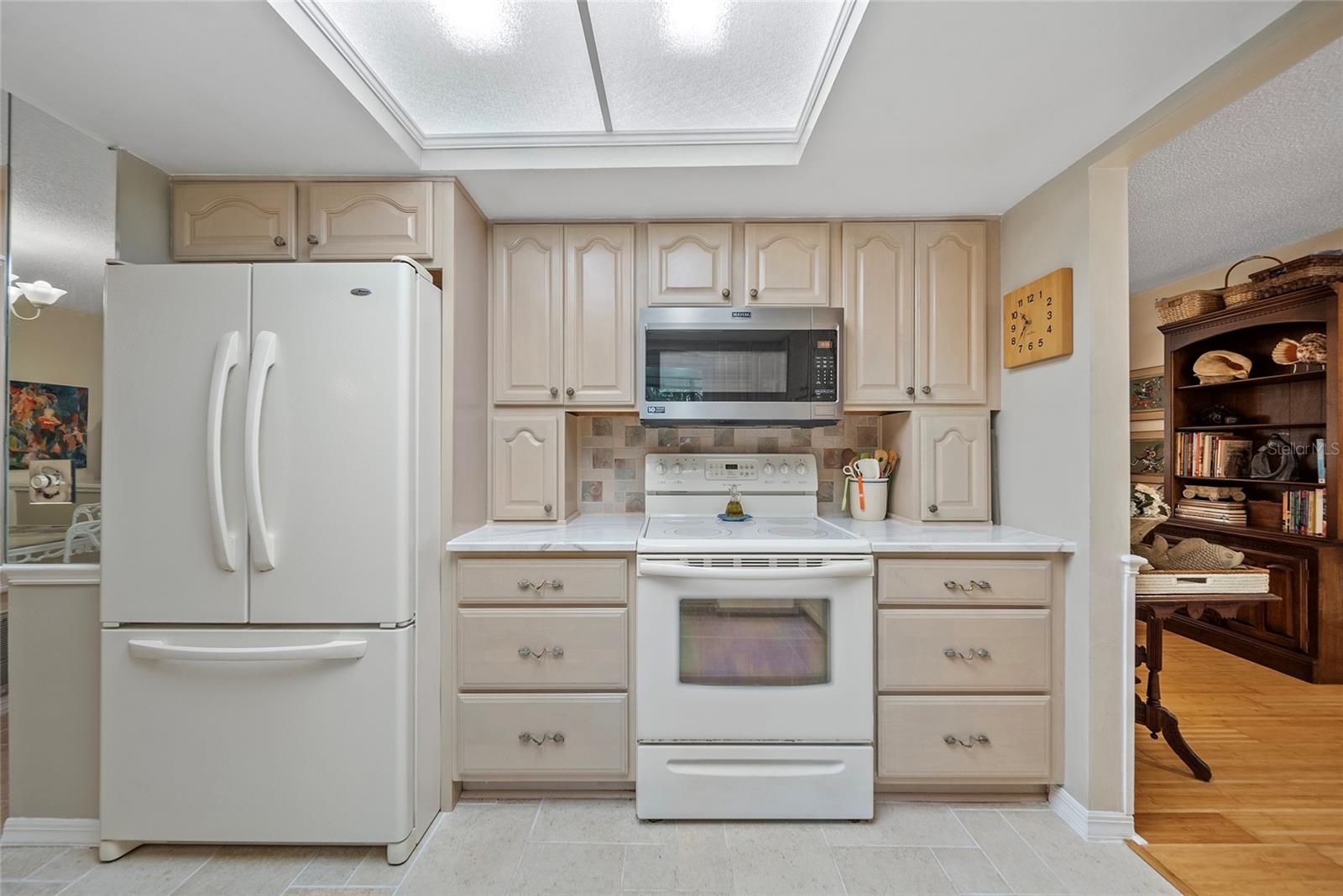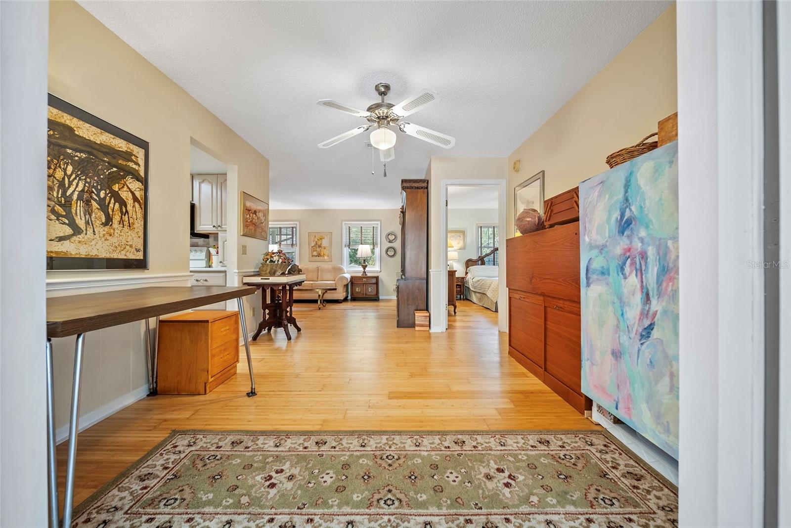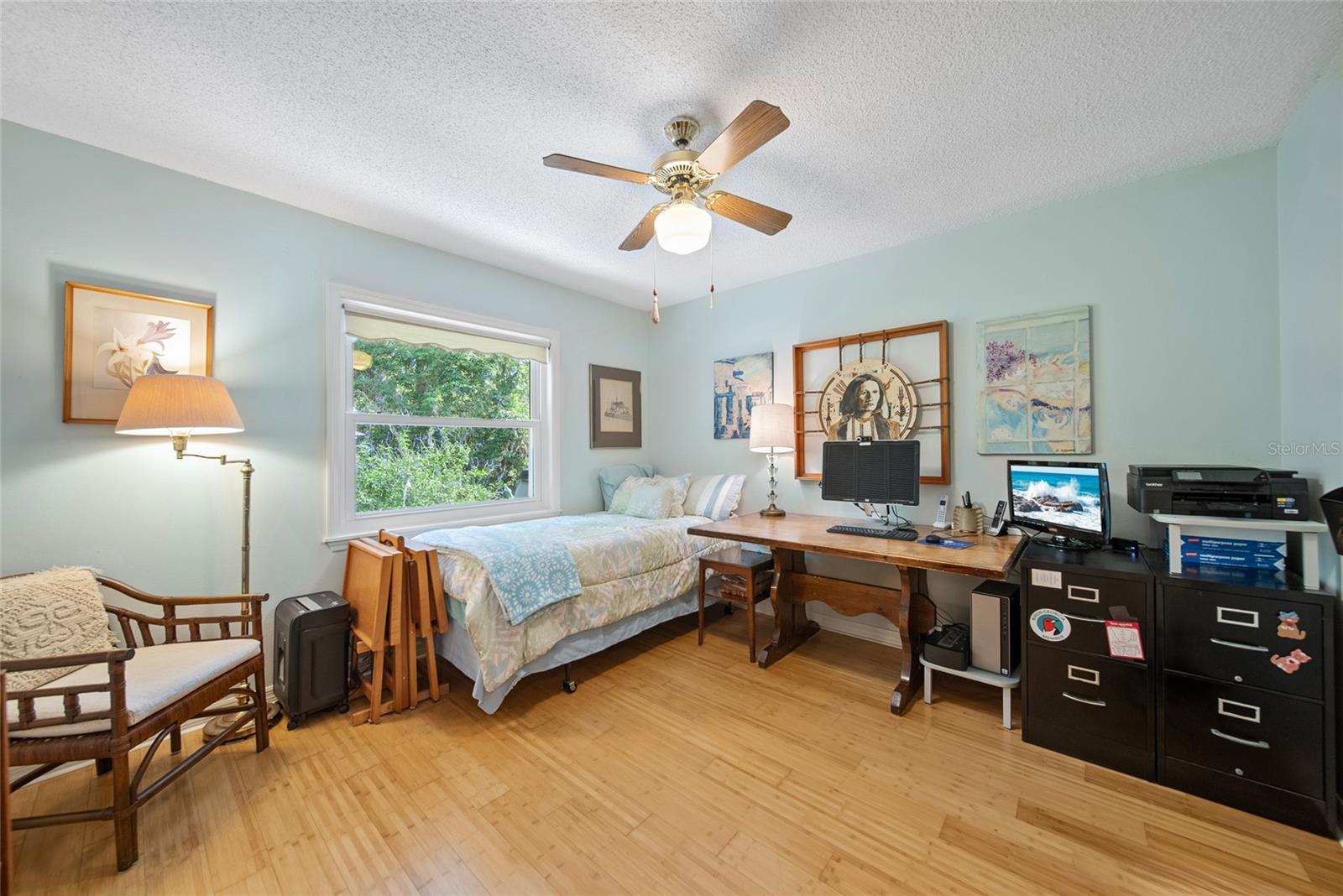 Welcome to this meticulously maintained 3-bedroom, 2-bath ranch located in the highly sought-after Heritage Square community. Offering 1,669 sq ft of move-in-ready living space. This home features a split floor plan with a spacious main bedroom en suite and beautifully designed living areas. The custom kitchen boasts KraftMaid solid maple cabinetry, Cambria quartz countertops (2024), and a Blanco Silgranit sink. Bamboo flooring throughout the living areas, paired with ivory porcelain tile in the kitchen and kitchen nook, creates a low-maintenance interior.Construction features include a 35-year warranted Millennium metal roof (2019), hurricane-grade skylights, energy-efficient thermal windows, and a well-insulated attic. Recent updates include a heat pump (2019) and commercial-grade water heater (2022), newer AC (2019), leaf filter gutters (2019) ensuring comfort and efficiency. The home also includes top-tier electrical and plumbing upgrades, including a fully functional wood fireplace with a remortared stone mantle.The exterior of the home is a gardener’s paradise, with fruit trees, and pollinator-friendly plants. A custom-built board-on-board privacy fence surrounds the lush backyard, which includes a rainwater collection system (2019) holding over 500 gallons. The expansive backyard patio is perfect for entertaining, with raised garden beds offering easy gardening.With a 2.5-car garage for extensive storage, direct kitchen access for grocery convenience, and a professionally painted exterior (2019), this home is situated in the desirable Forest Hills Estate neighborhood with a LOW HOA. Just minutes from premier shopping, top restaurants, and right by the Babe Zaharias Golf Course. Don't walk but run to schedule a private showing!