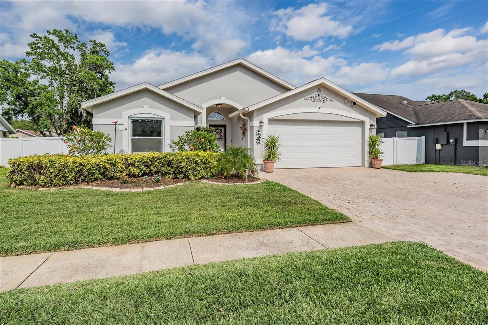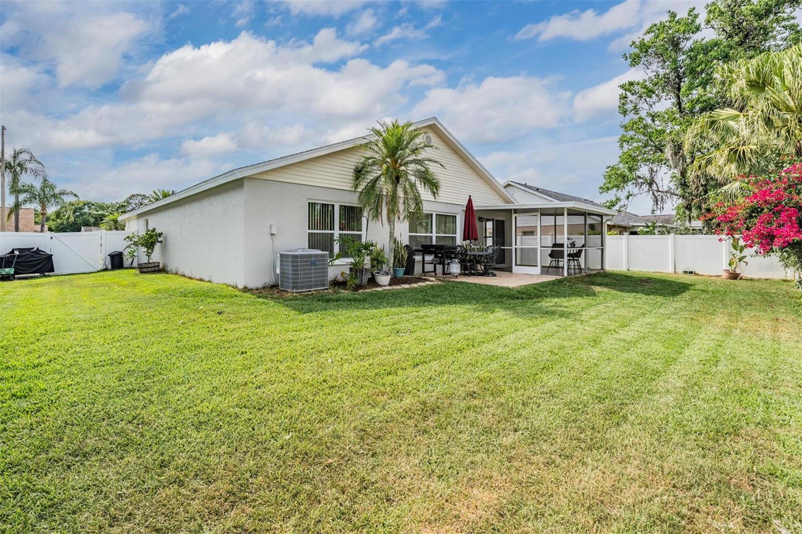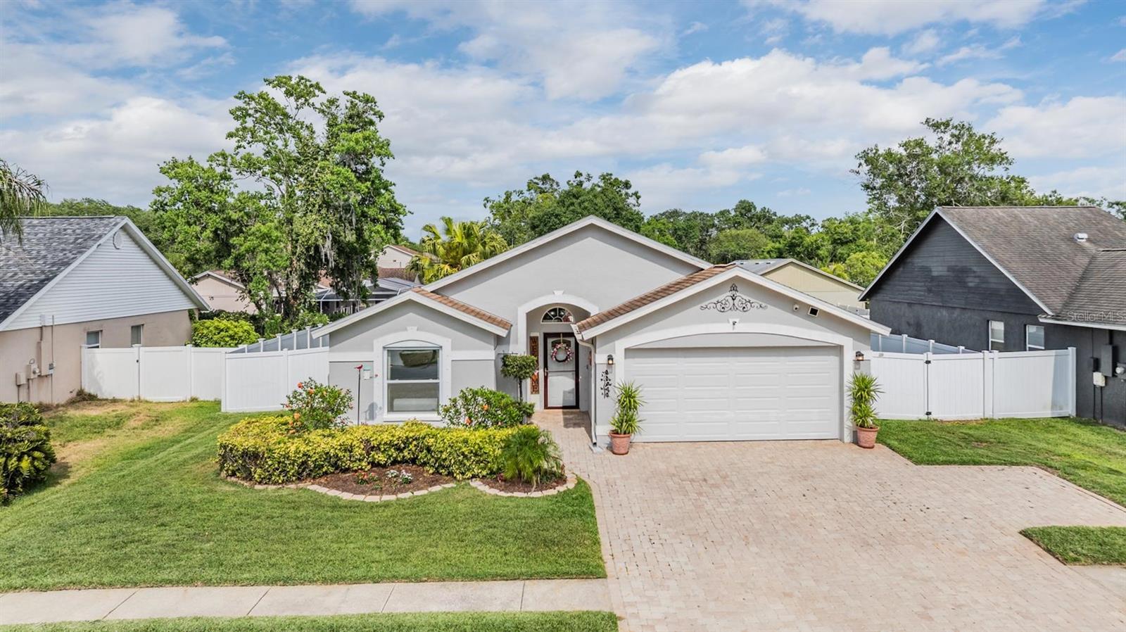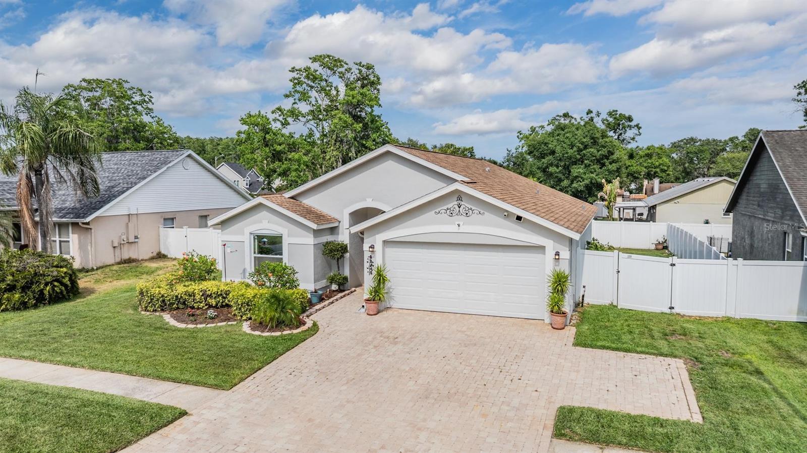 Welcome to an exceptional opportunity in the desirable Eaglebrook community! Nestled in the vibrant Citrus Park/Carrollwood area of Tampa. This prime location offers convenient access to a plethora of local restaurants, entertainment options, and shopping destinations. As you arrive, the curb appeal is immediately apparent with its low-maintenance landscaping, complemented by a stunning paved driveway and walkway. This charming 3-bedroom, 2-bathroom home features a spacious, open, and split floor plan, designed for both comfort and entertaining. The expansive family and dining room combo is perfect for hosting gatherings. The home also boasts a brand new kitchen, equipped with modern appliances to inspire your culinary adventures. Step through the sliding glass doors to a large, private, screened lanai overlooking a serene backyard, enclosed by a vinyl privacy fence—your own private oasis. The impressive owner's suite offers a walk-in closet, a full-size stand-up shower, a water closet, relaxing garden tub, a second walk-in closet, and a vaulted ceiling. This meticulously maintained home is move-in ready for its new owners, featuring the added benefit of no HOA or CDD fees. Enjoy easy access to the Veteran's Expressway, Dale Mabry Highway, I-275, Tampa Airport, and a short drive to the breathtaking Gulf beaches.