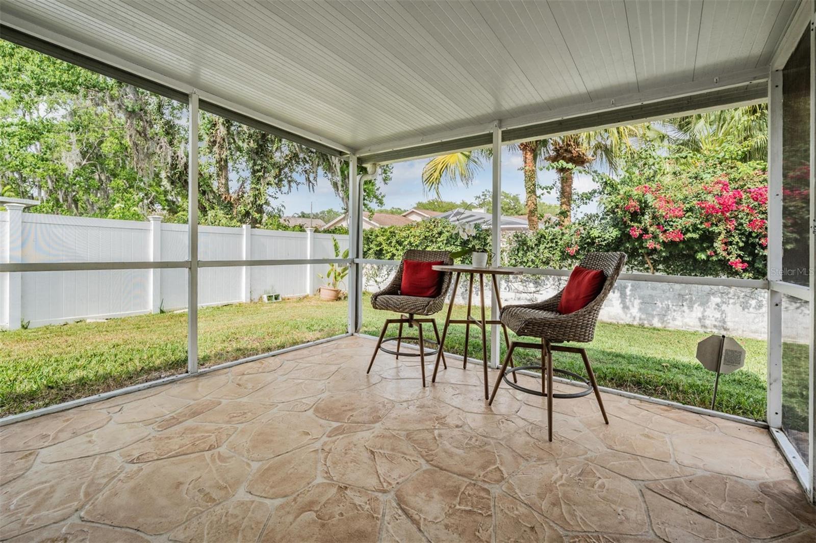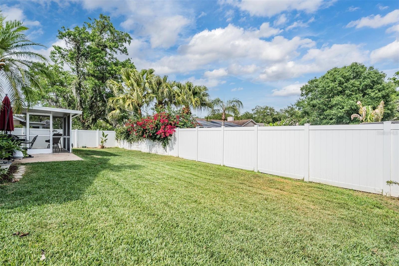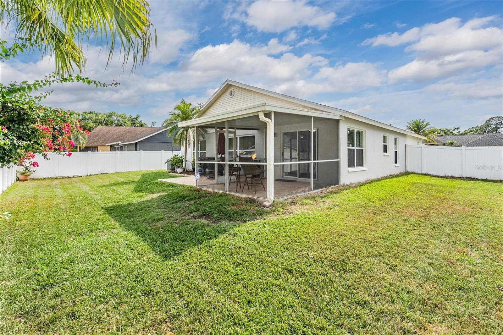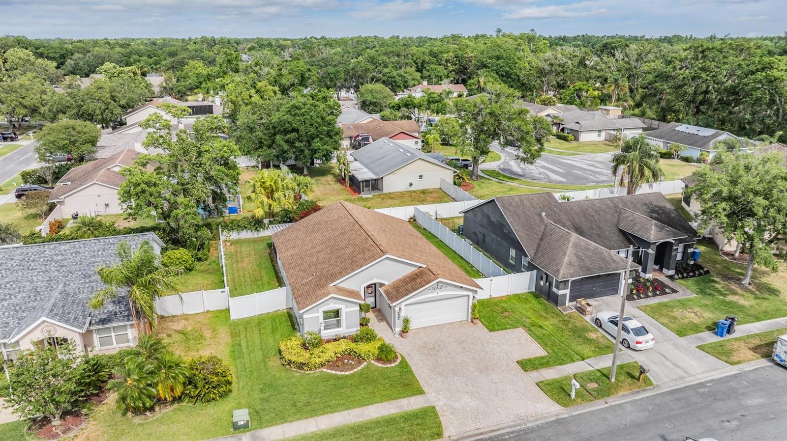 Welcome to an exceptional opportunity in the desirable Eaglebrook community! Nestled in the vibrant Citrus Park/Carrollwood area of Tampa. This prime location offers convenient access to a plethora of local restaurants, entertainment options, and shopping destinations. As you arrive, the curb appeal is immediately apparent with its low-maintenance landscaping, complemented by a stunning paved driveway and walkway. This charming 3-bedroom, 2-bathroom home features a spacious, open, and split floor plan, designed for both comfort and entertaining. The expansive family and dining room combo is perfect for hosting gatherings. The home also boasts a brand new kitchen, equipped with modern appliances to inspire your culinary adventures. Step through the sliding glass doors to a large, private, screened lanai overlooking a serene backyard, enclosed by a vinyl privacy fence—your own private oasis. The impressive owner's suite offers a walk-in closet, a full-size stand-up shower, a water closet, relaxing garden tub, a second walk-in closet, and a vaulted ceiling. This meticulously maintained home is move-in ready for its new owners, featuring the added benefit of no HOA or CDD fees. Enjoy easy access to the Veteran's Expressway, Dale Mabry Highway, I-275, Tampa Airport, and a short drive to the breathtaking Gulf beaches.