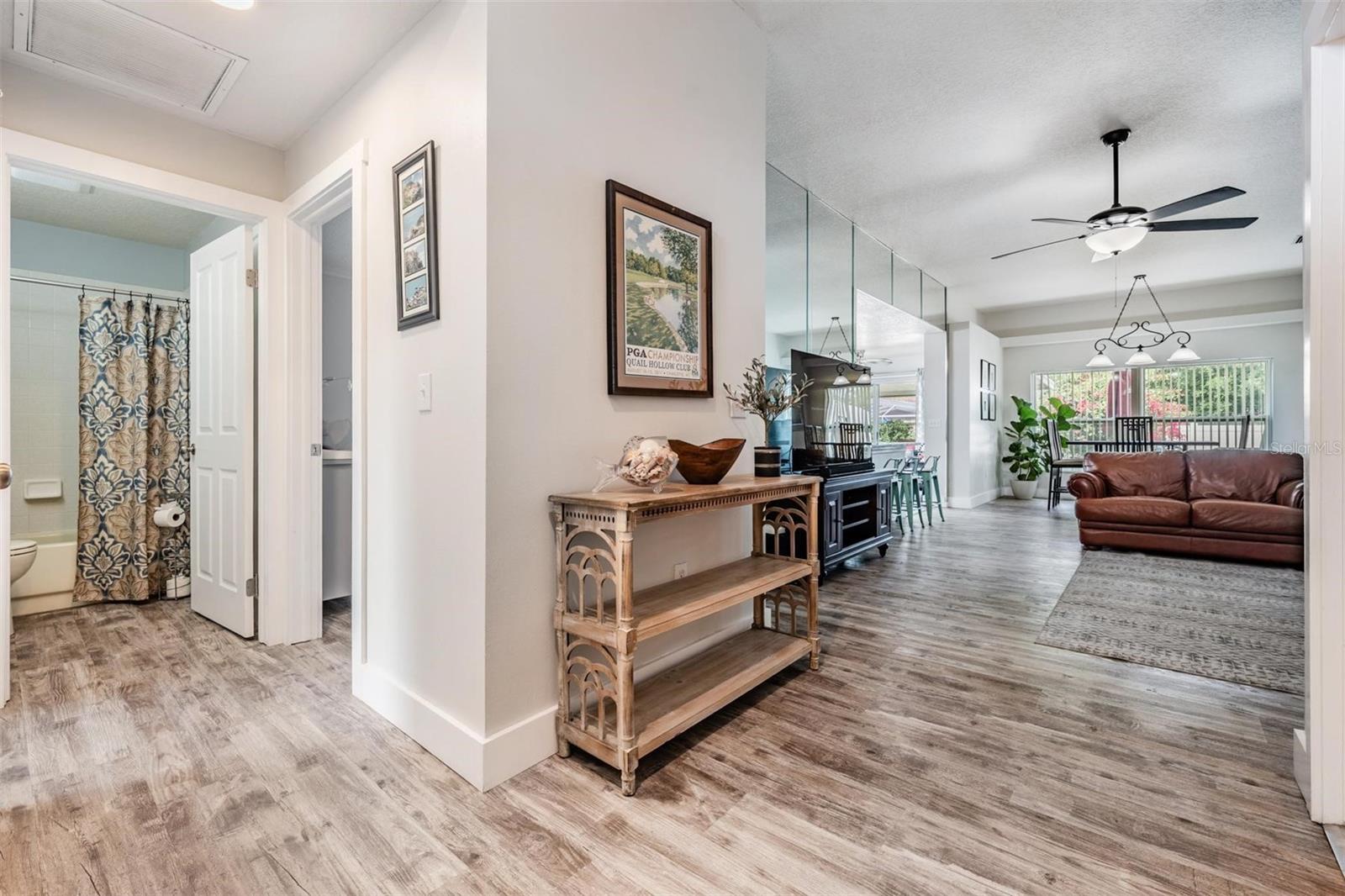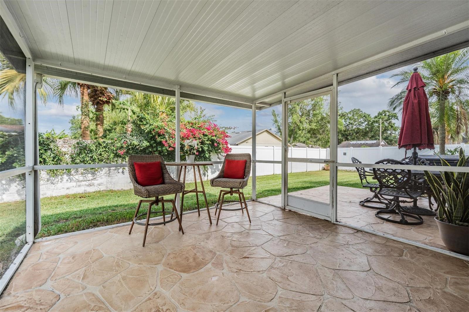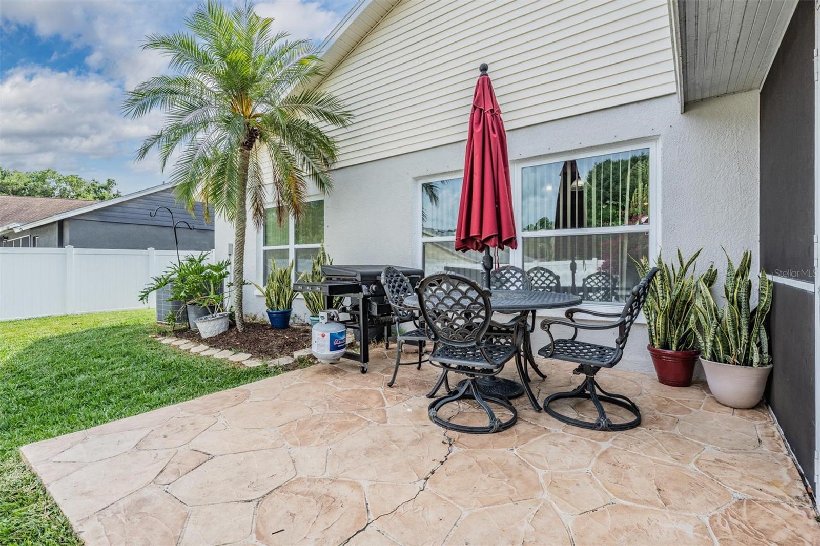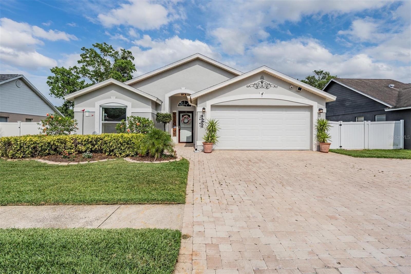 Welcome to an exceptional opportunity in the desirable Eaglebrook community! Nestled in the vibrant Citrus Park/Carrollwood area of Tampa. This prime location offers convenient access to a plethora of local restaurants, entertainment options, and shopping destinations. As you arrive, the curb appeal is immediately apparent with its low-maintenance landscaping, complemented by a stunning paved driveway and walkway. This charming 3-bedroom, 2-bathroom home features a spacious, open, and split floor plan, designed for both comfort and entertaining. The expansive family and dining room combo is perfect for hosting gatherings. The home also boasts a brand new kitchen, equipped with modern appliances to inspire your culinary adventures. Step through the sliding glass doors to a large, private, screened lanai overlooking a serene backyard, enclosed by a vinyl privacy fence—your own private oasis. The impressive owner's suite offers a walk-in closet, a full-size stand-up shower, a water closet, relaxing garden tub, a second walk-in closet, and a vaulted ceiling. This meticulously maintained home is move-in ready for its new owners, featuring the added benefit of no HOA or CDD fees. Enjoy easy access to the Veteran's Expressway, Dale Mabry Highway, I-275, Tampa Airport, and a short drive to the breathtaking Gulf beaches.