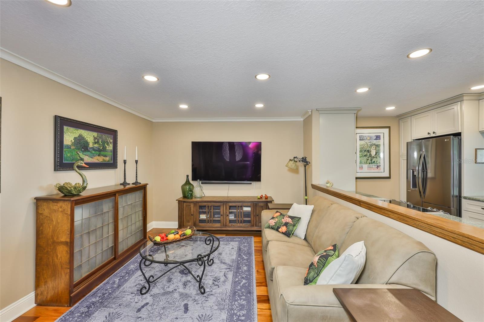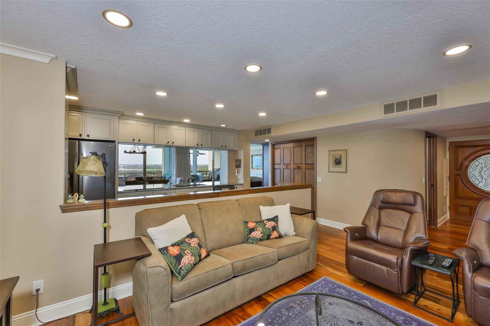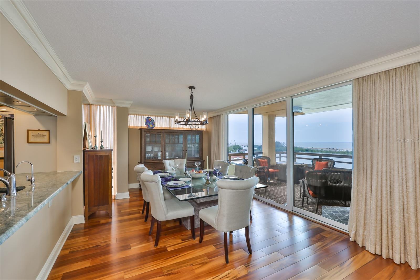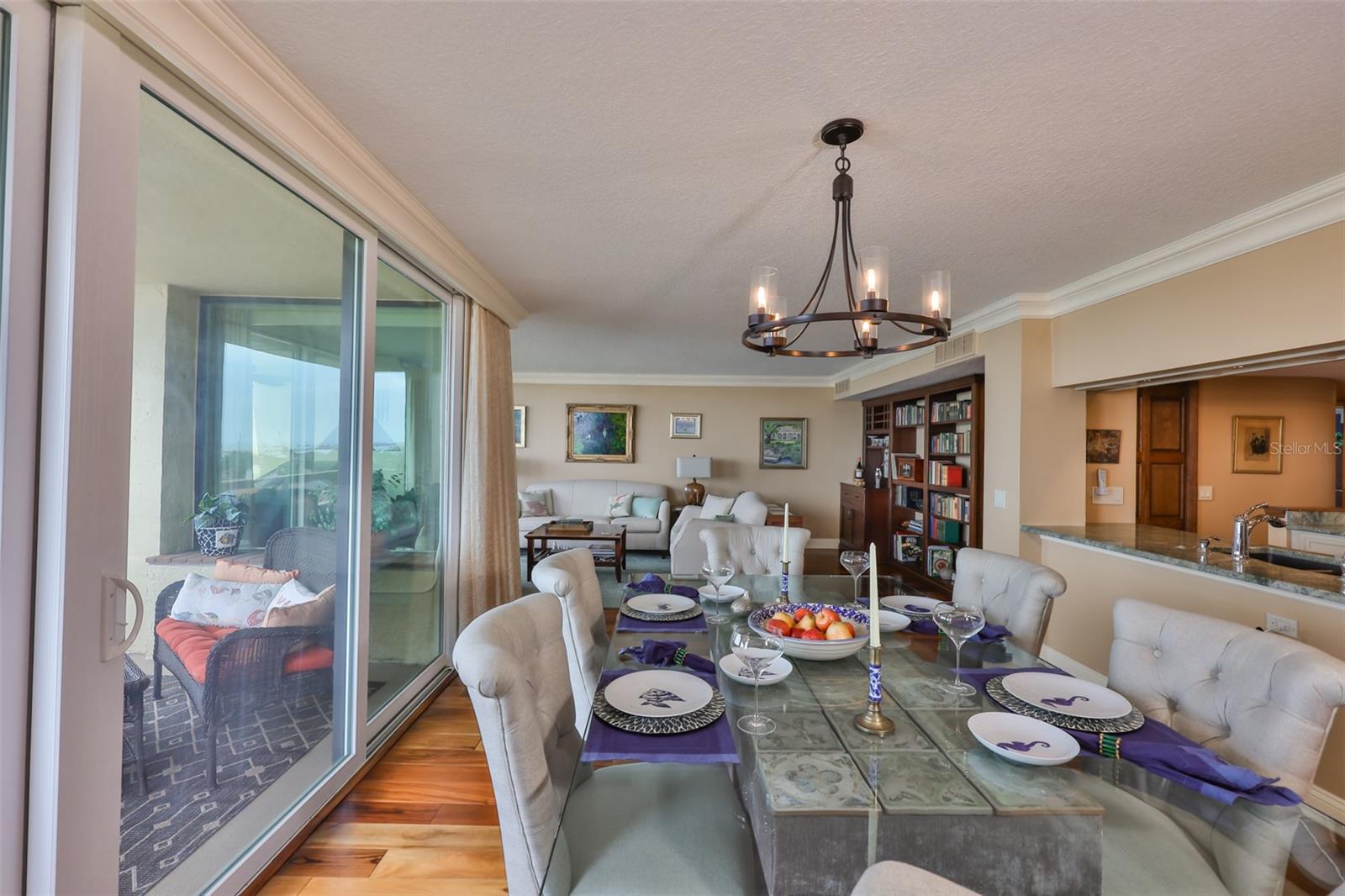 Experience breathtaking, panoramic water views of Tampa Bay from this rare 7th-floor end-unit gem! Enjoy stunning vistas of both the Tampa and St. Petersburg skylines from three private, covered balconies in this spacious 2-bedroom, 2.5-bath condo offering 1,964 square feet of elegant living space. This meticulously maintained residence features an open-concept layout with gleaming hardwood floors, updated wood cabinetry, granite countertops, and stainless-steel appliances. Floor-to-ceiling hurricane-rated sliding doors flood the living and dining areas with natural light and lead to a large west-facing balcony for the stunning water views - perfect for entertaining and taking in spectacular sunsets over the bay. The primary suite is a true retreat with new carpeting, a private balcony, and an updated ensuite bathroom. A second en-suite bedroom also offers its own private balcony and renovated bath, providing comfort and privacy for guests. The furniture is available as many pieces were specifically designed for this home. Resort-style amenities elevate the lifestyle, including a bayfront pool, private docks, game room, storage locker, and reserved parking. Perfectly situated just minutes from both downtown Tampa and St. Petersburg, Tampa International Airport, International Plaza, Raymond James Stadium, Hyde Park, SOHO, I275, and Route 4 - this location offers the ultimate in convenience and coastal living. Don't miss this unique opportunity to own a waterfront haven that delivers both luxury and lifestyle.
