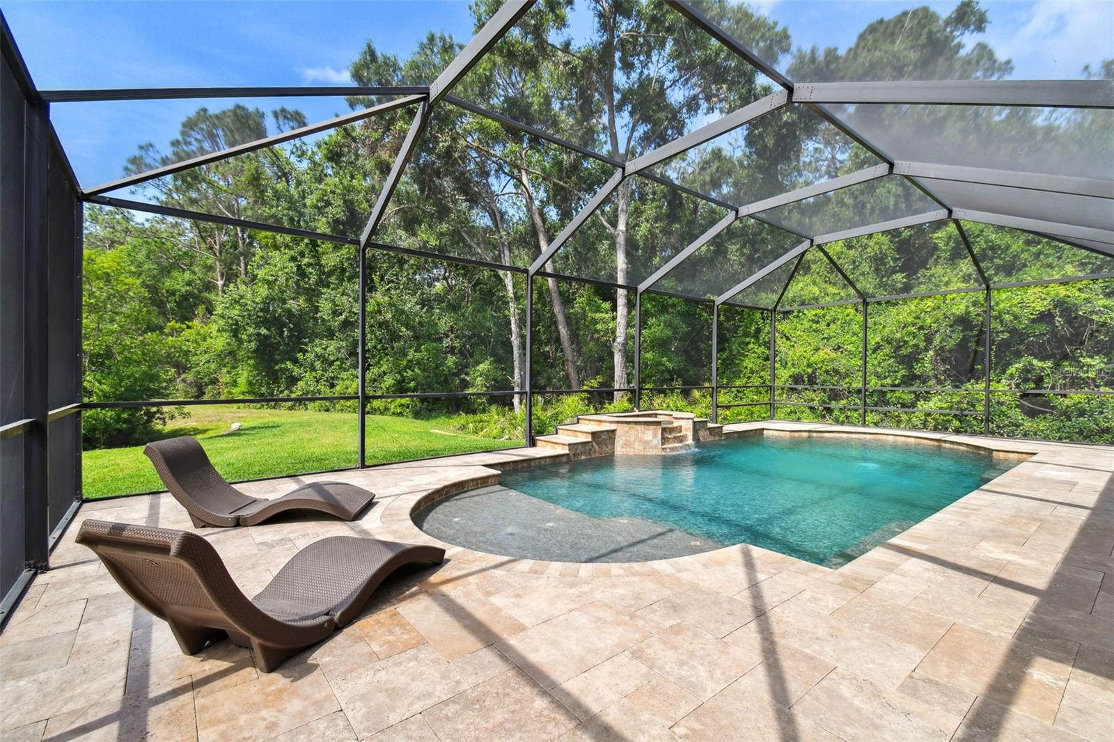 Welcome to your dream home in one of Highland Park’s most exclusive gated communities. This 5-bed, 5.5-bath estate is set on a lush 1-acre lot surrounded by conservation and a private pond—offering rare tranquility just minutes from top-rated schools, shops, and dining. Inside, enjoy almost 5,300 sq ft of beautifully designed living space with a first-floor primary suite, office, spacious family room, gourmet kitchen with large island, and elegant finishes throughout. The first-floor primary suite includes a spa-like bath and custom walk-in closet. The gourmet kitchen boasts a large center island, wood cabinetry with crown molding, stainless steel appliances, walk-in pantry, and adjacent coffee station. Enjoy open living spaces with beautiful views of the saltwater pool, covered lanai, and tranquil backyard with firepit overlooking conservation and a pond, perfect for relaxing under the stars. Upstairs features a huge bonus/game room, wet bar, media room, and 3 additional bedrooms, two with en-suite baths and a separate third bathroom. Upgrades and Features: • NEW hurricane-impact windows • Generac 22kW whole-house generator • EV charger • Custom closet systems • Water softener + whole-house filtration • Security cameras w/DVR • Low energy bills (avg. $200/month) - Energy Star rated home • Brick-paved circular drive & 3-car garage Enjoy community perks like a lakeside clubhouse, fitness center, pool, parks, and dock for kayaking/fishing. This is more than a home - it's a lifestyle. Combining luxury, privacy, and prime location, this one-of-a-kind property truly checks every box. Don't miss the opportunity to make it yours - schedule your private showing today.